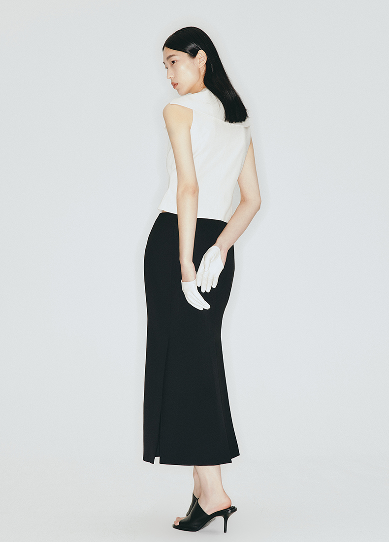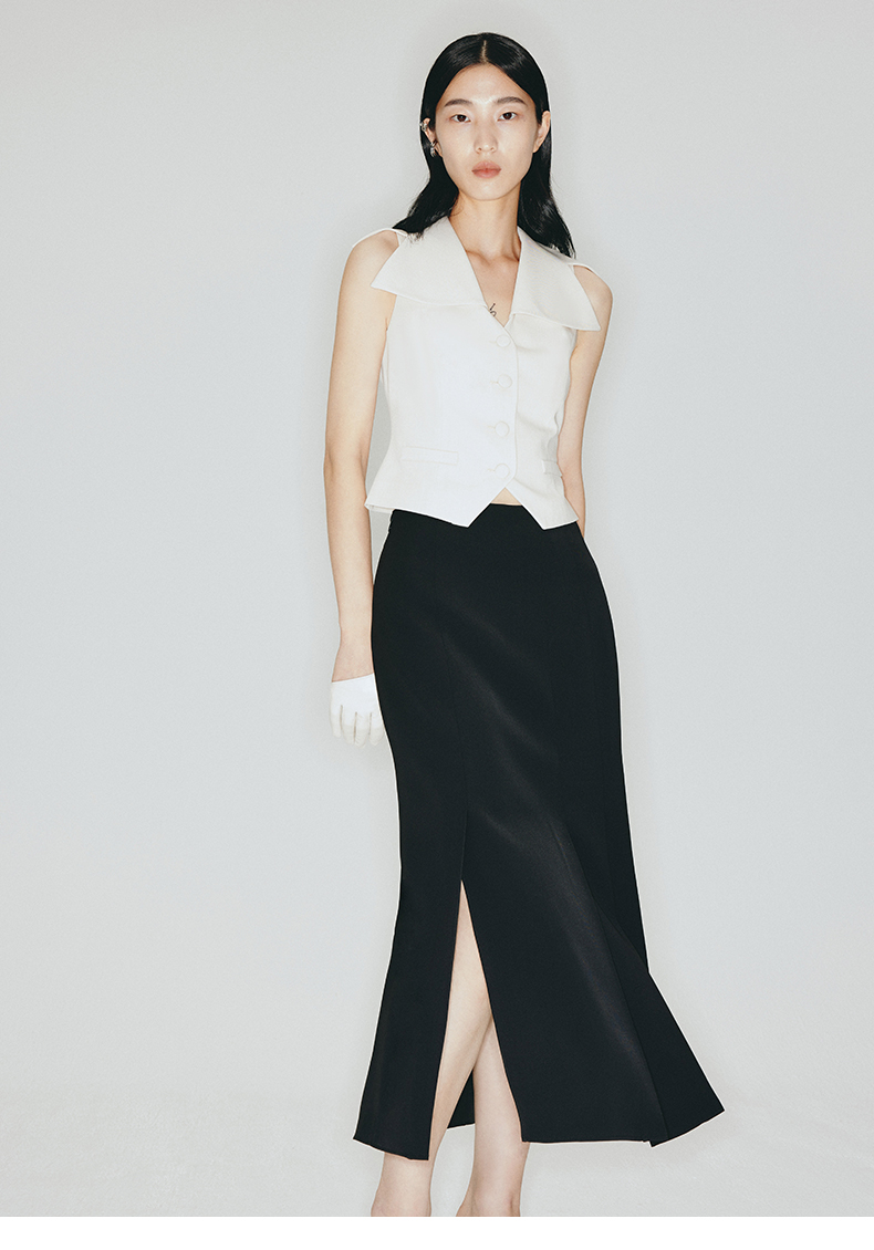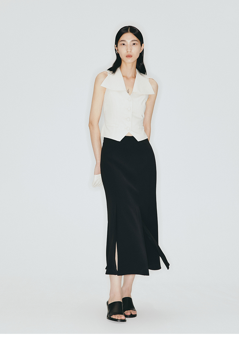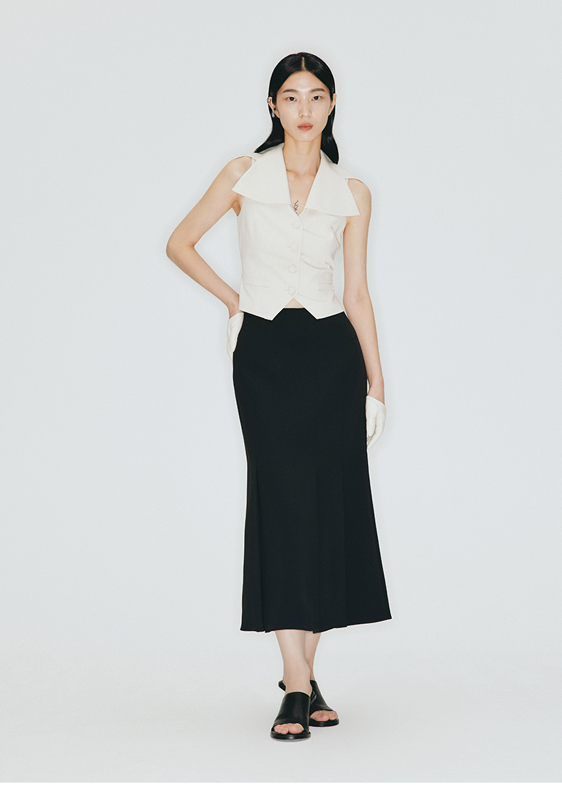 【爱乐之城】异形大翻领收腰马甲上衣/23005B