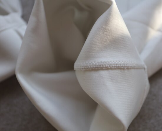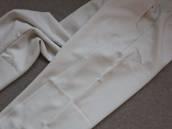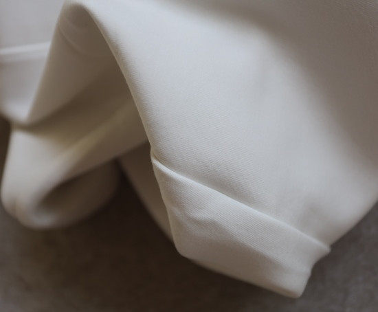 强度接近涤纶 触感接近丝缎 作为小阔筒裤型 纱线强度和垂感 是很重要的