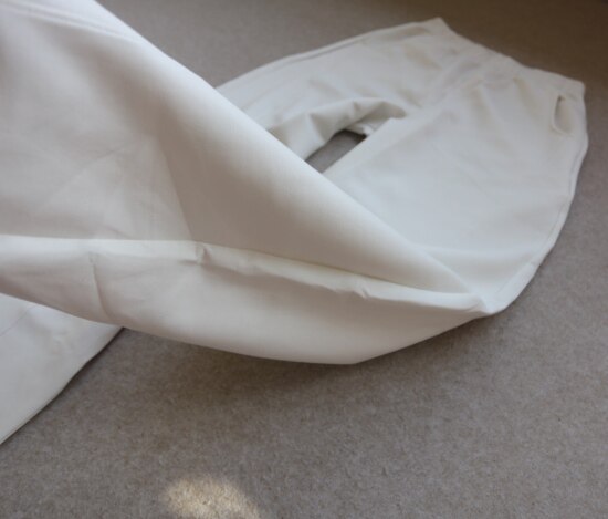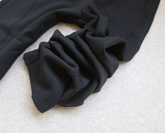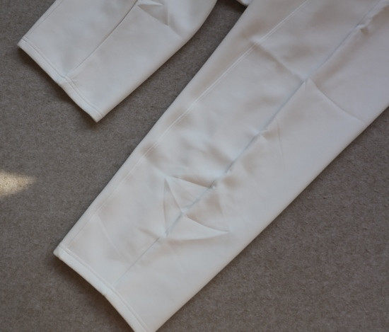 前裤筒的这条斜裁 就是我常说的骨线 后幅比前幅 宽一点点 给到屁屁更多余量