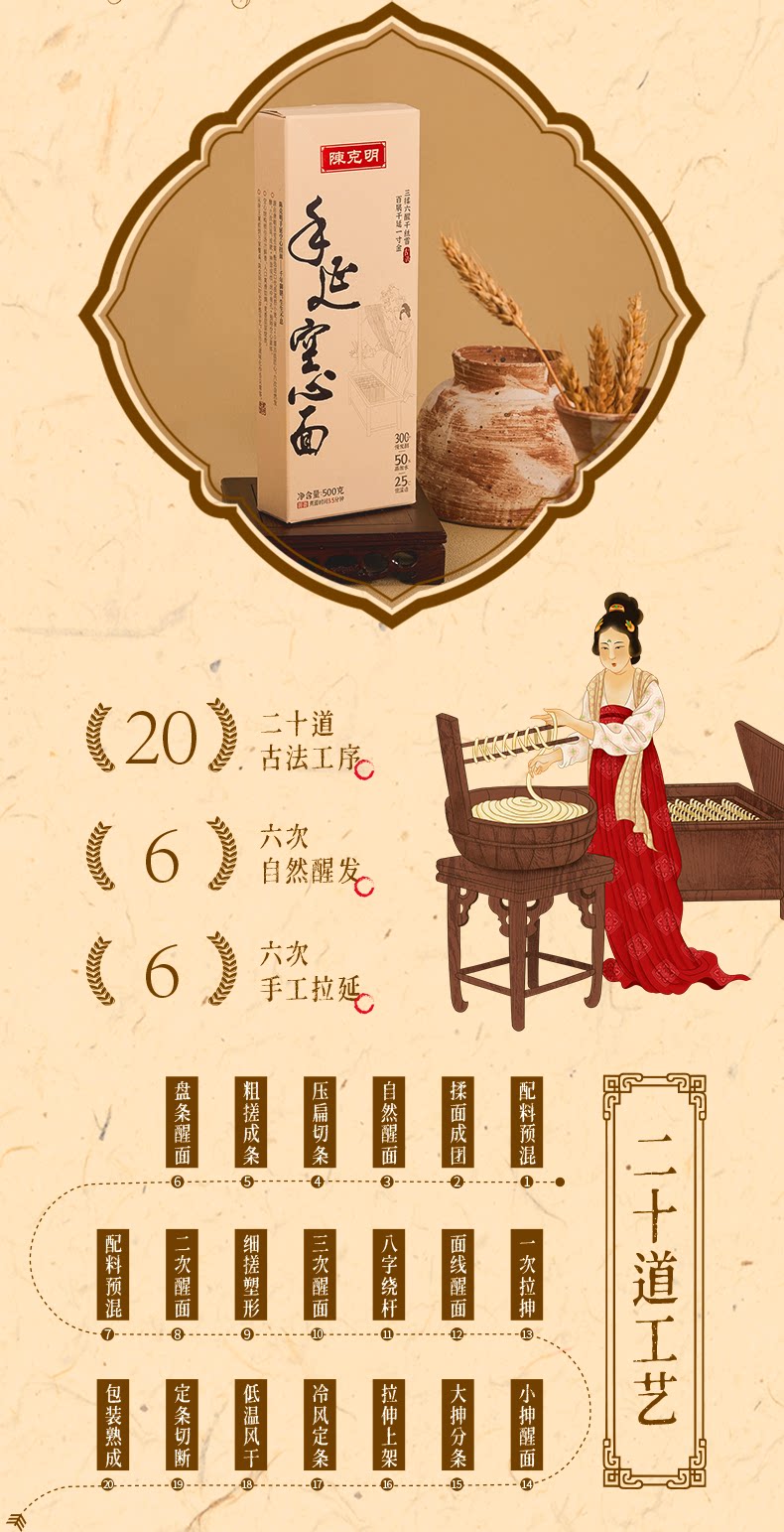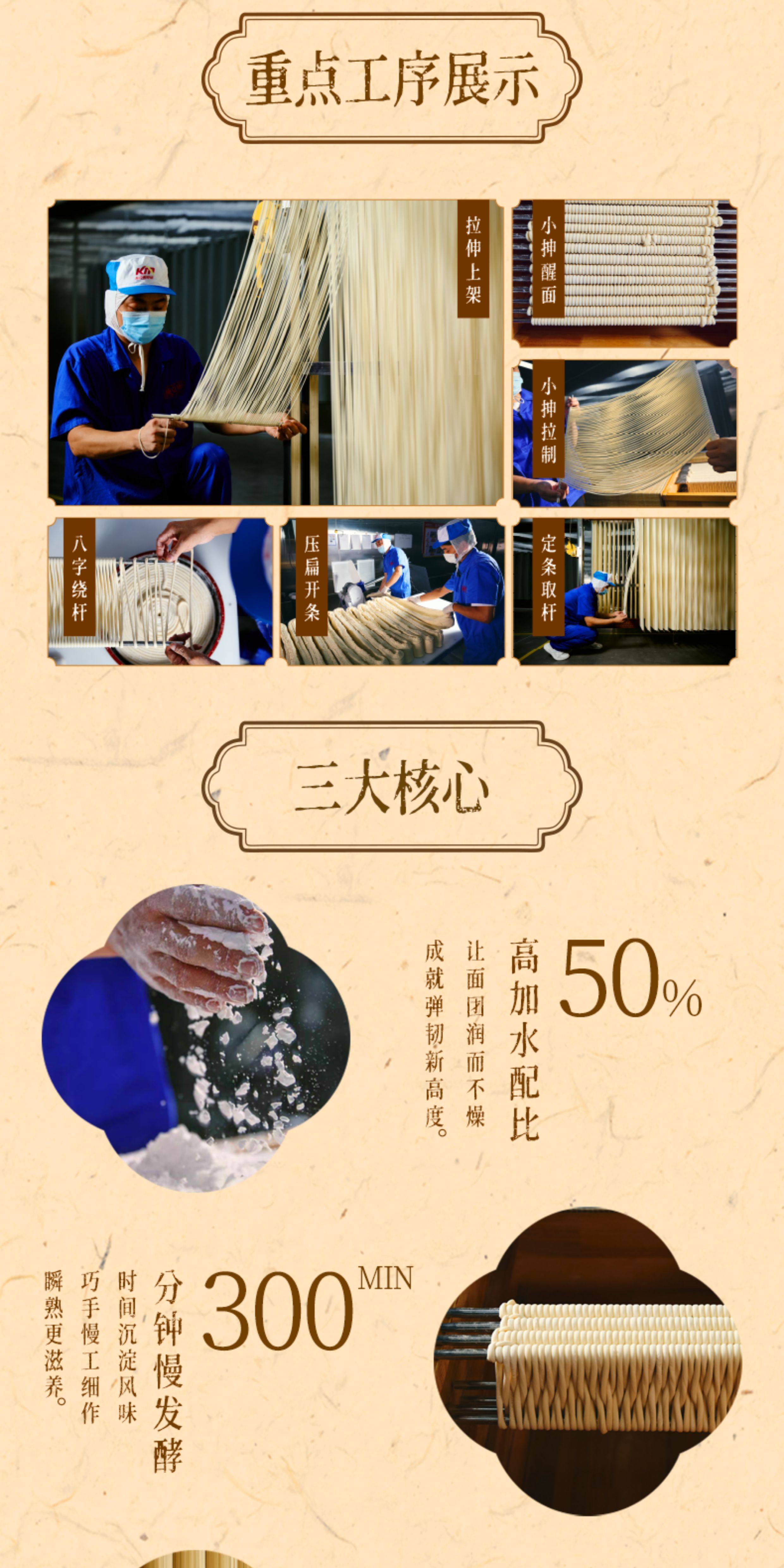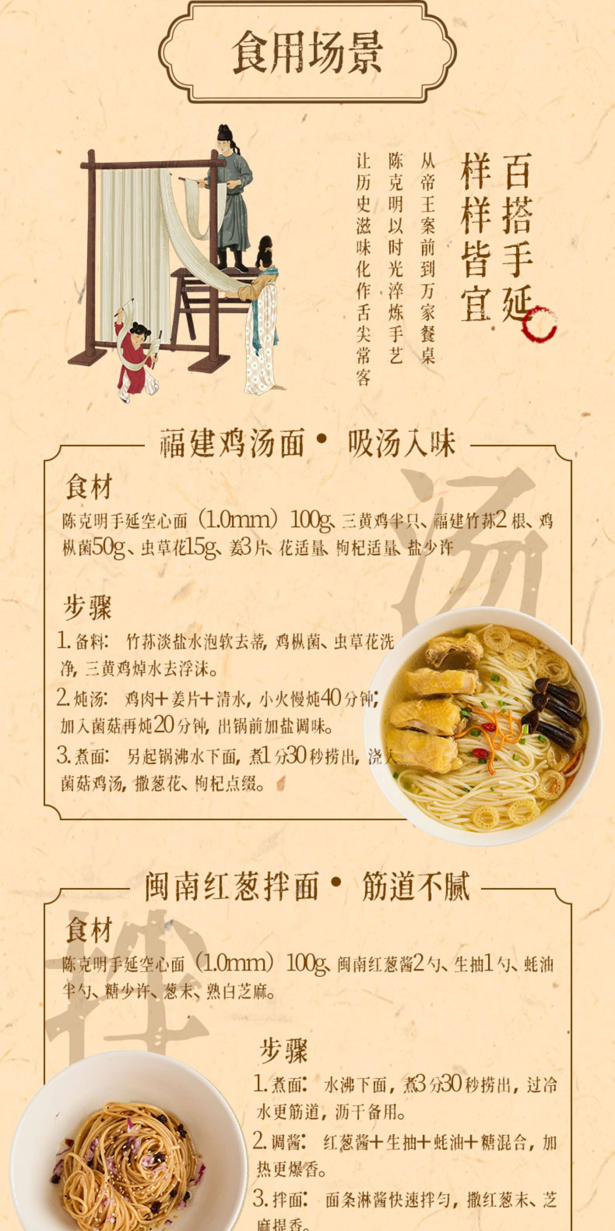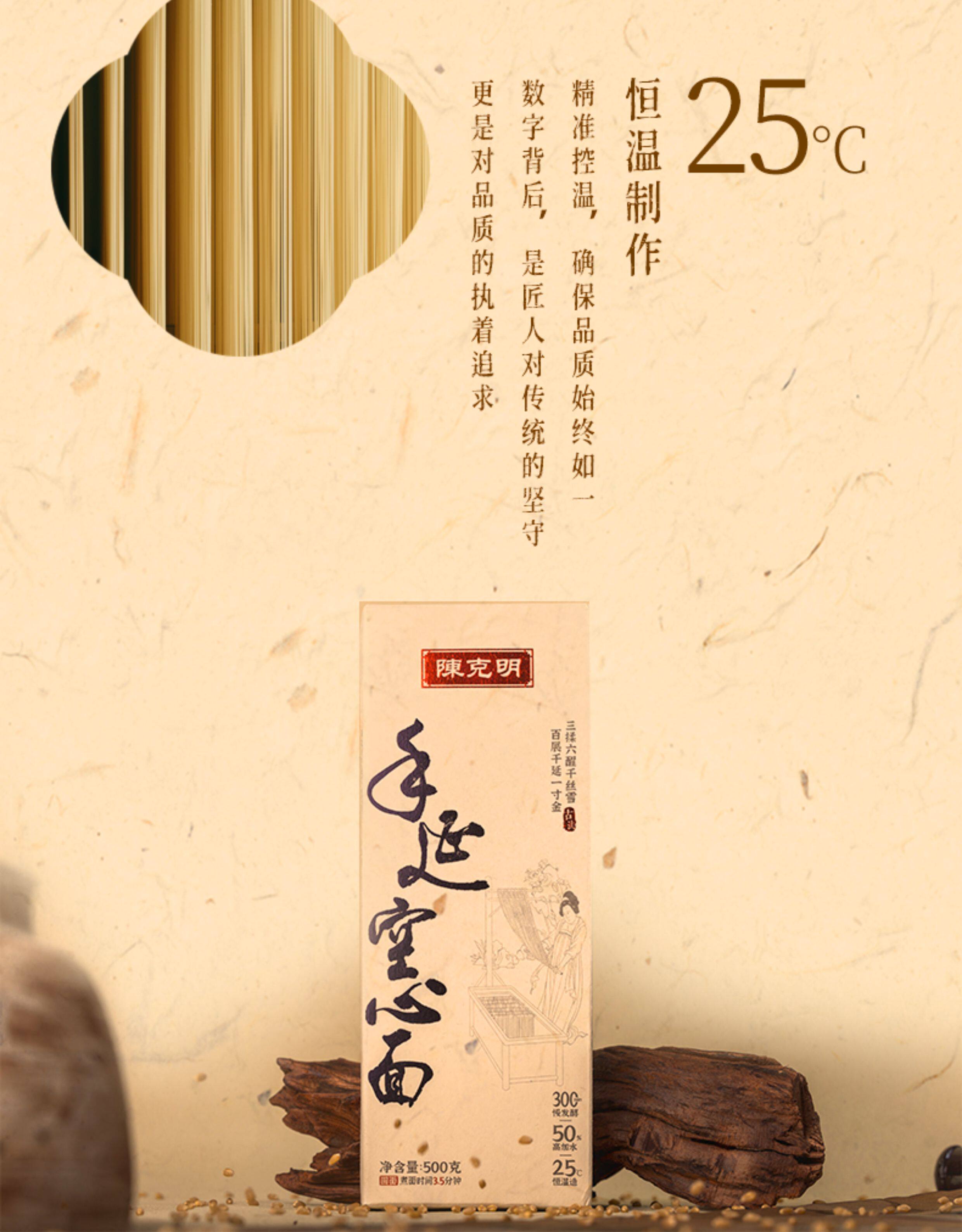 唐朝古法非遗手工面条 20道工序300分钟慢发酵 口感筋道早餐熟食 陈克明挂面500g/盒