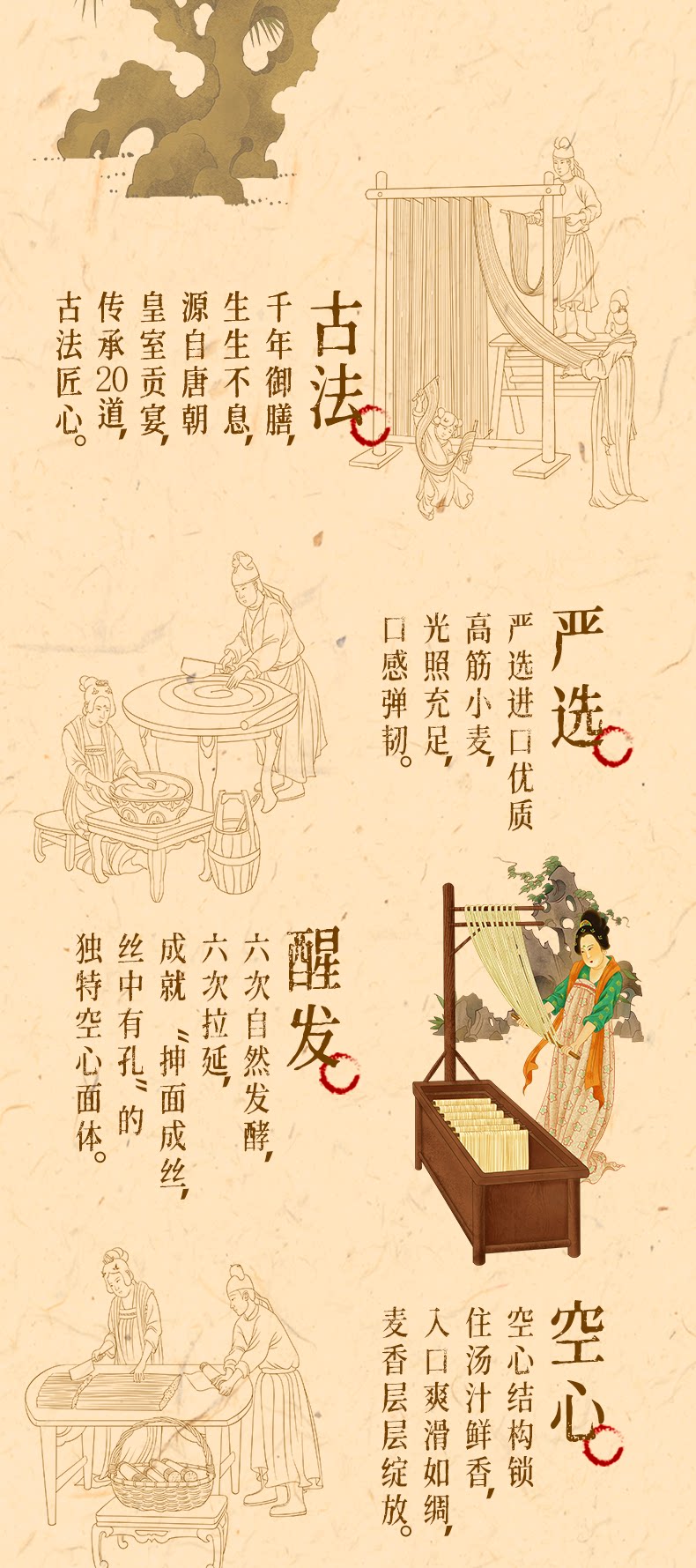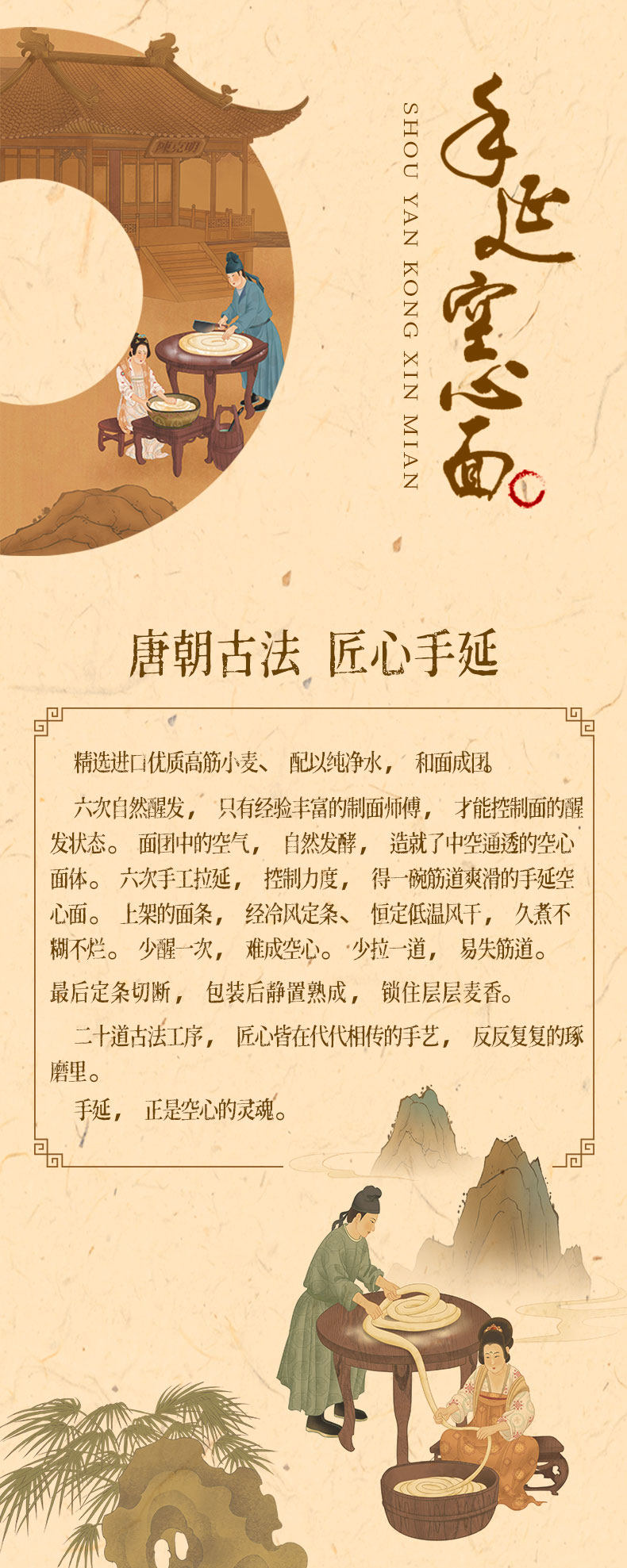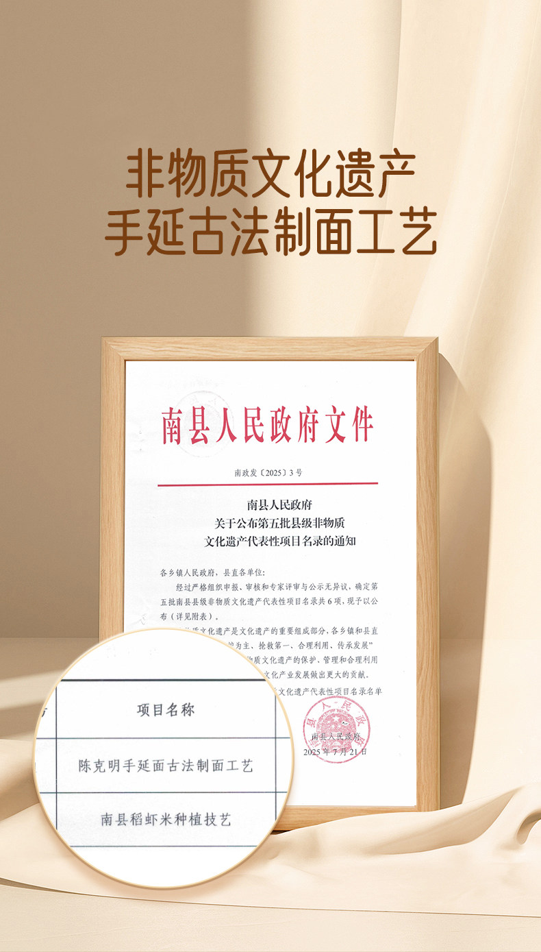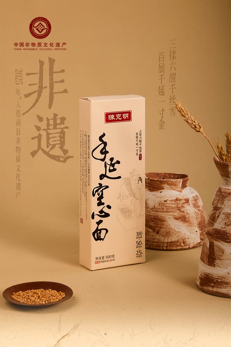 唐朝古法非遗手工面条 20道工序300分钟慢发酵 口感筋道早餐熟食 陈克明挂面500g/盒