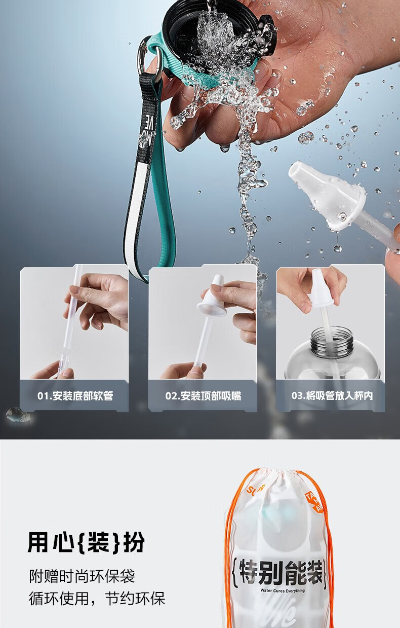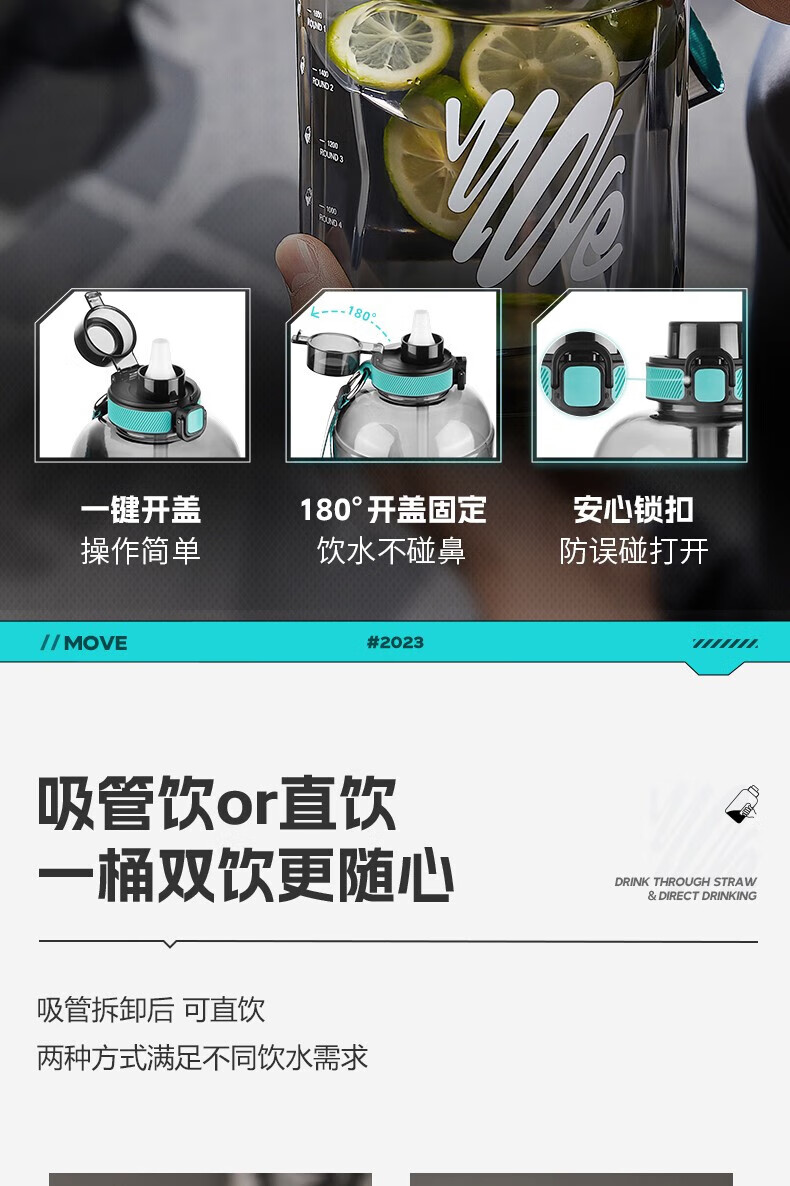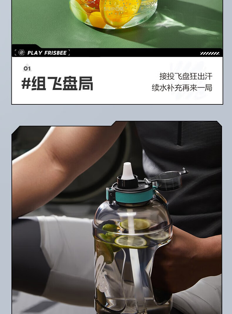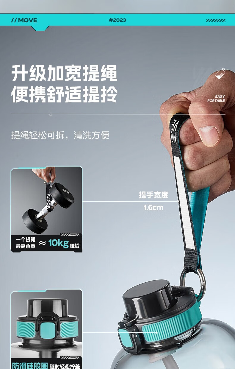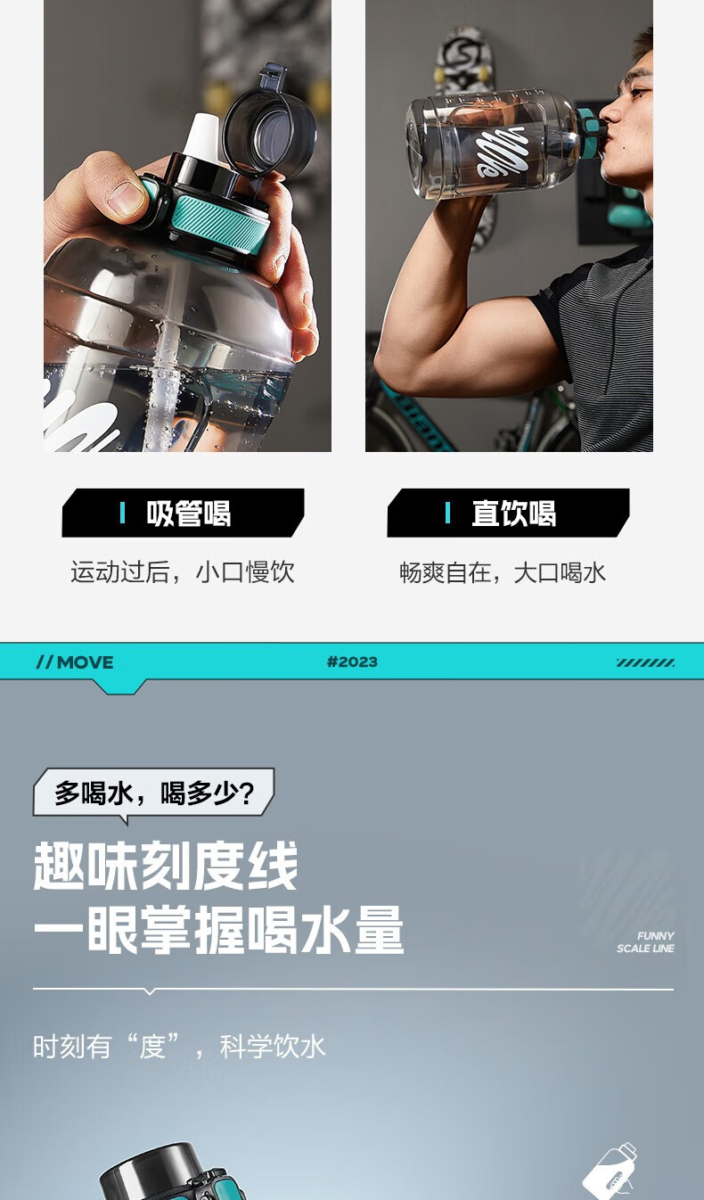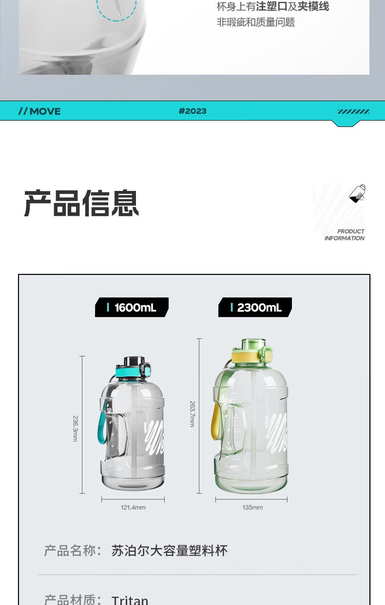 苏泊尔(SUPOR)水杯1.6L大容量吨桶吨健身运动男女吸管大肚顿顿桶杯子夏季水壶清透绿 KCP16LB20