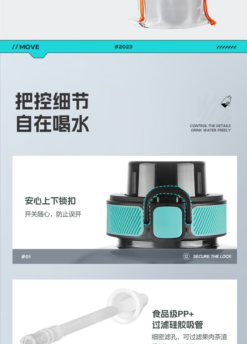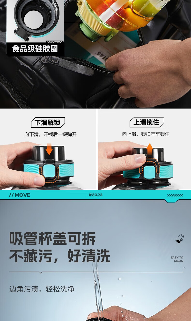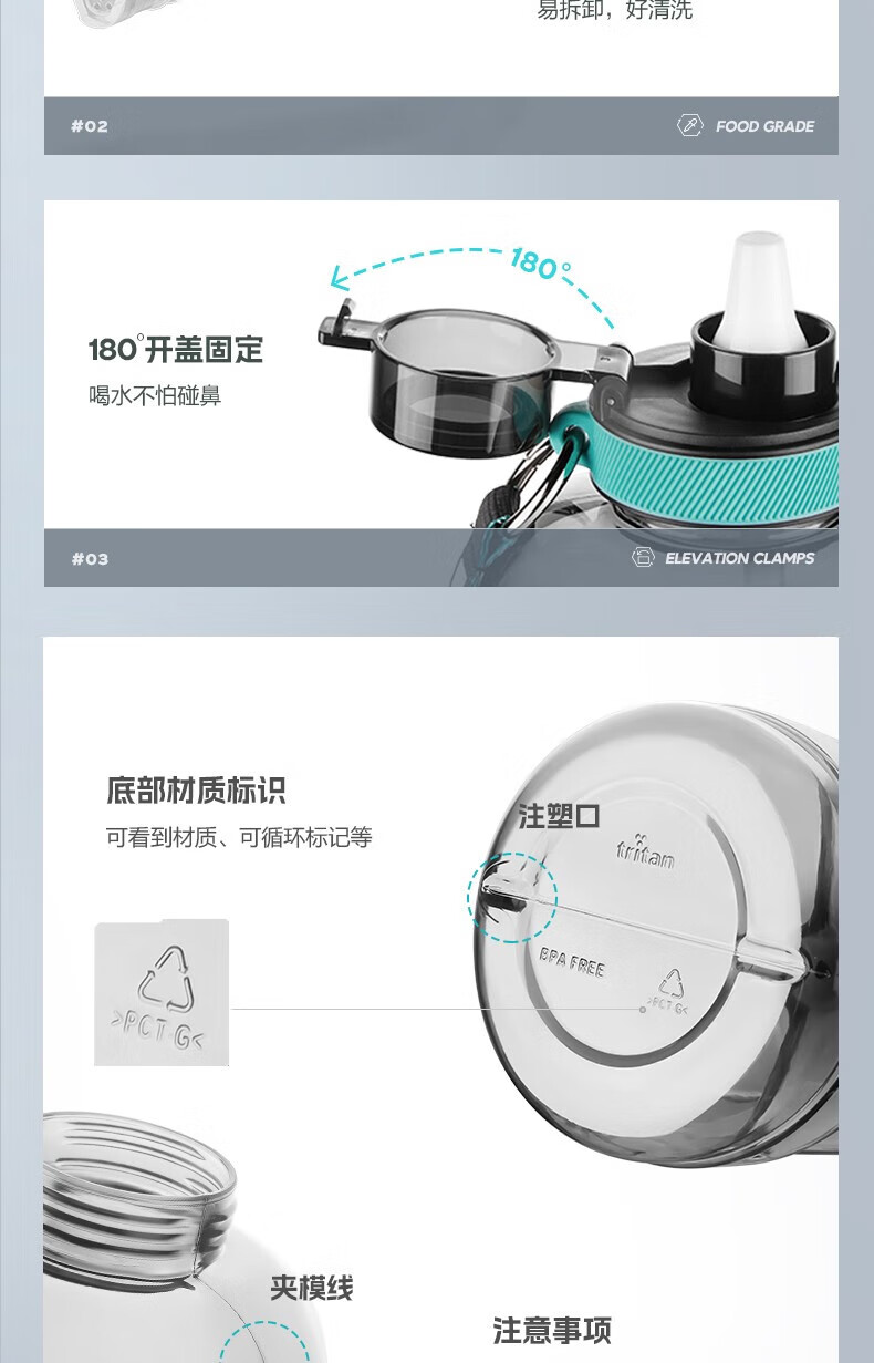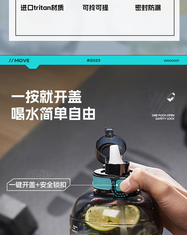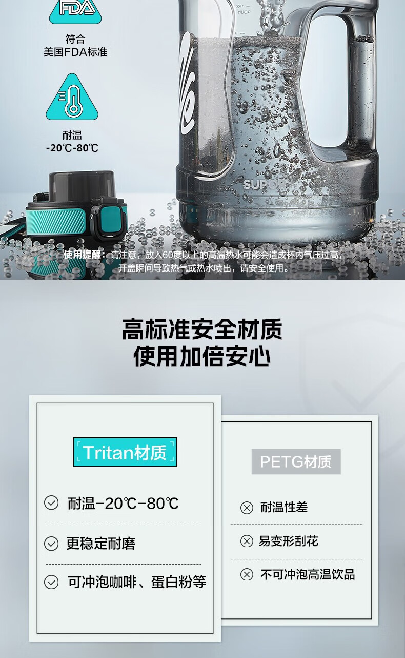 苏泊尔(SUPOR)水杯1.6L大容量吨桶吨健身运动男女吸管大肚顿顿桶杯子夏季水壶清透绿 KCP16LB20