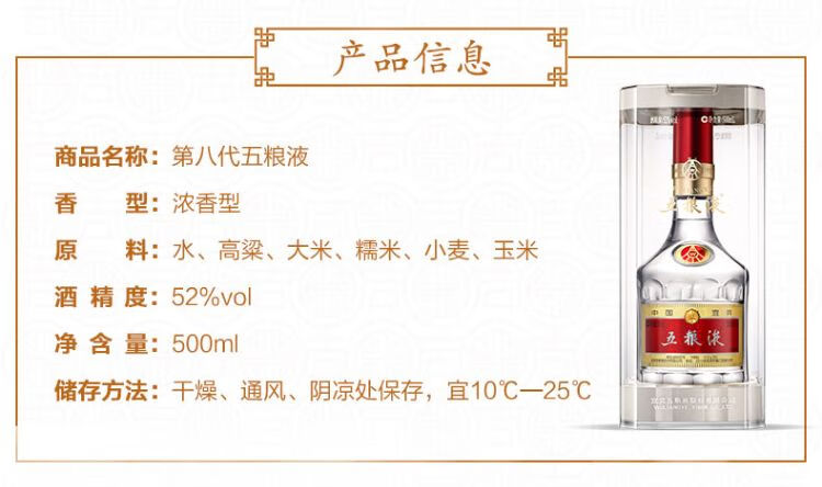 (万)五粮液第八代普五52度500ml/瓶 浓香白酒
