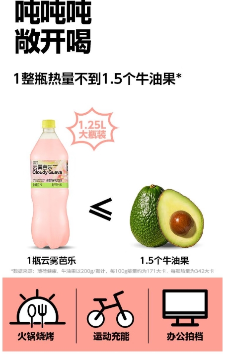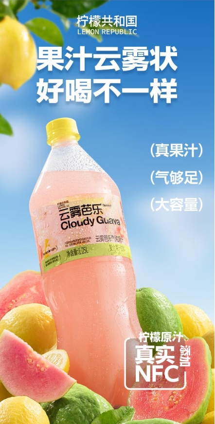 柠檬共和国云雾芭乐气泡果汁1.25L