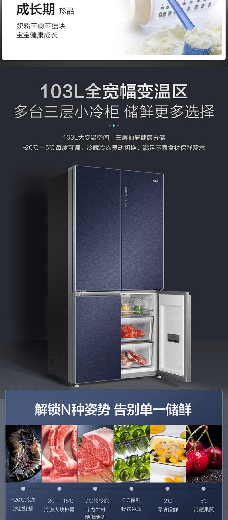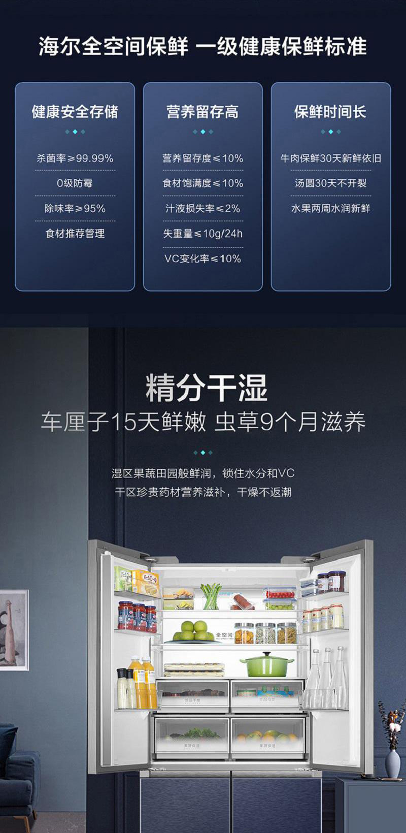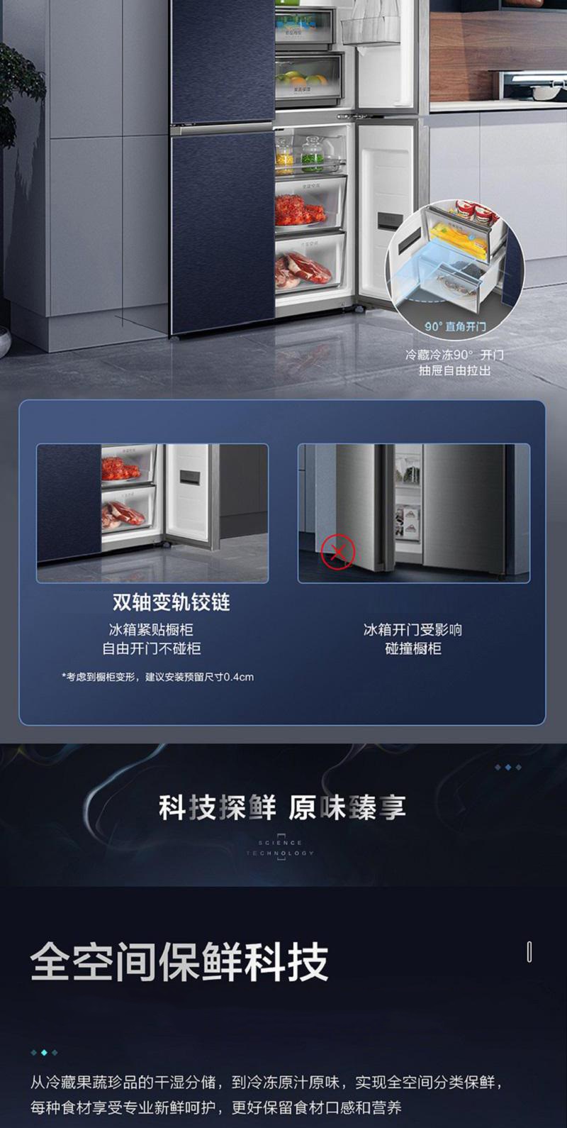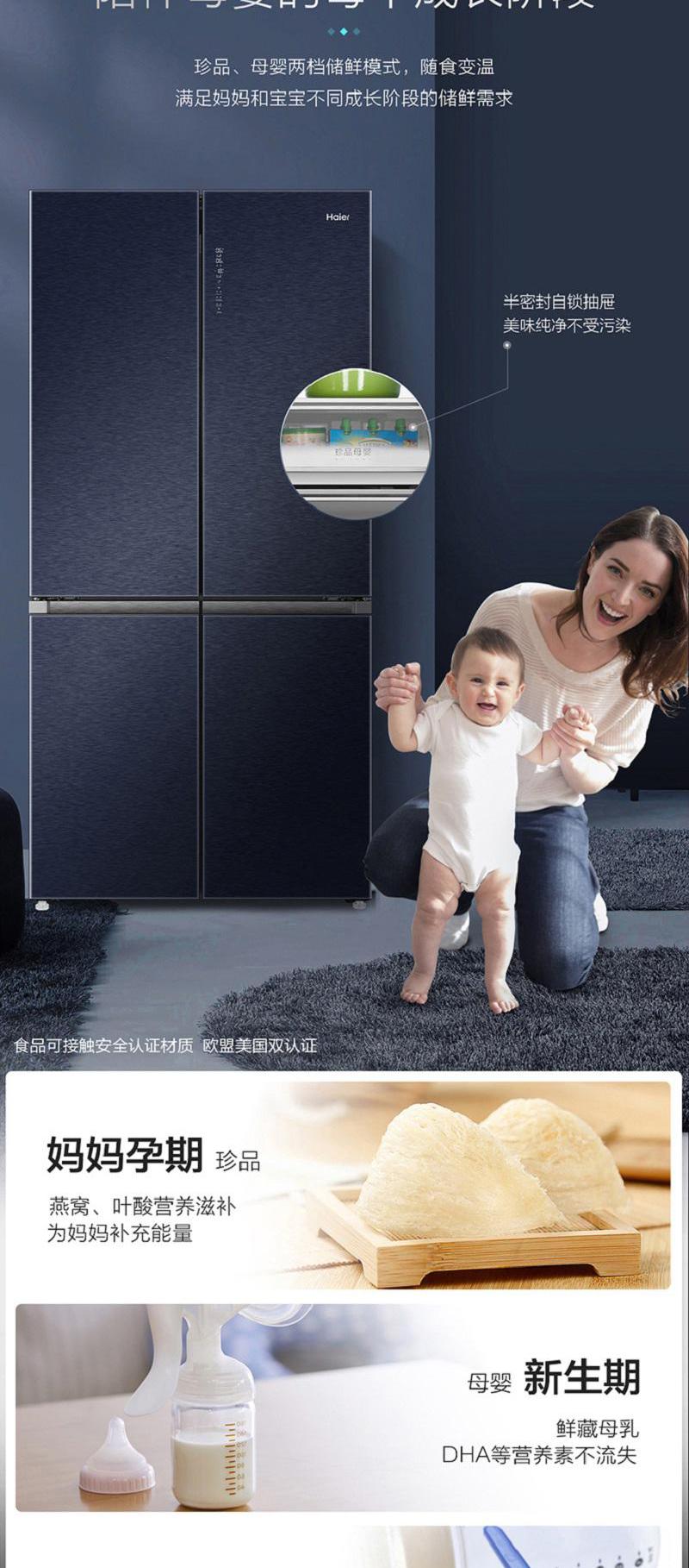 海尔(Haier)600升全空间保鲜零距离自由嵌入式十字对开门四门冰箱 BCD-600WSGKU1
