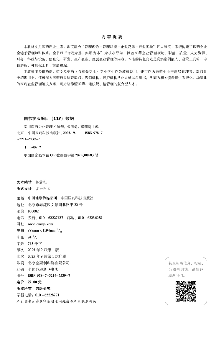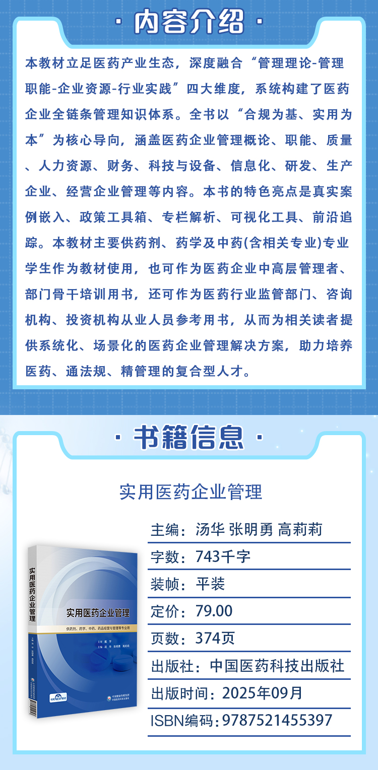 实用医药企业管理 汤华 张明勇 高莉莉 主编 供药剂 药学 中药药品经营与管理等专业用 9787521455397 中国医药科技出版社
