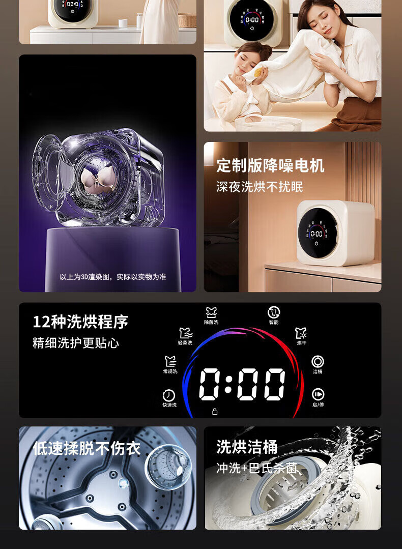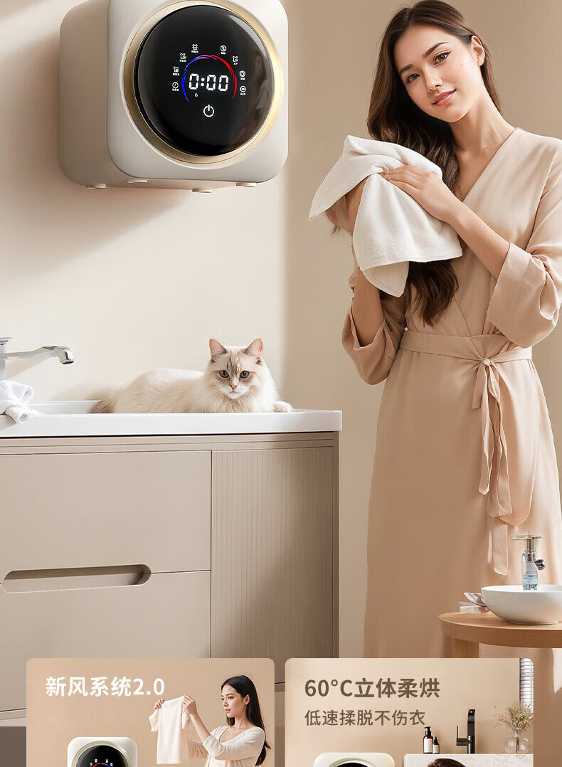 艾德勒滚筒迷你内衣洗衣机小型全自动成人母婴儿童袜子洗烘一体内裤清洗机壁挂桌面两用 壁挂升级新款-洗烘一体 杀菌除螨