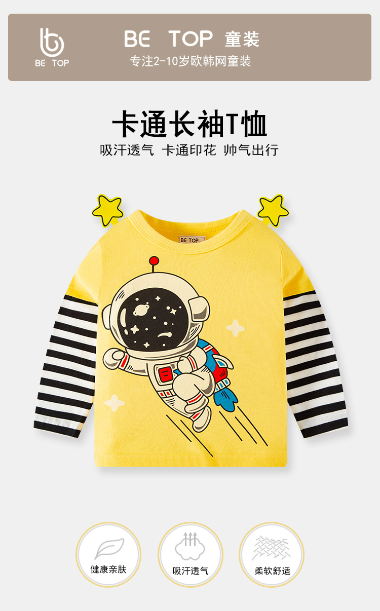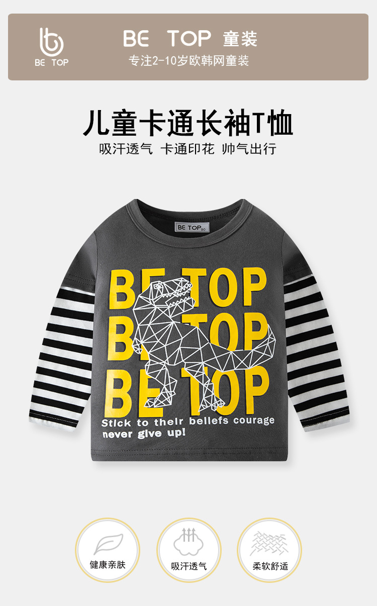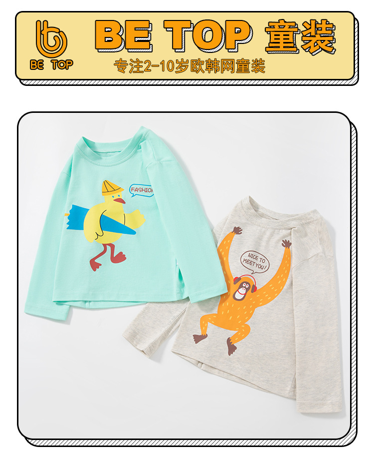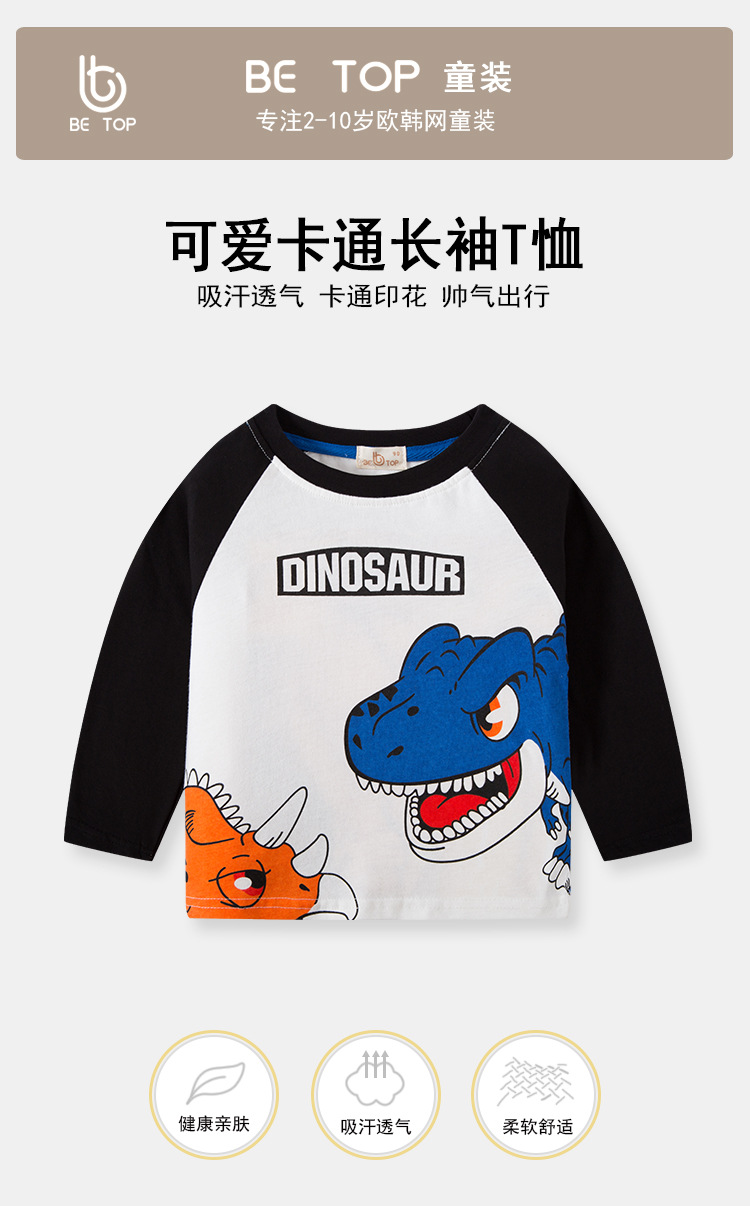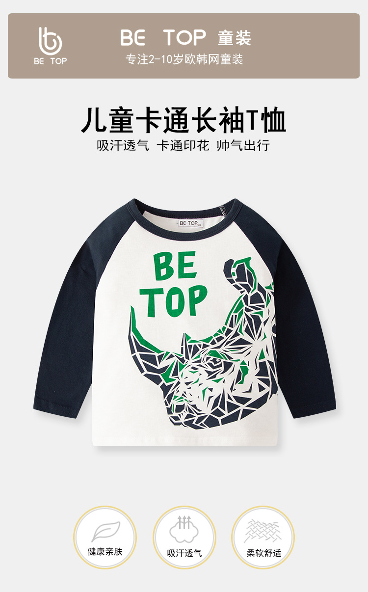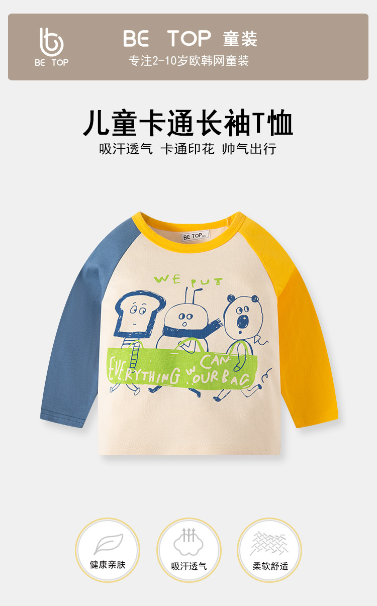 【拍3件69元】【专柜品质】】be top品牌儿童纯棉长袖T恤卡通印花男童圆领打底衫