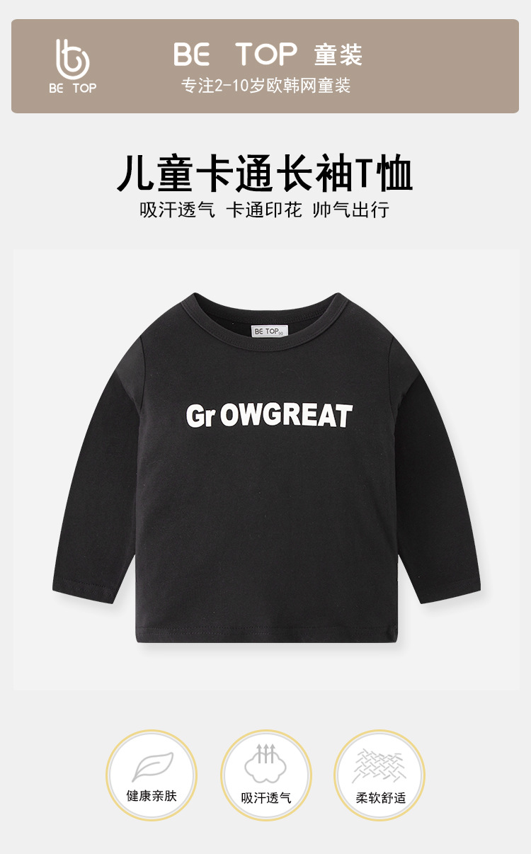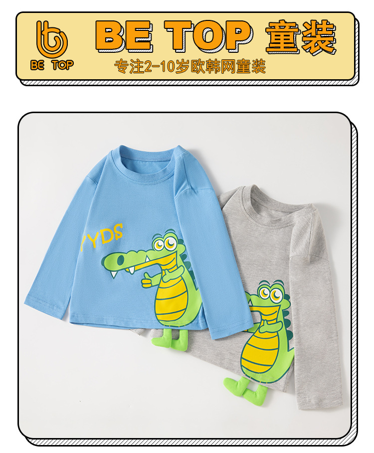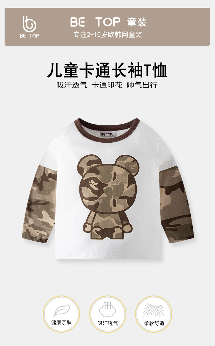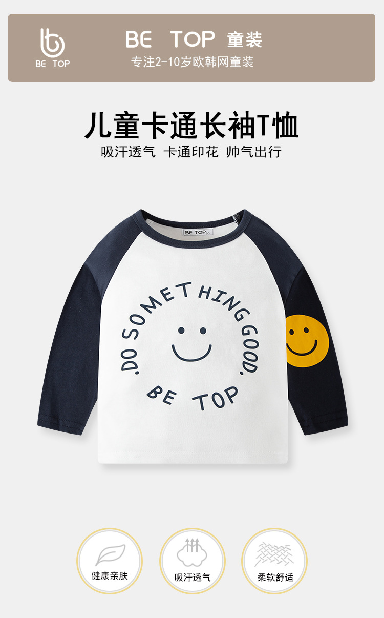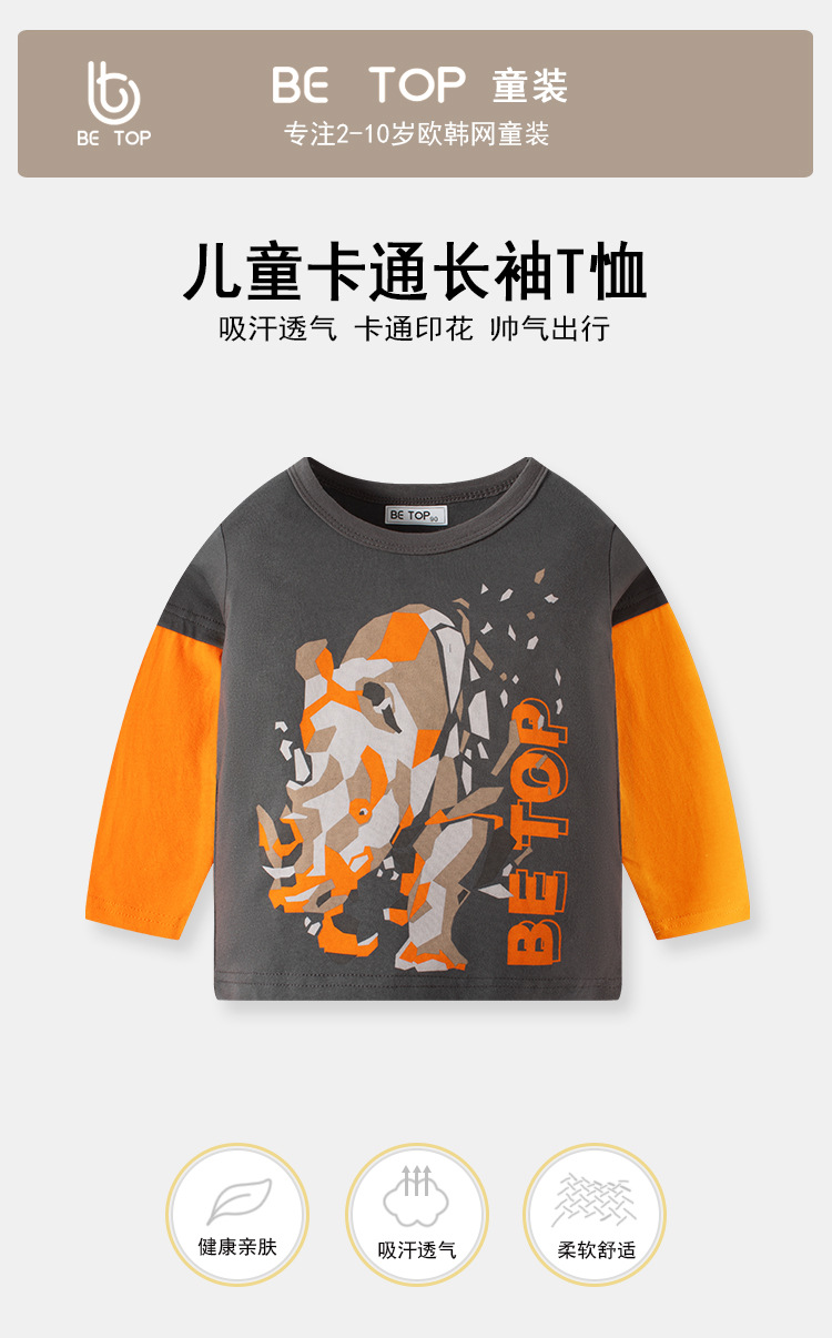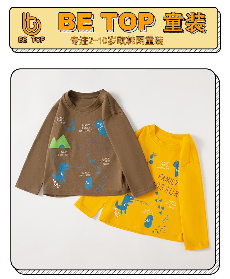 【拍3件69元】【专柜品质】】be top品牌儿童纯棉长袖T恤卡通印花男童圆领打底衫