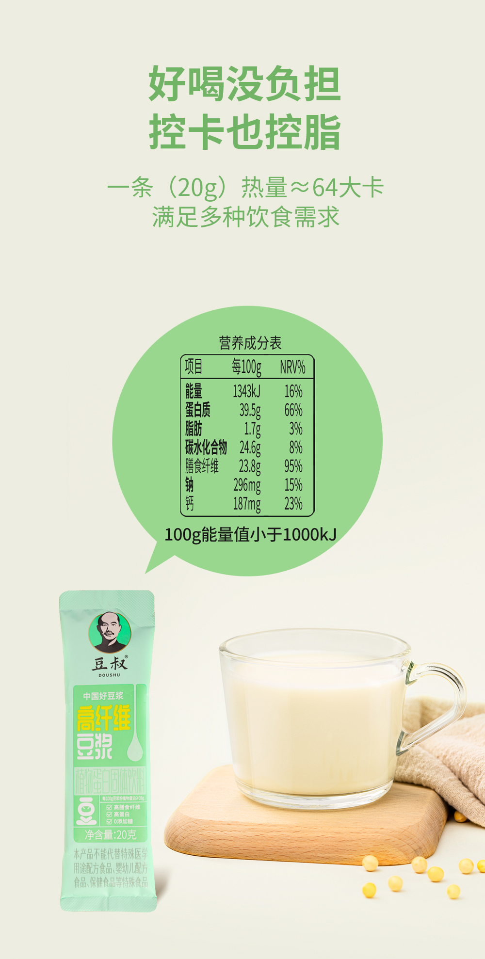 品名:高纤维豆浆粉规格:20g/条发货地/产地:江苏、上海等多仓随机/上海保质期:12个月,建议收到后尽快食用。包装方式:袋装物流信息:四通一达或其它快递随机发货,不接受指定快递。不发货区域:新疆、西藏、港澳台; |