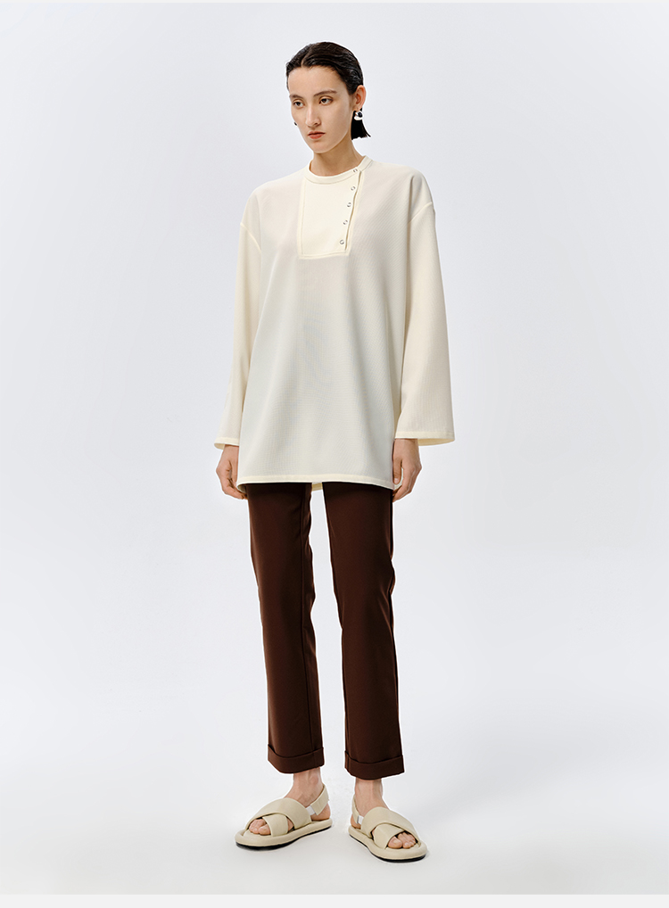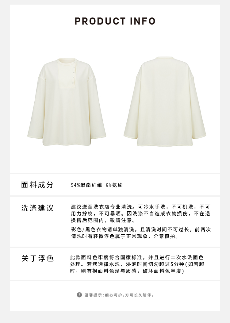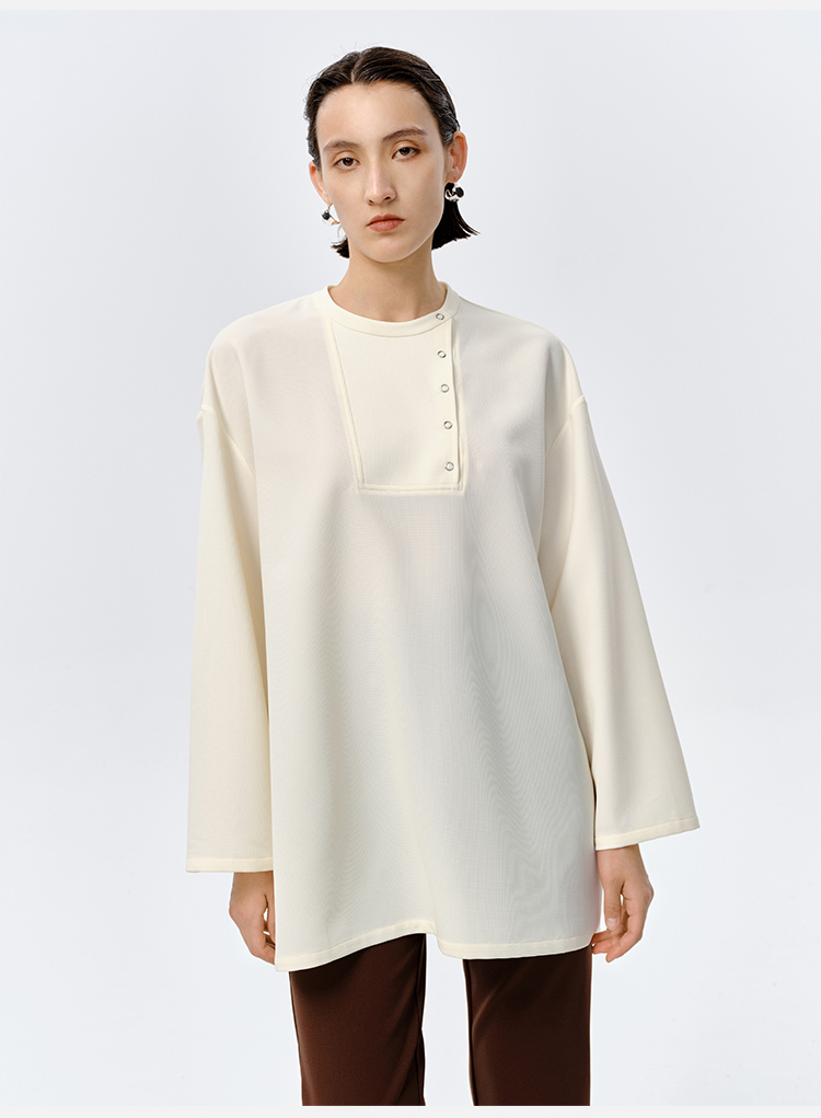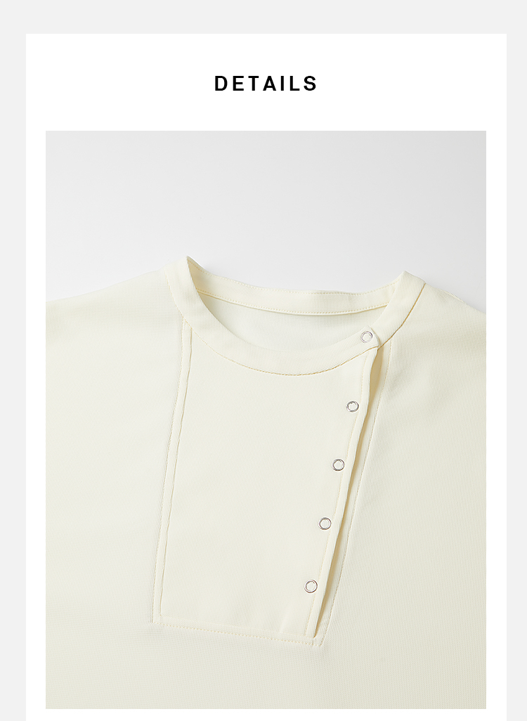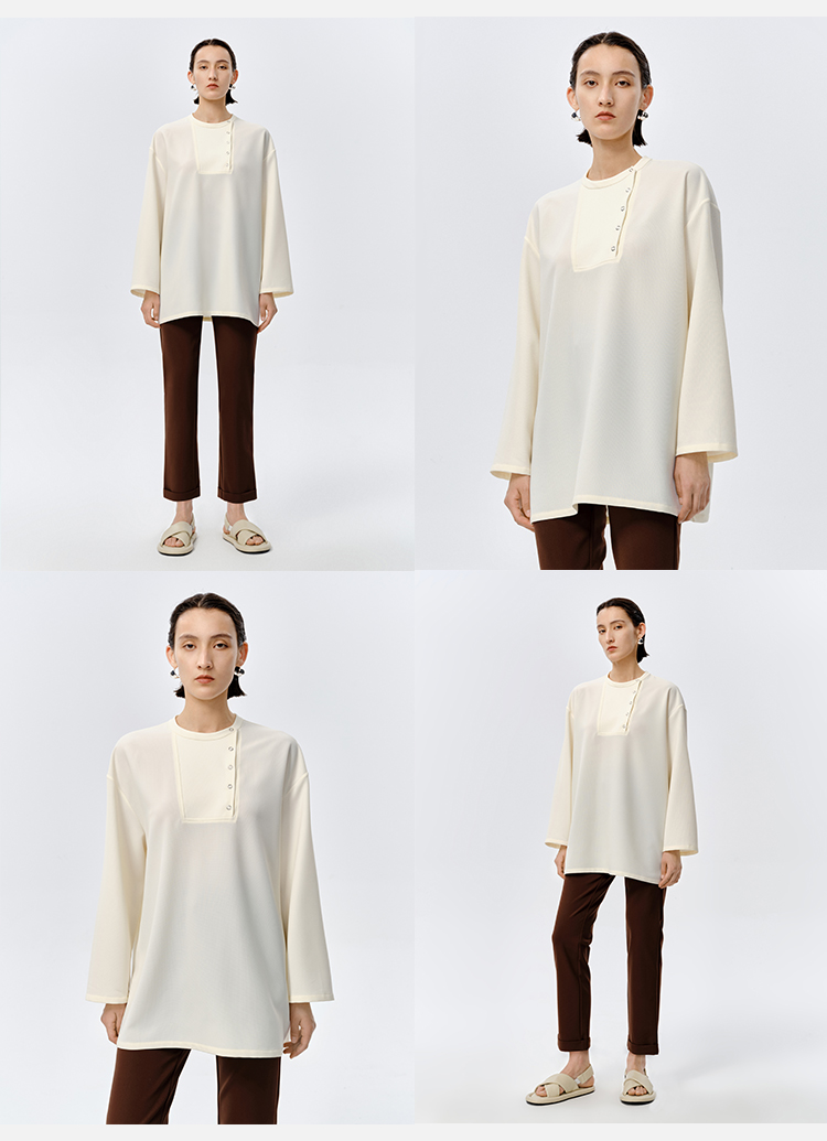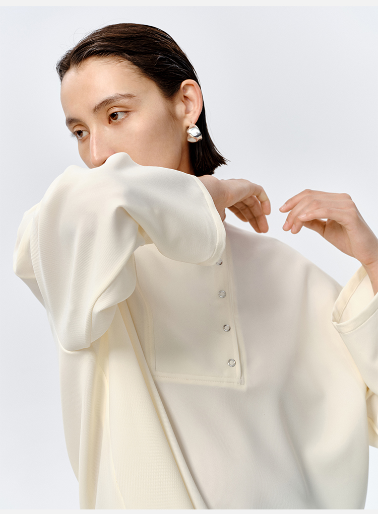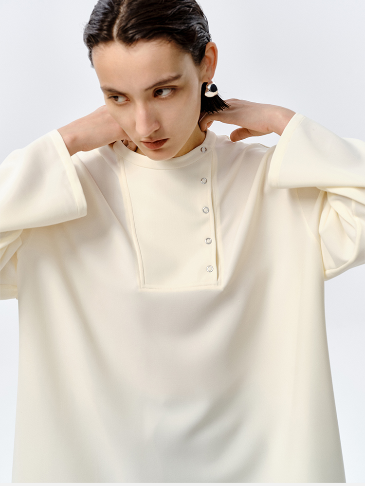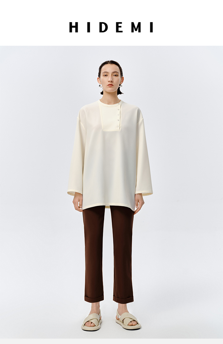 HIDEMI 云朵顺滑轻肤感极简廓形不对称按扣宽松廓形上衣