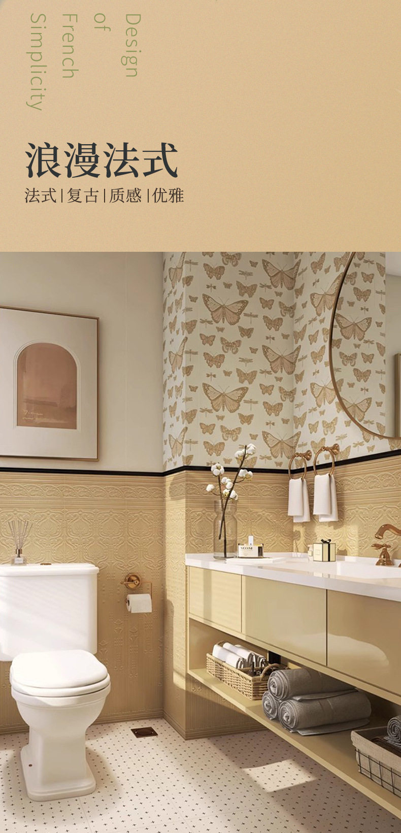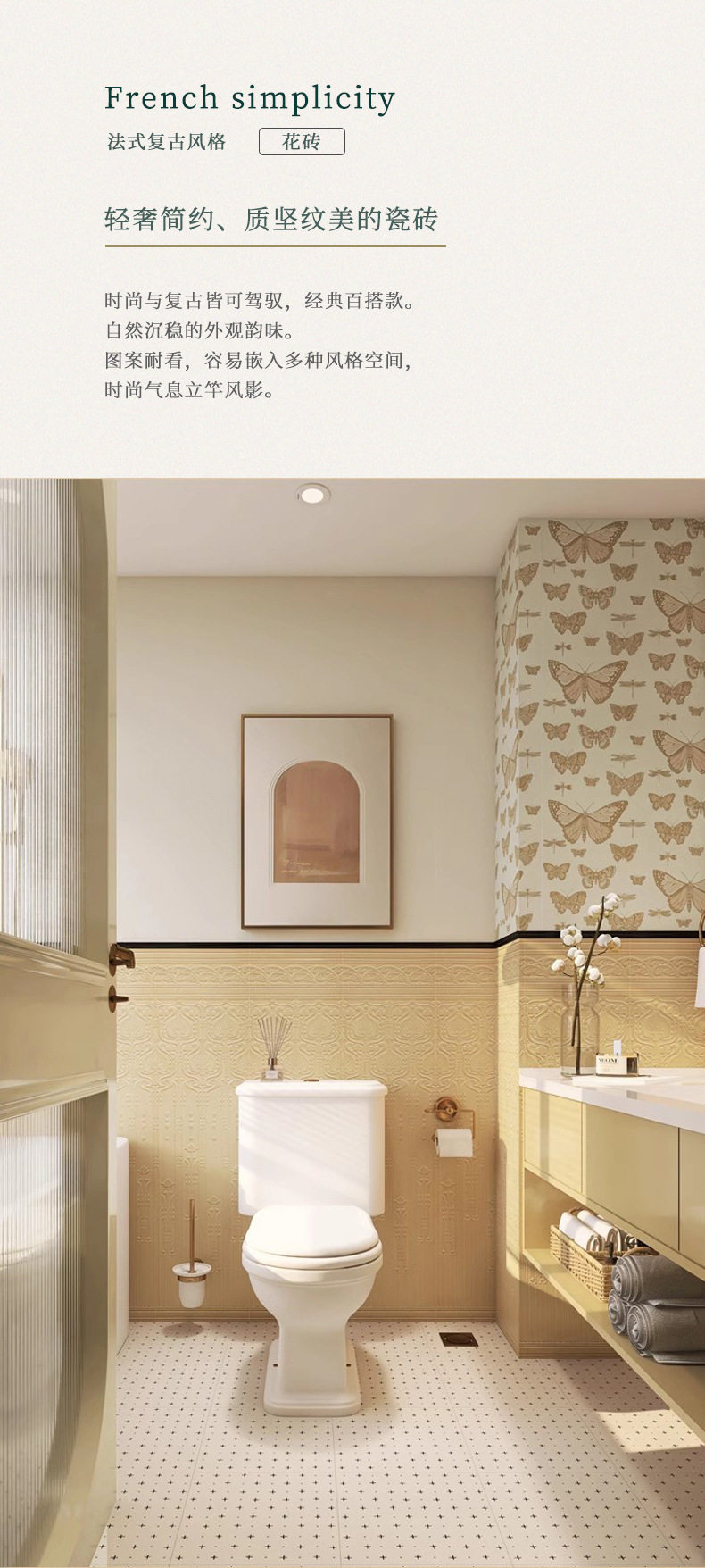 花砖300x1200墙砖法式卫生间姜黄复古瓷砖阳台海基地板砖厨房布