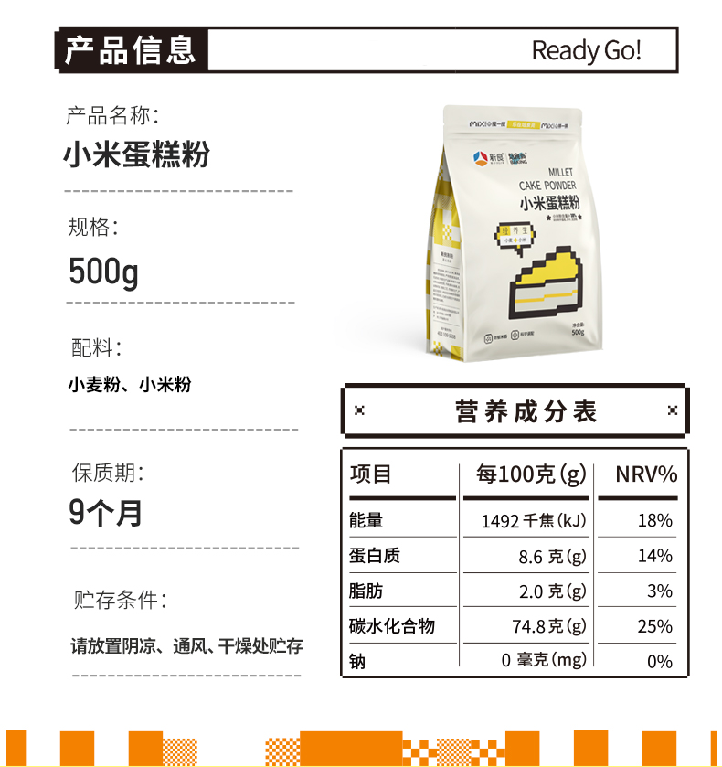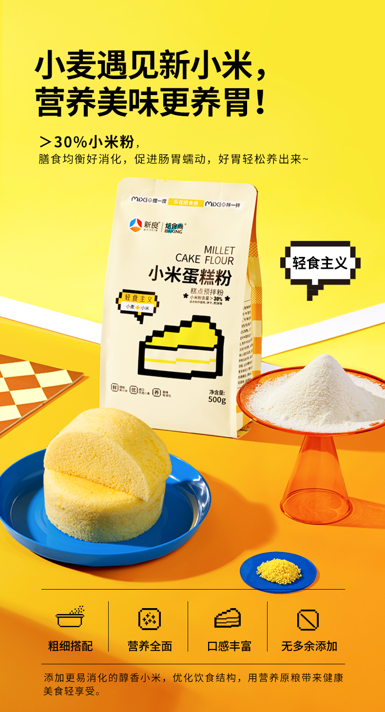 新良小米蛋糕粉500g家用米发糕预拌粉蒸糕松饼烘焙低筋面粉焙食尚