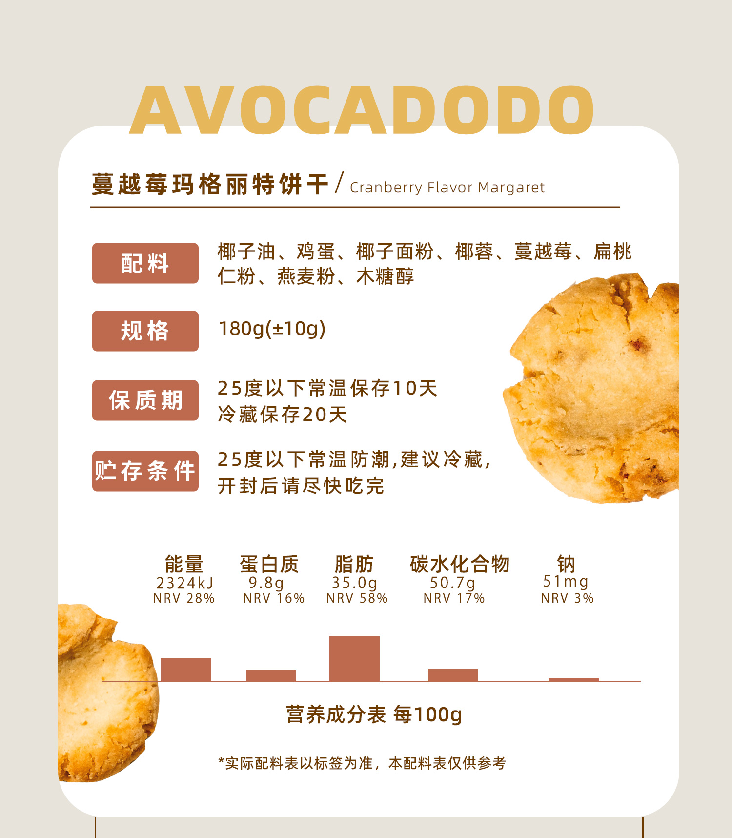 Avocadodo玛格丽特饼干蔓越莓蓝莓味不加小麦奶敏宝牛油果果桥本
