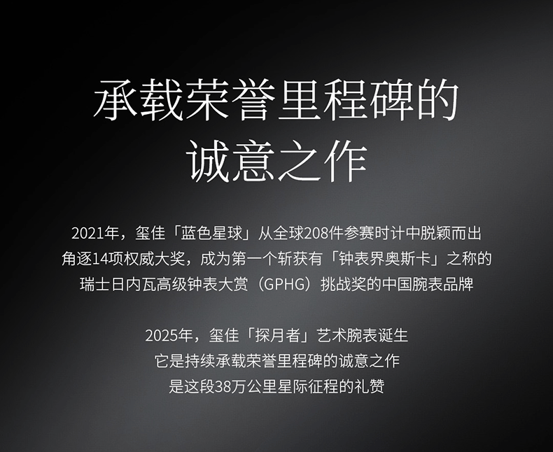- 钟表界设计先锋,2021年荣获第19届瑞士日内瓦钟表大赏GPHG的中国品牌。秉持“设计成就非凡”理念,坚守原创,突破传统。