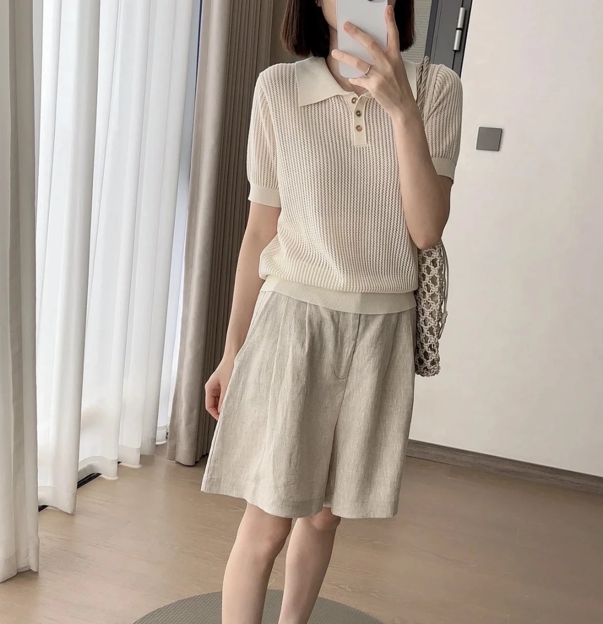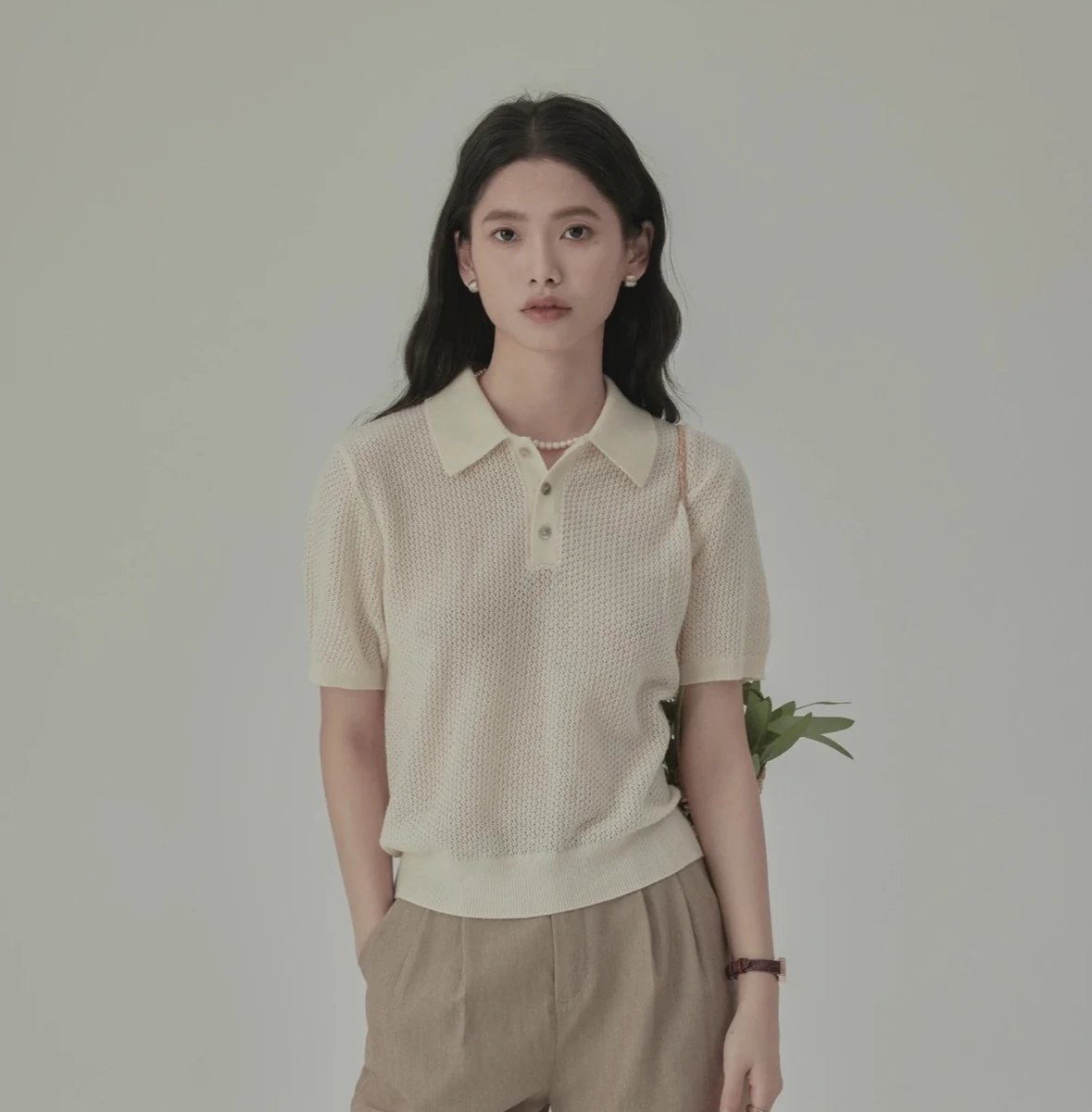 富家千金既视感 重磅!LP翻领polo短袖 镂空桑蚕丝超细羊毛