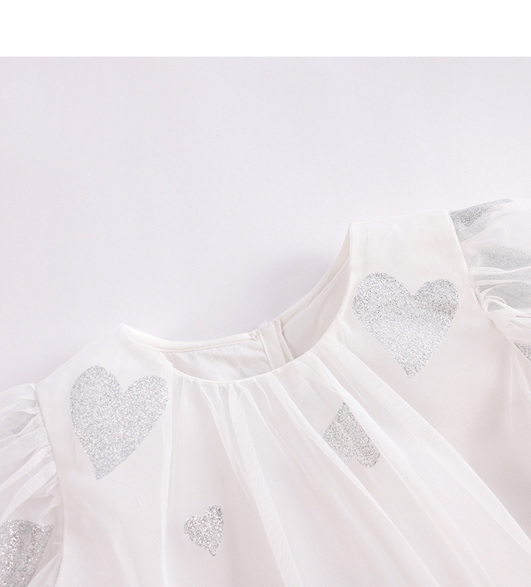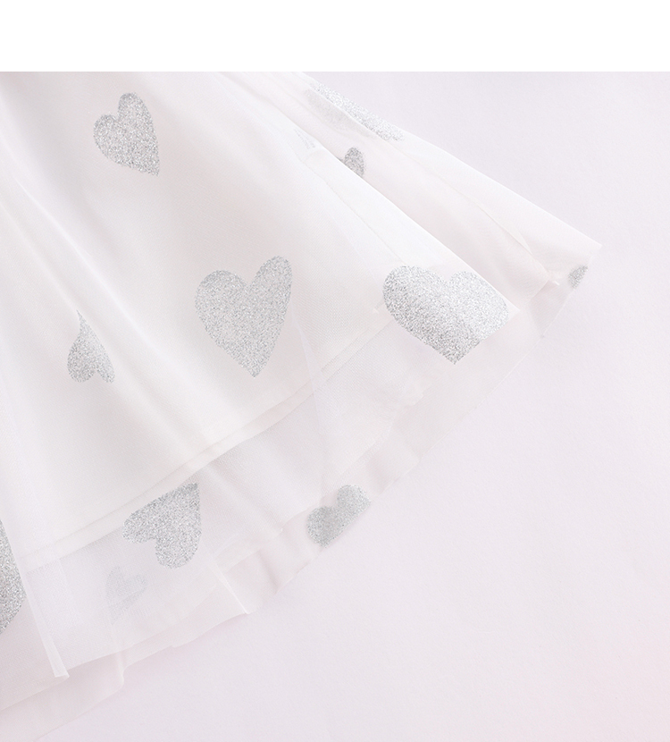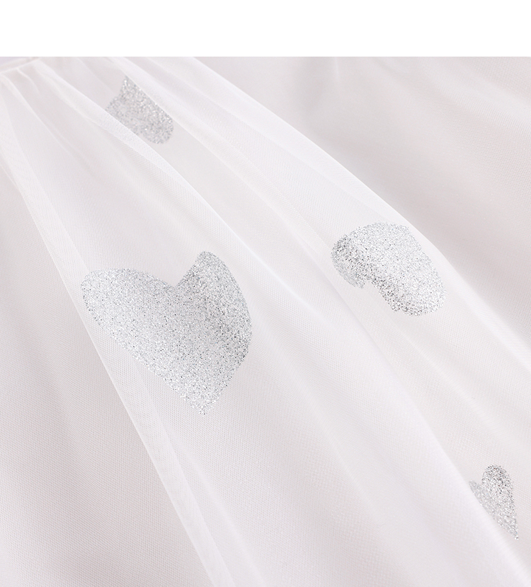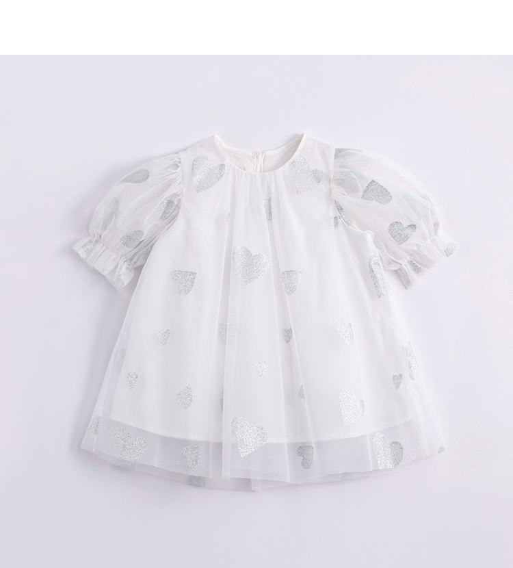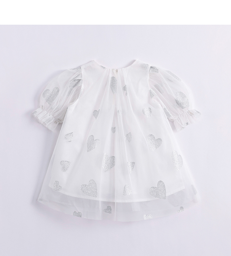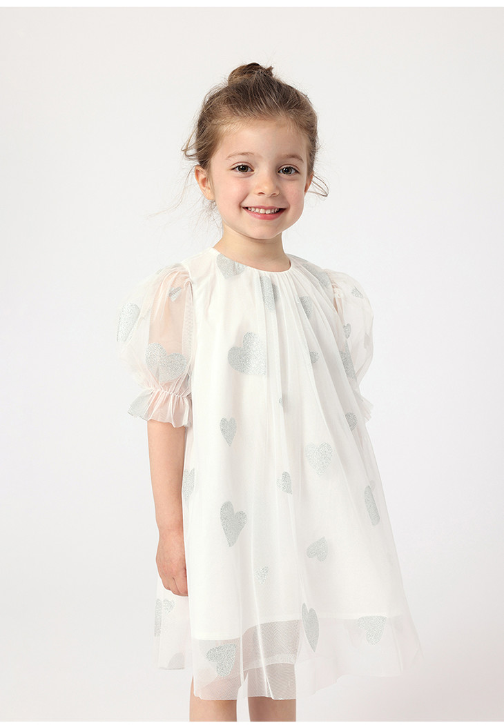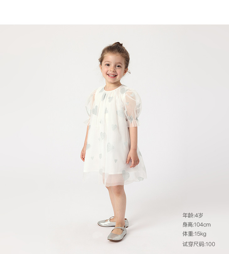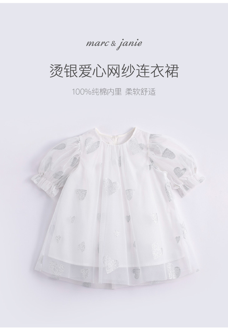 马克珍妮夏装新款 女童满底爱心泡泡袖网纱连衣裙230981