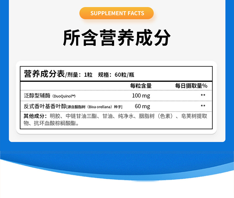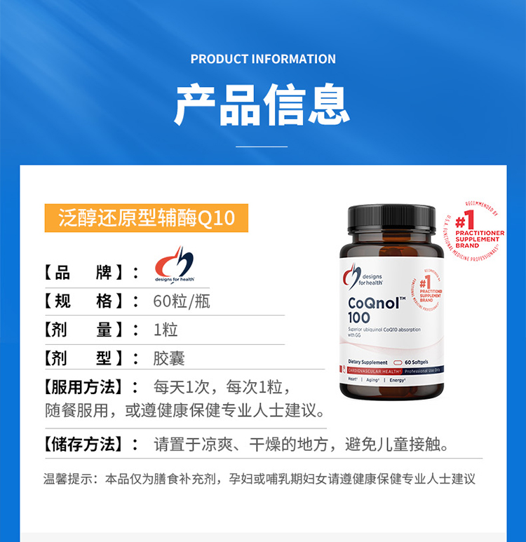 【效期至27年3月】泛醇还原型辅酶Q10 Designs for health CoQnol™ 100 mg softgels* 60粒/瓶