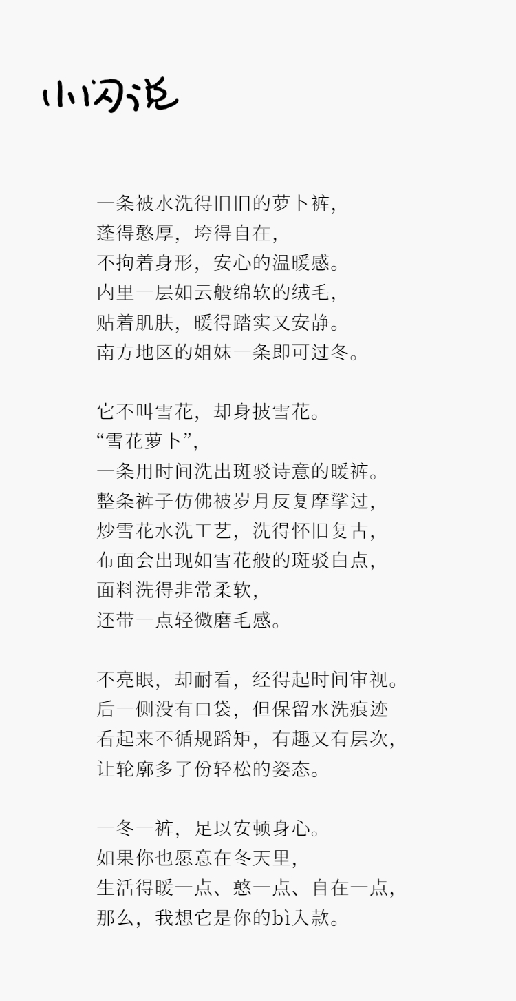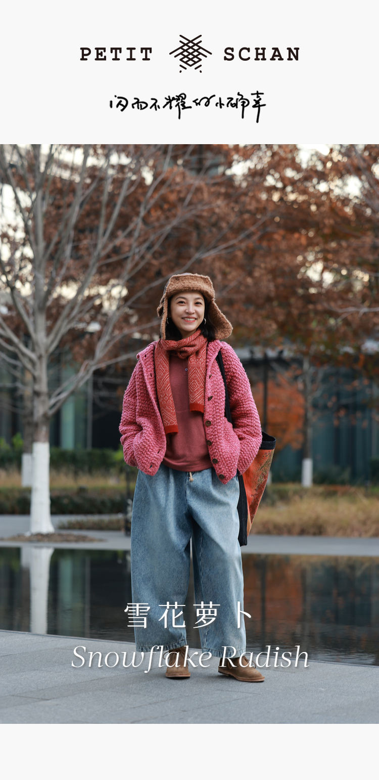 PETIT SCHAN小闪 CLO#1013 Snowflake Radish 雪花萝卜 棉混纺松紧腰加绒牛仔萝卜裤