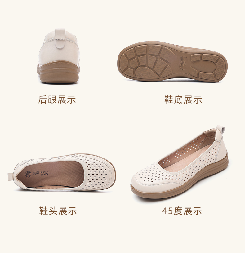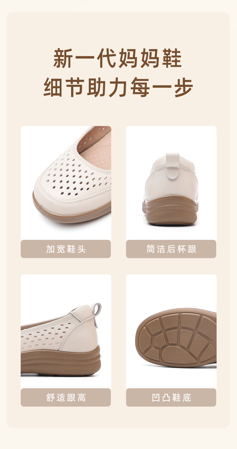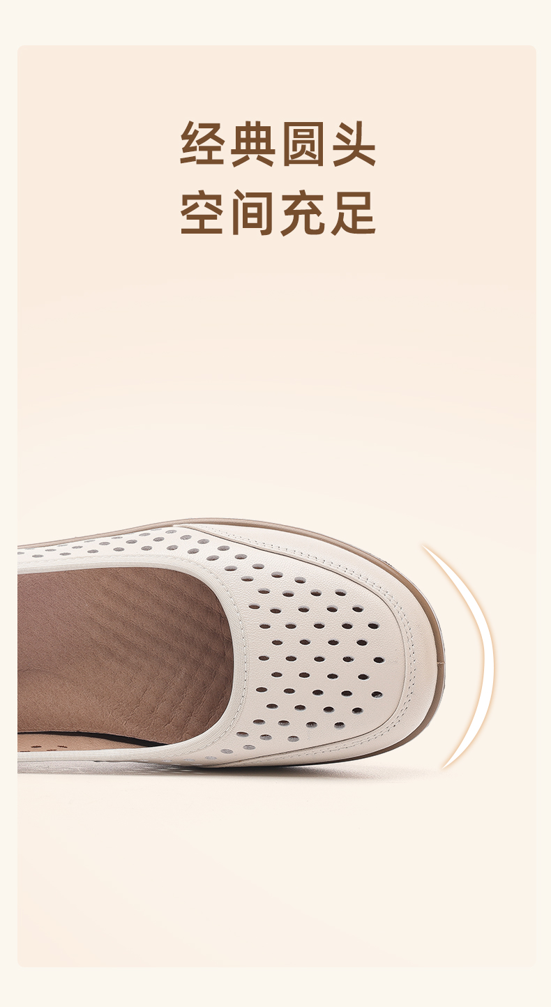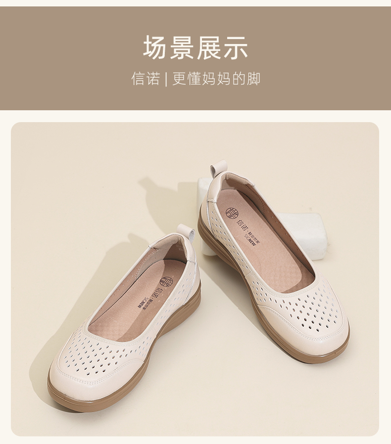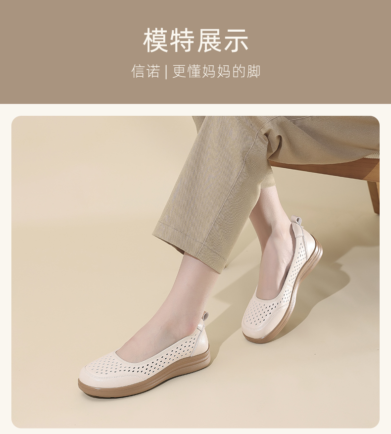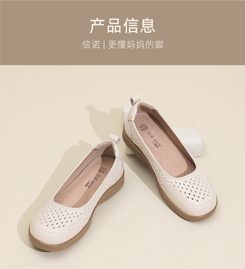 信诺妈妈凉鞋2025新款夏季真皮镂空洞洞鞋母亲节礼物一脚蹬老人鞋5C8166-016
