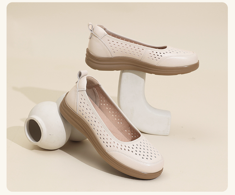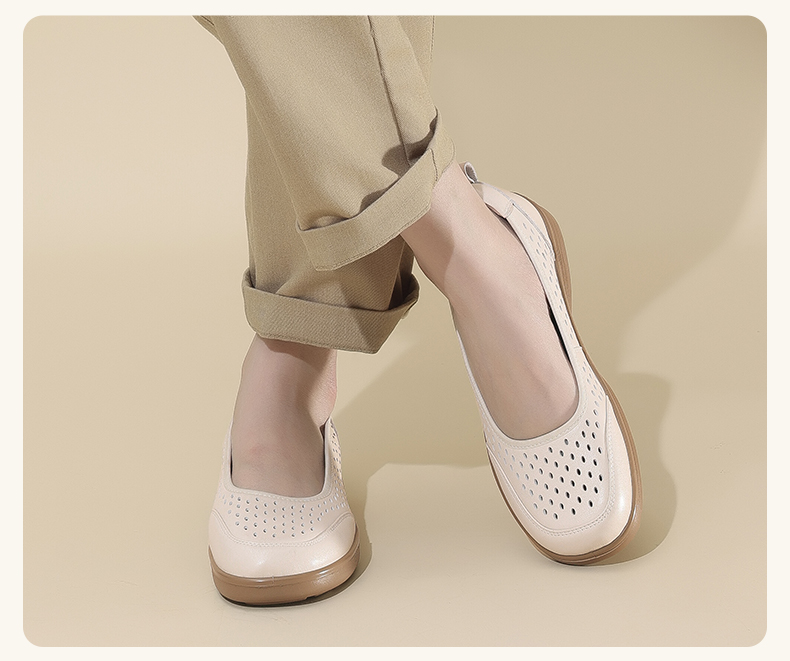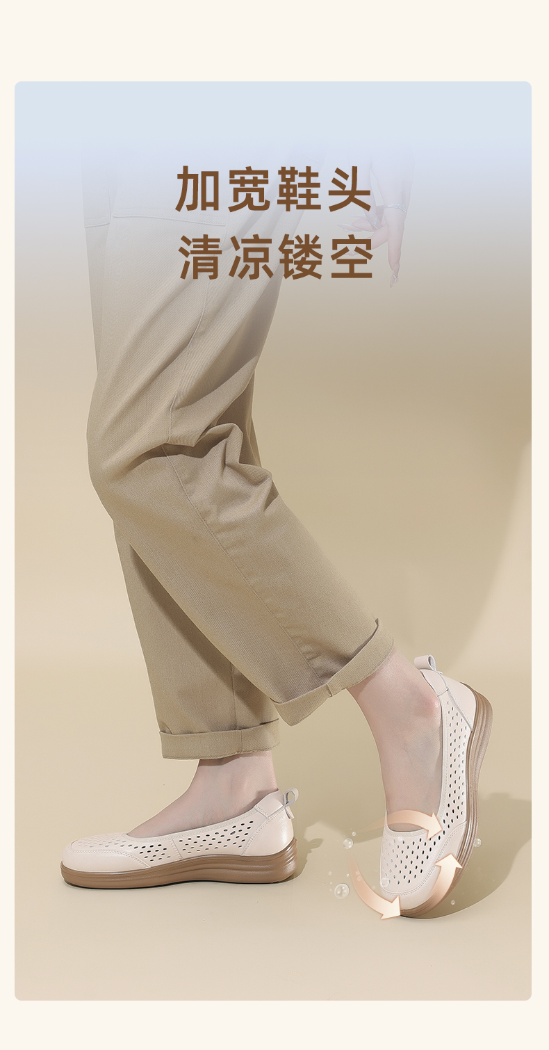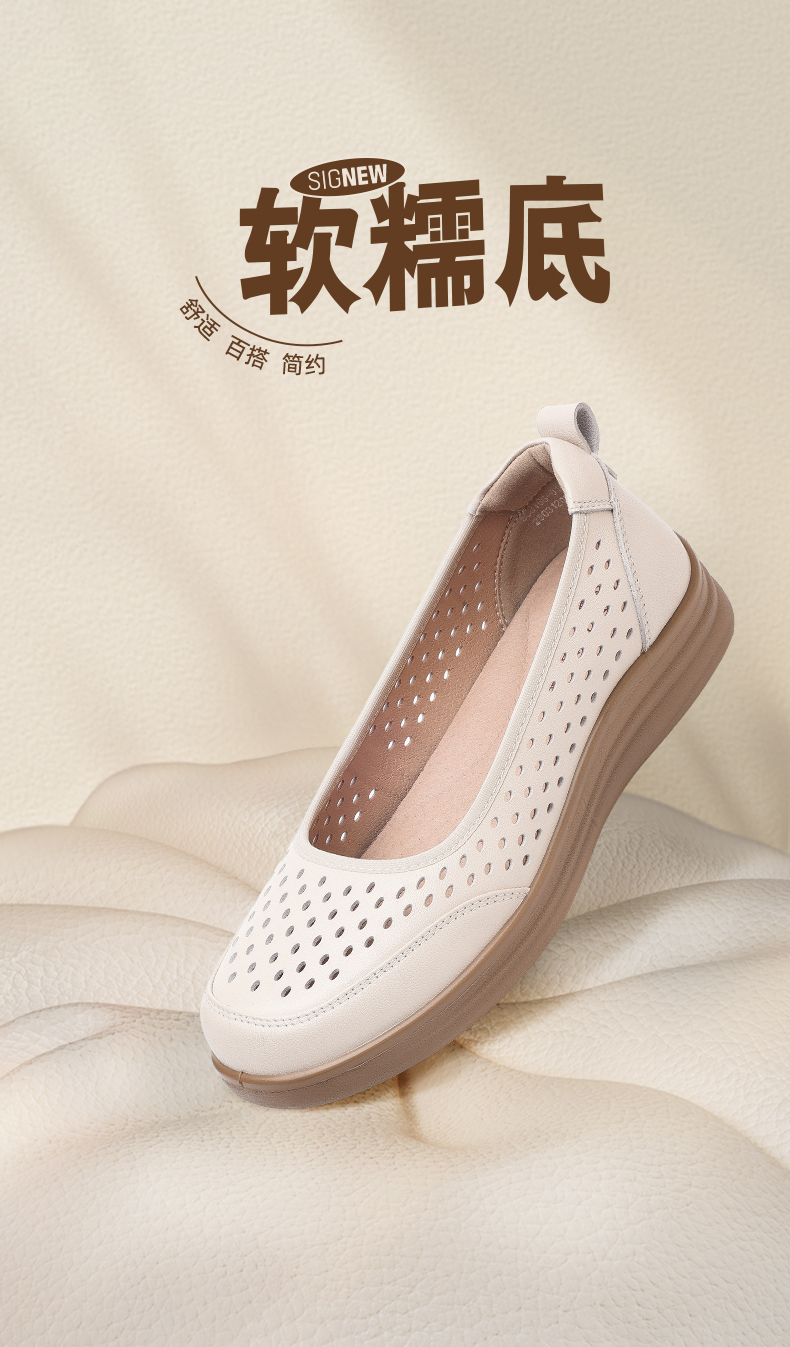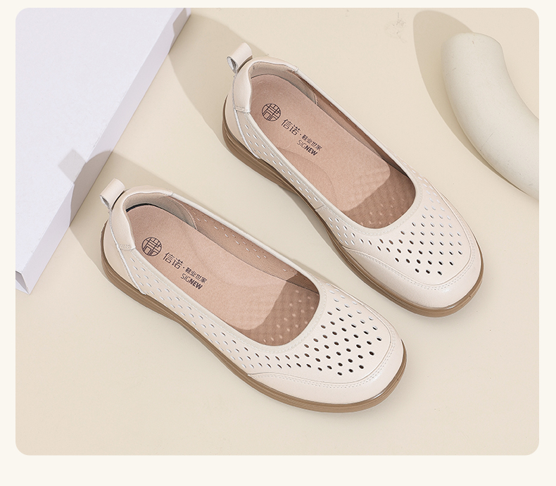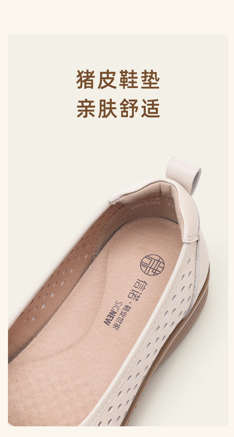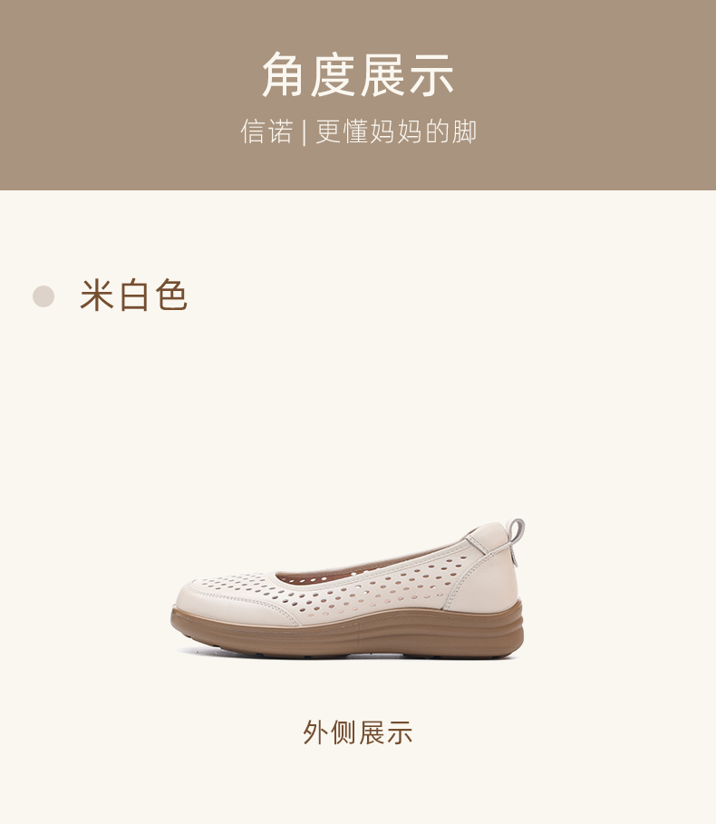 信诺妈妈凉鞋2025新款夏季真皮镂空洞洞鞋母亲节礼物一脚蹬老人鞋5C8166-016