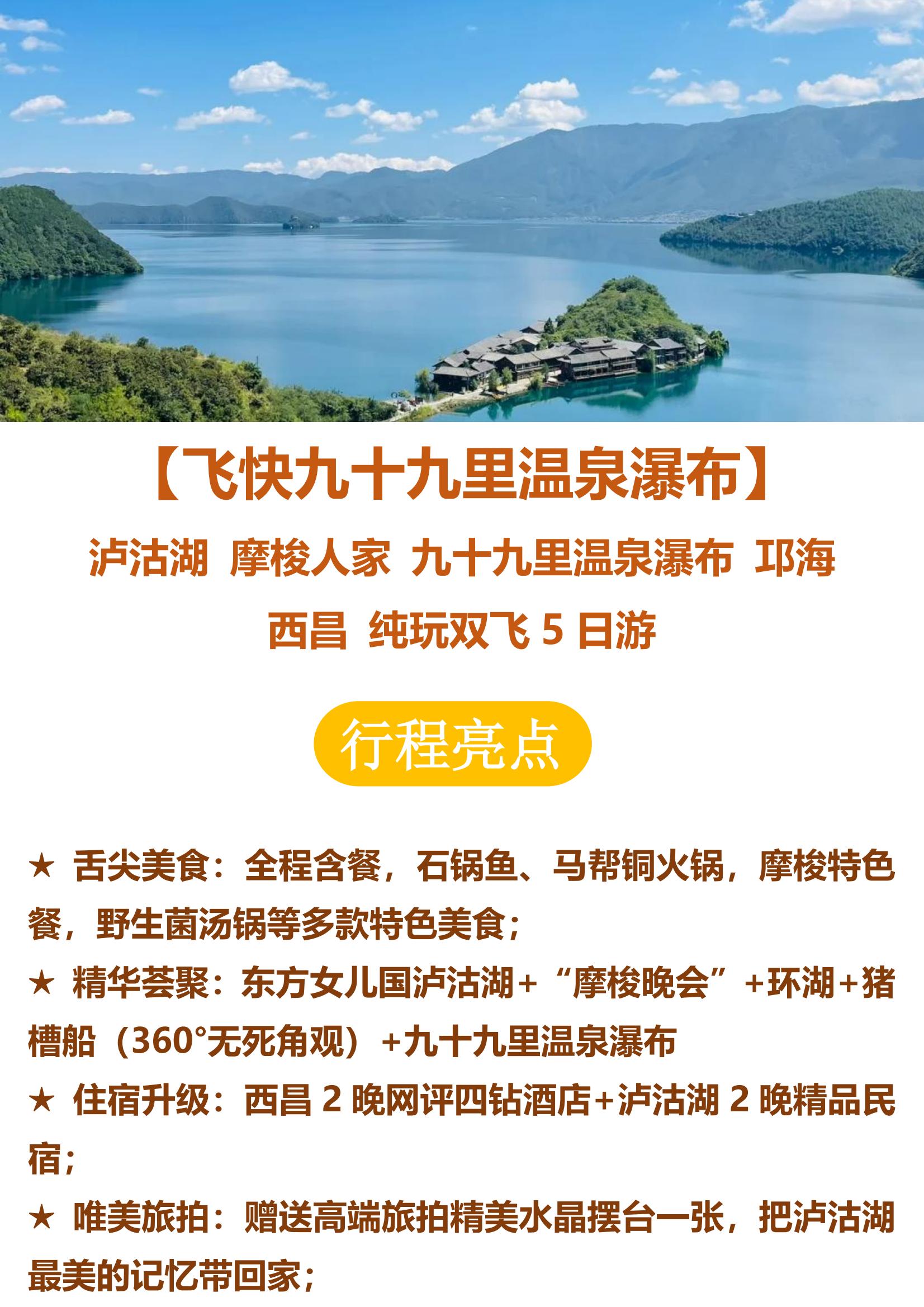 【飞快九十九里温泉瀑布】云南纯玩双飞5日游