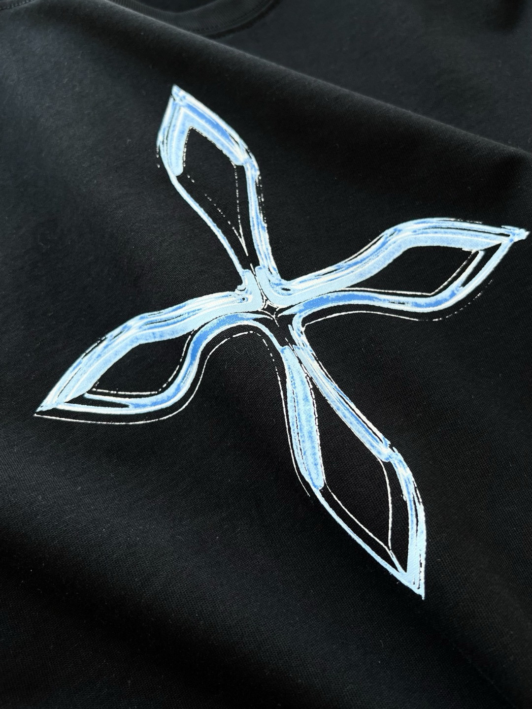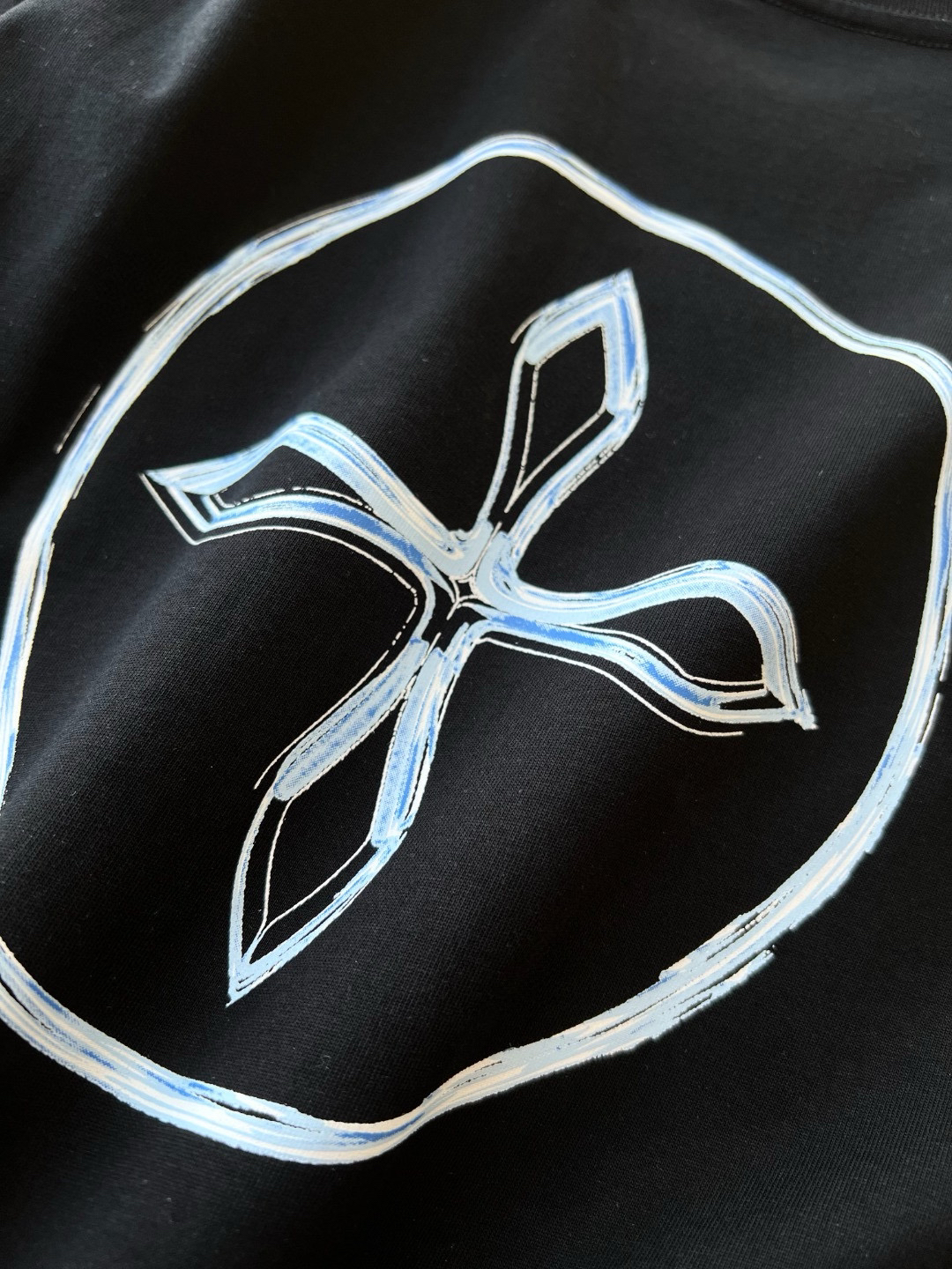 印花是它家非常经典的十字花logo 梦境系列 前胸后背都有大十字 后背是带圆圈的十字 就像现实和梦境一样前后做区分