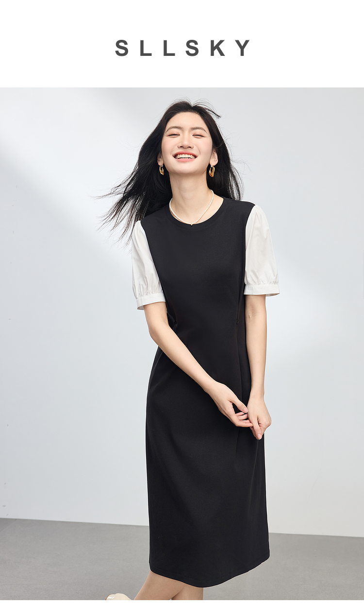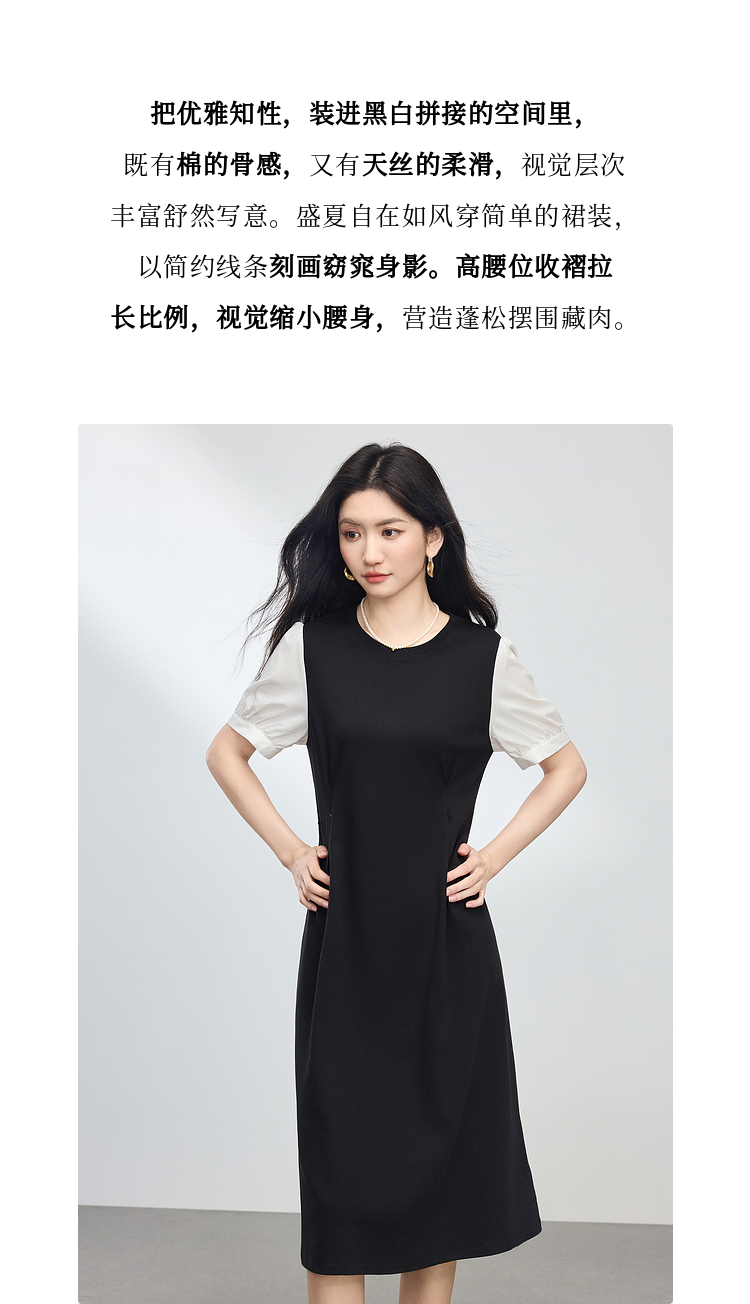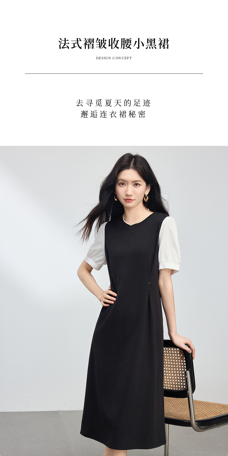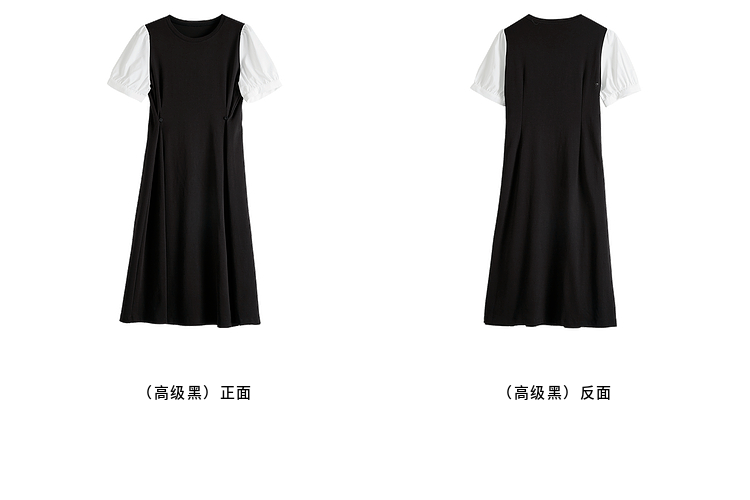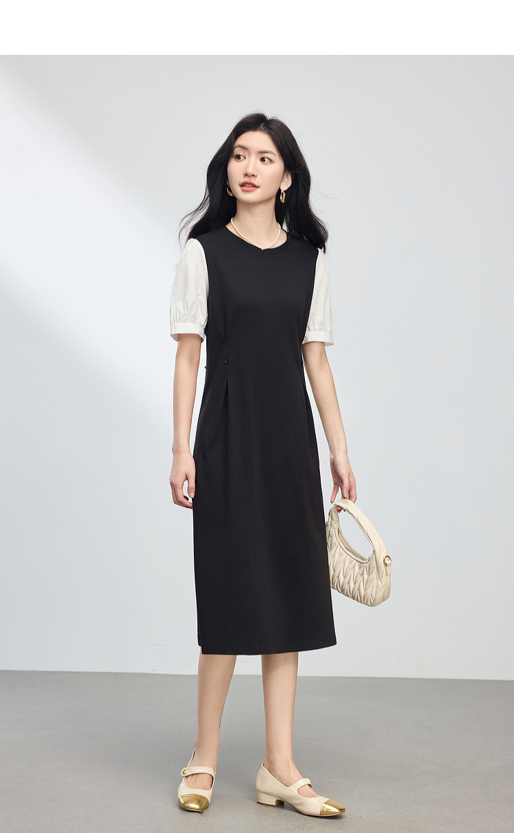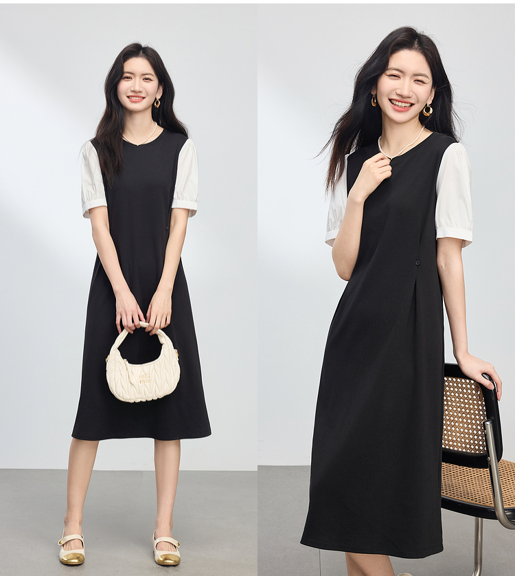 【专属特价】熙世界通勤风假两件连衣裙女2025夏季新款气质收腰圆领泡泡袖裙子