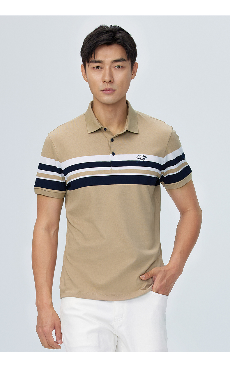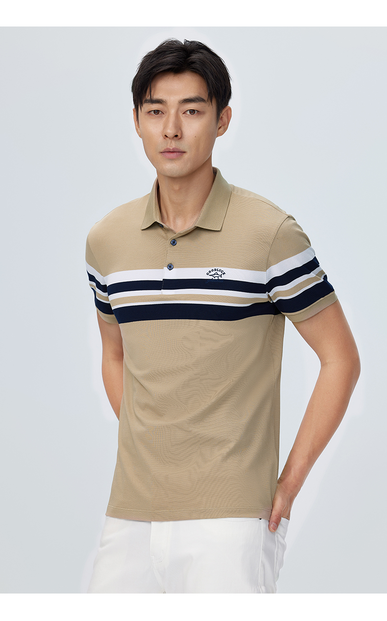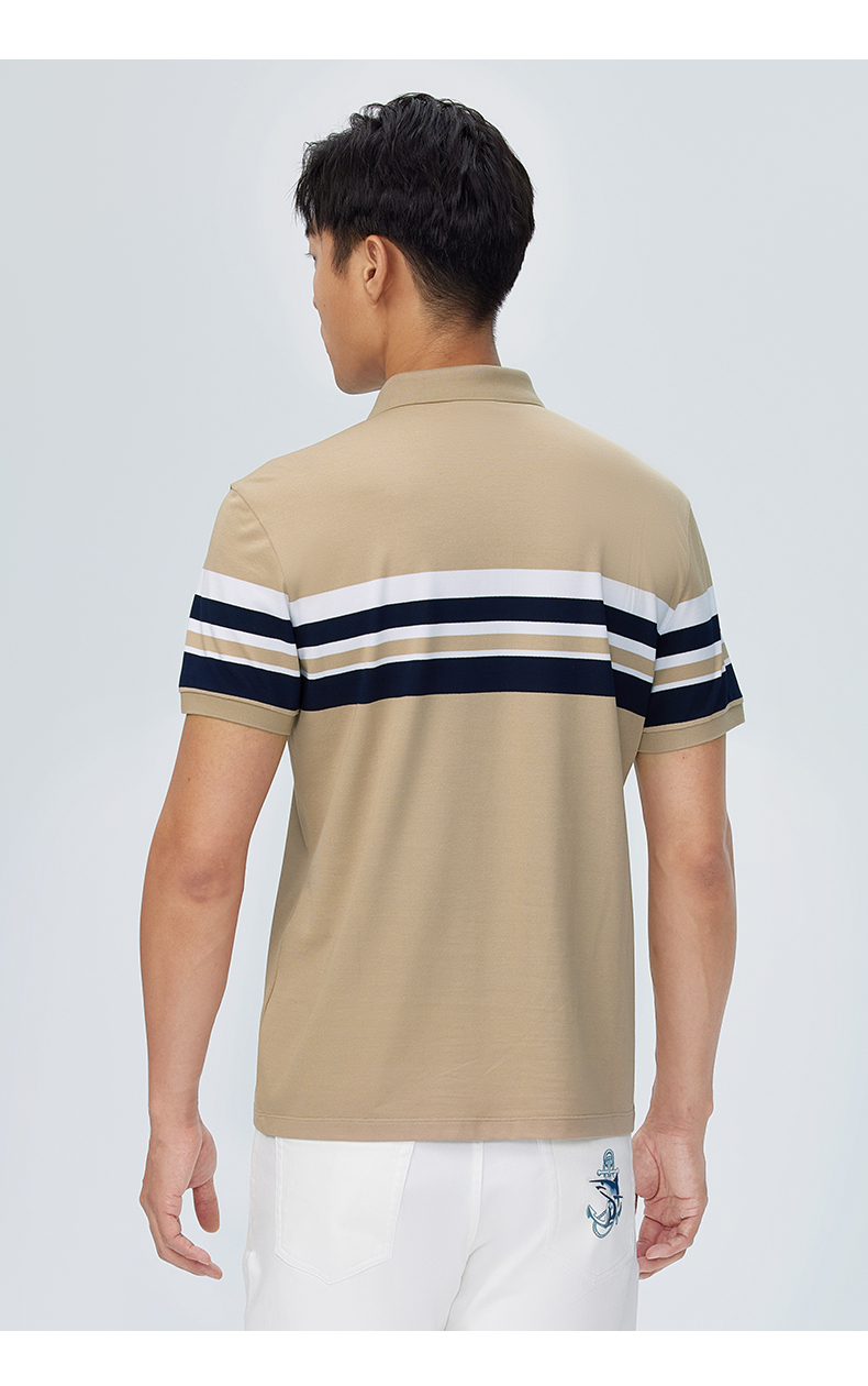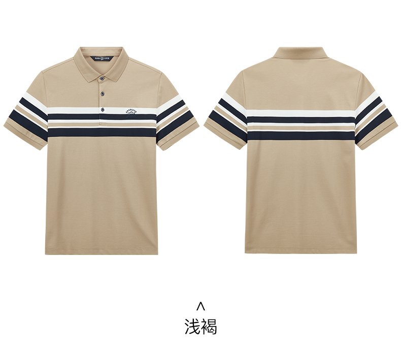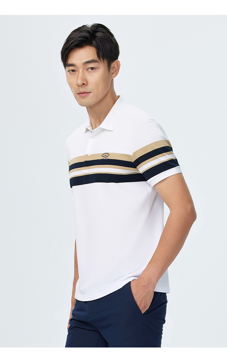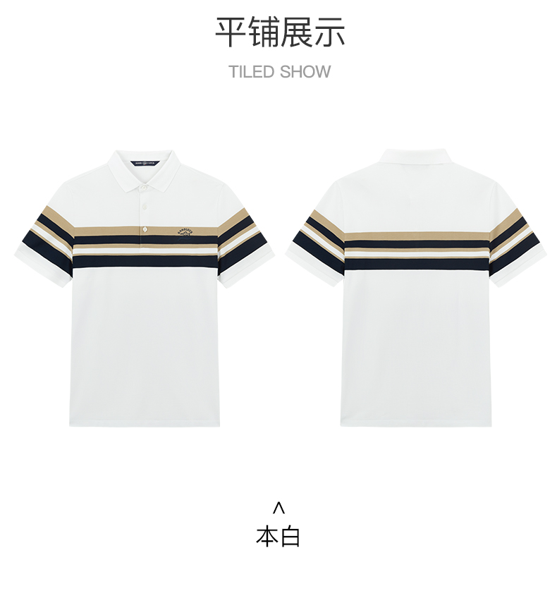 【桑蚕丝】德鲨撞色条纹短袖POLO衫男青年休闲打底翻领t恤