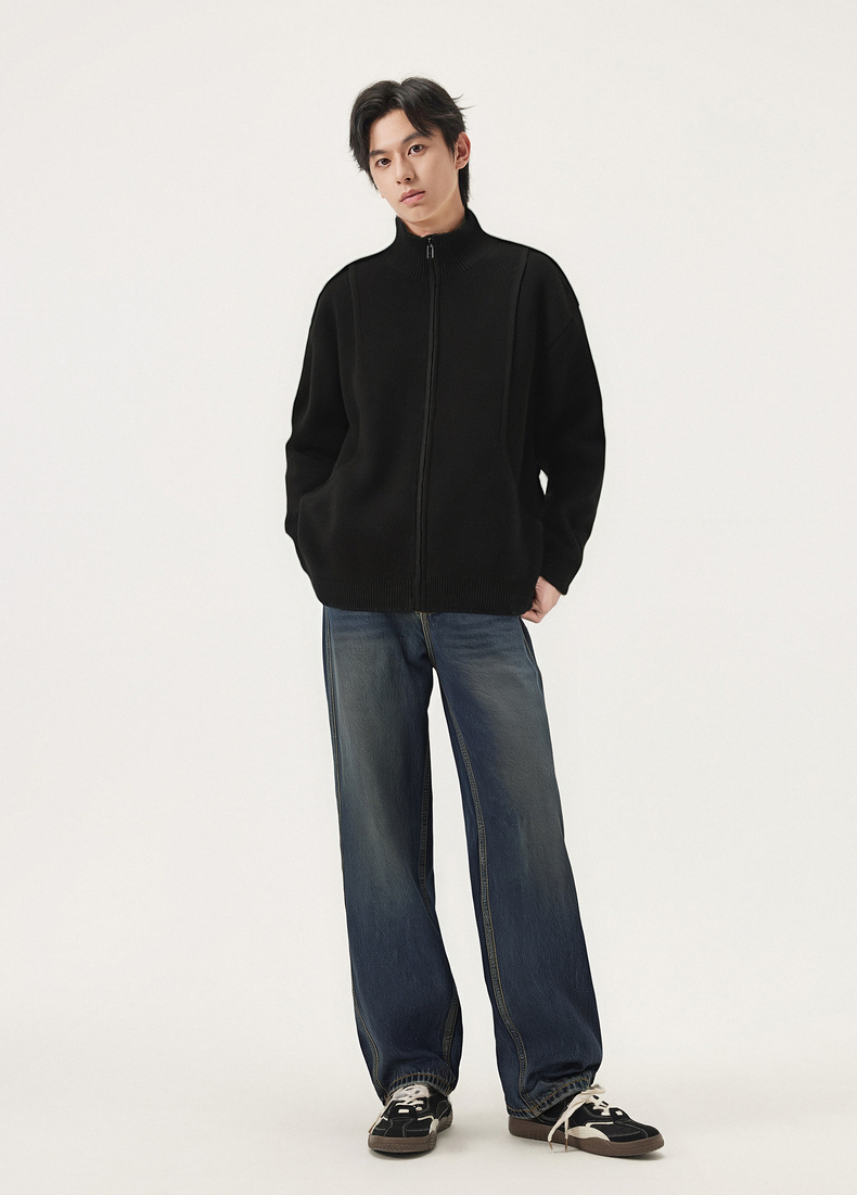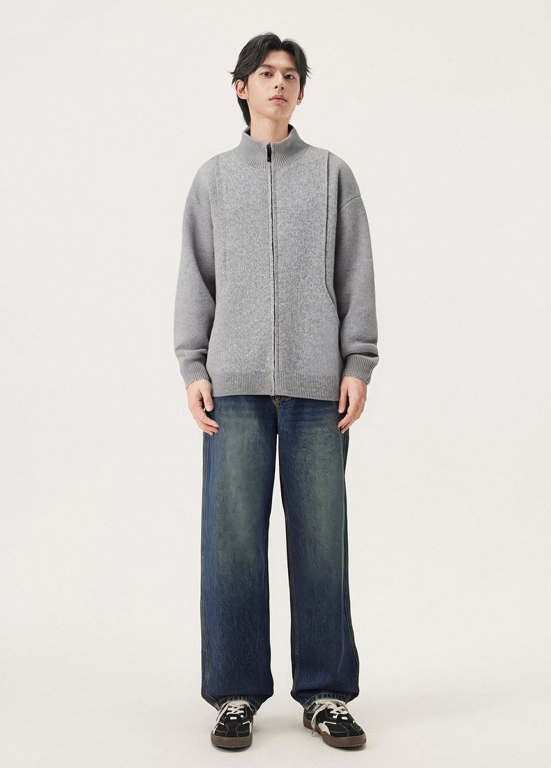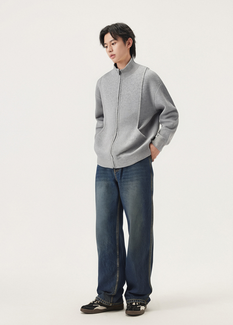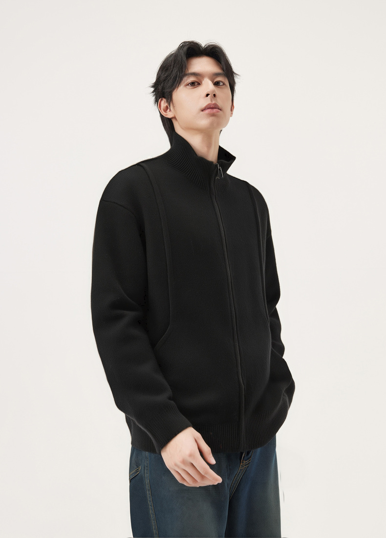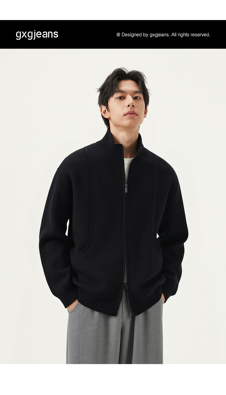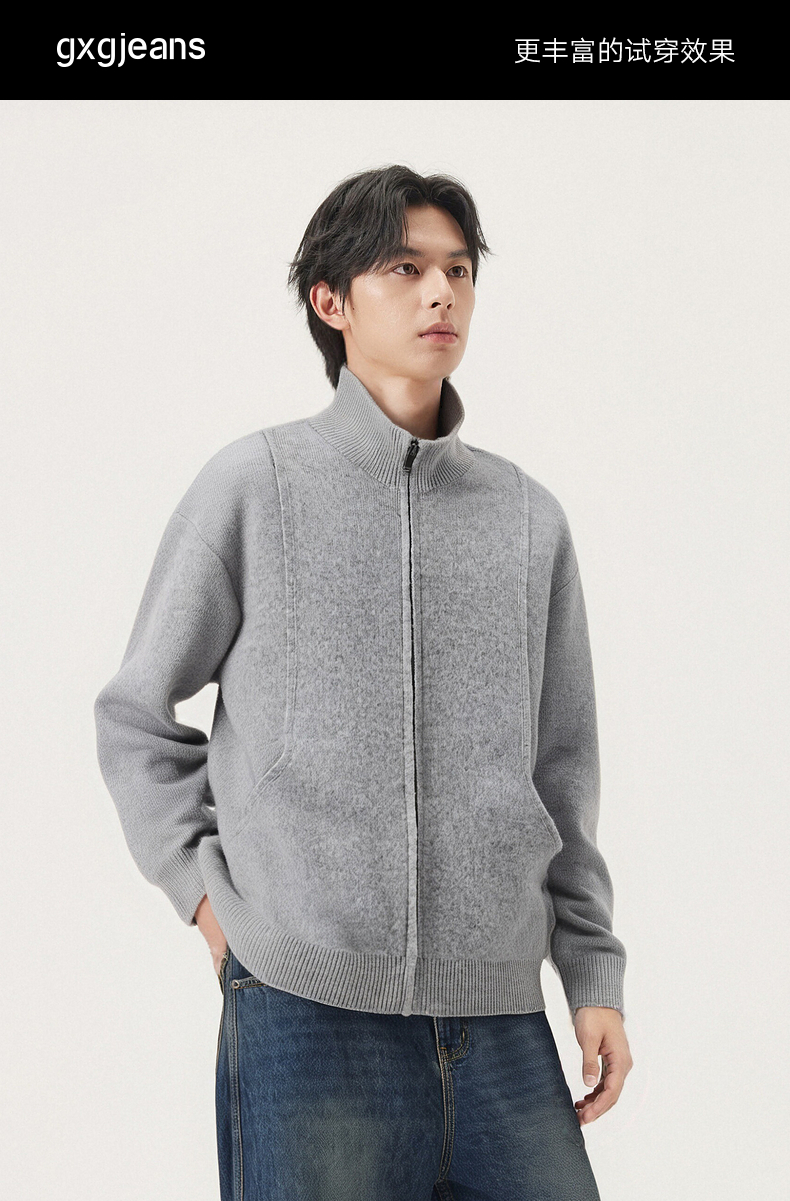 gxg.jeans男装 多色分割设计翻领开襟拉链毛衣线衫外套男25秋热卖