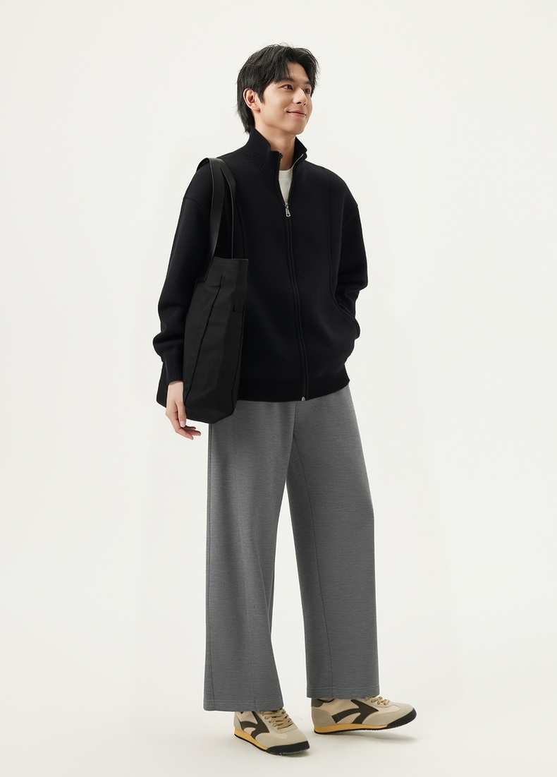 GXG男装 双色字母提花毛衫宽松针织衫男低领打底衫 2024秋季热卖
