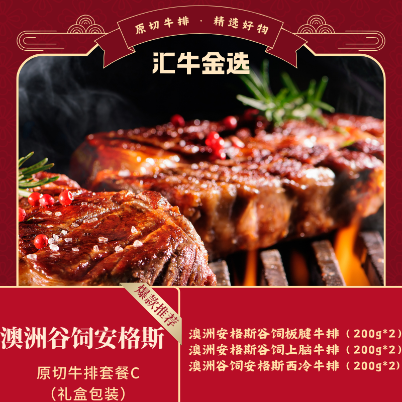 澳洲谷饲安格斯原切牛排399套餐C