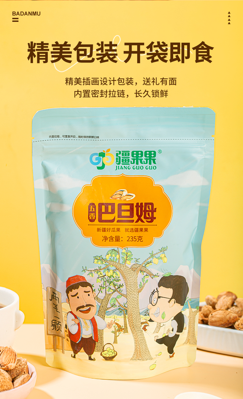 【严选】疆果果新疆特产五香巴旦木手剥薄壳235g/袋(厂家直发)
