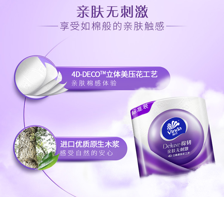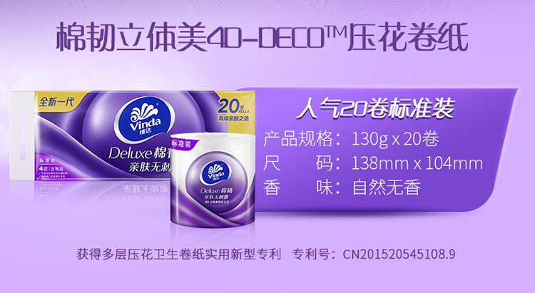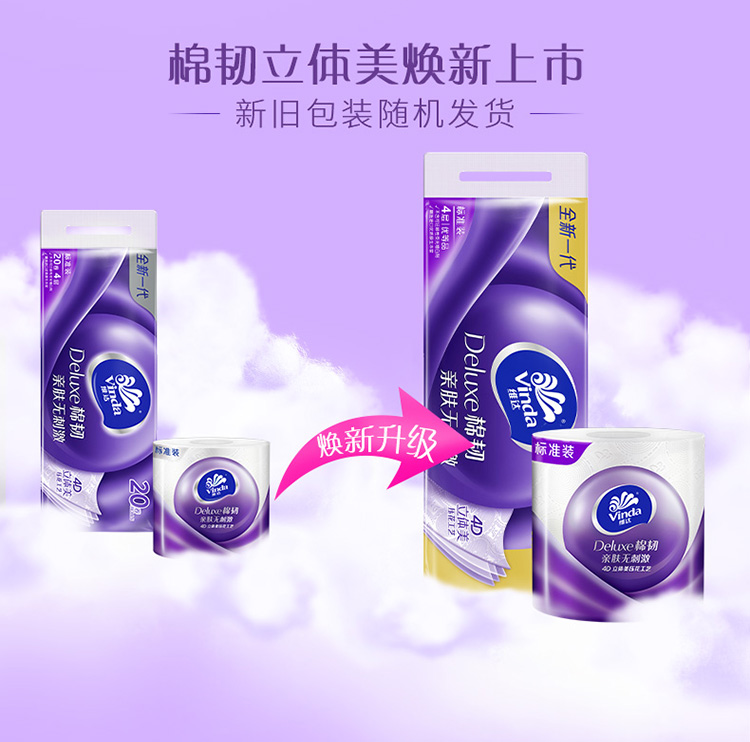 维达(Vinda)卷纸 棉韧立体美20卷*4层130克 卫生卷筒纸 纸巾 母婴可用 亲肤无刺激 呵护肌肤