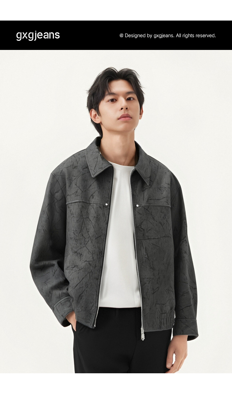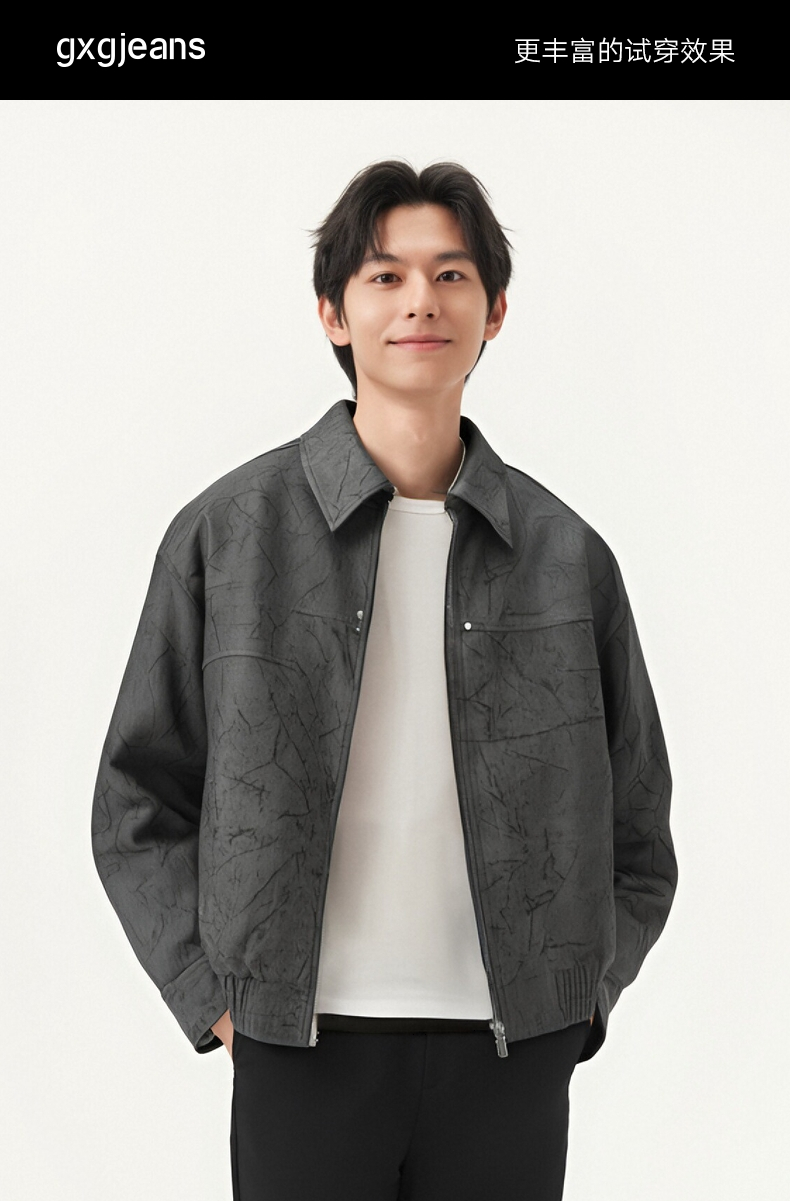 gxg.jeans男装 咖色满印潮流宽松翻领夹克外套男士 25年春热卖