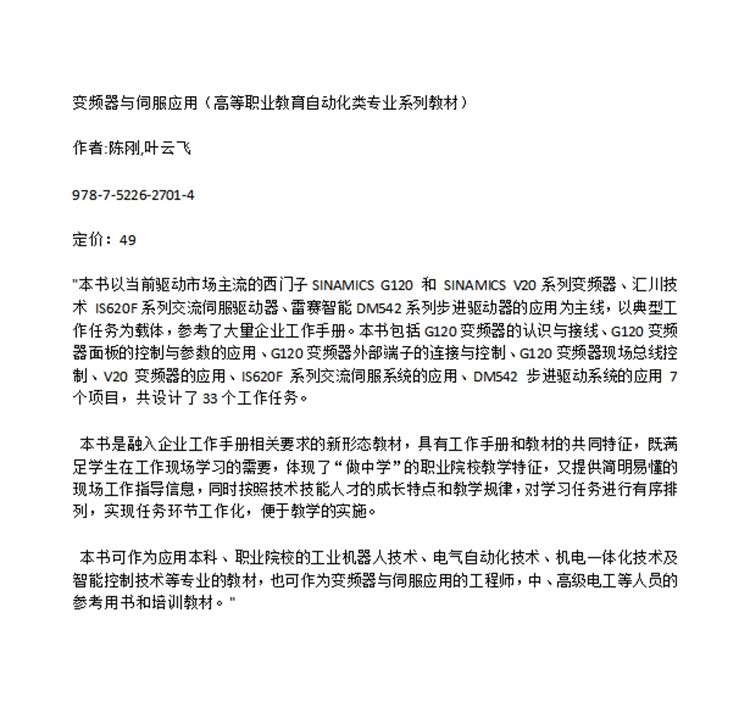 变频器与伺服应用(高等职业教育自动化类专业系列教材)