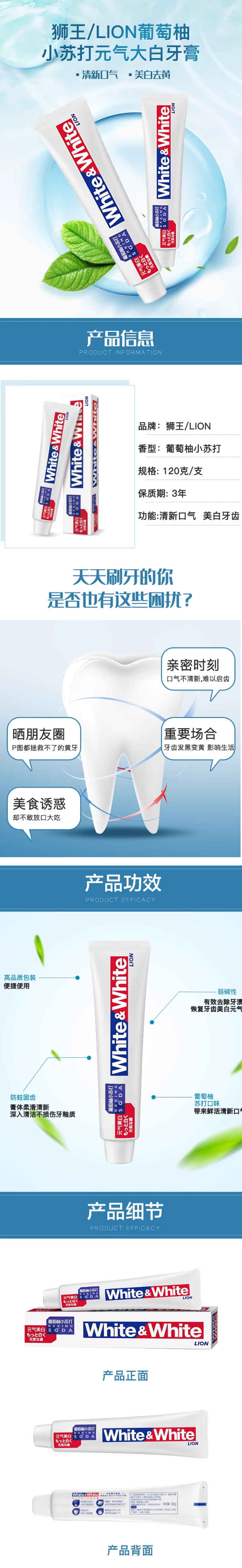 【12元会员福利】狮王葡萄柚小苏打牙膏120g