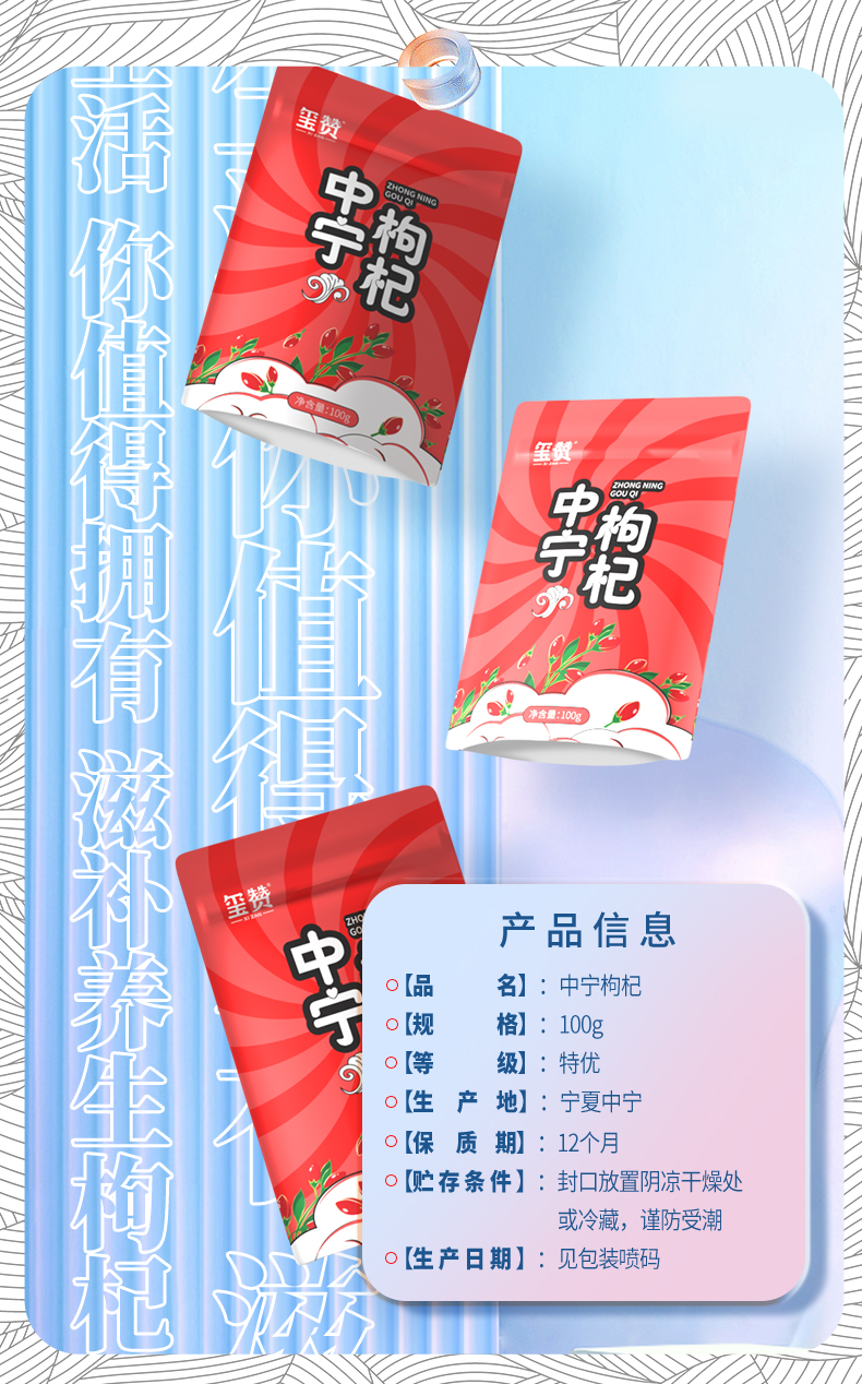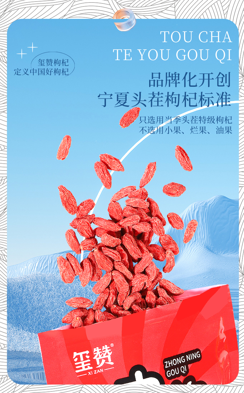 【玺赞中宁枸杞】甄选头茬特优枸杞,真材实料,高品质!泡水鲜亮呈橘红红色,上浮率高!饱满大果,果形纤长,白尖明显!是真正挑选道地品质的中宁枸杞!100g!【QJ-J仓】
