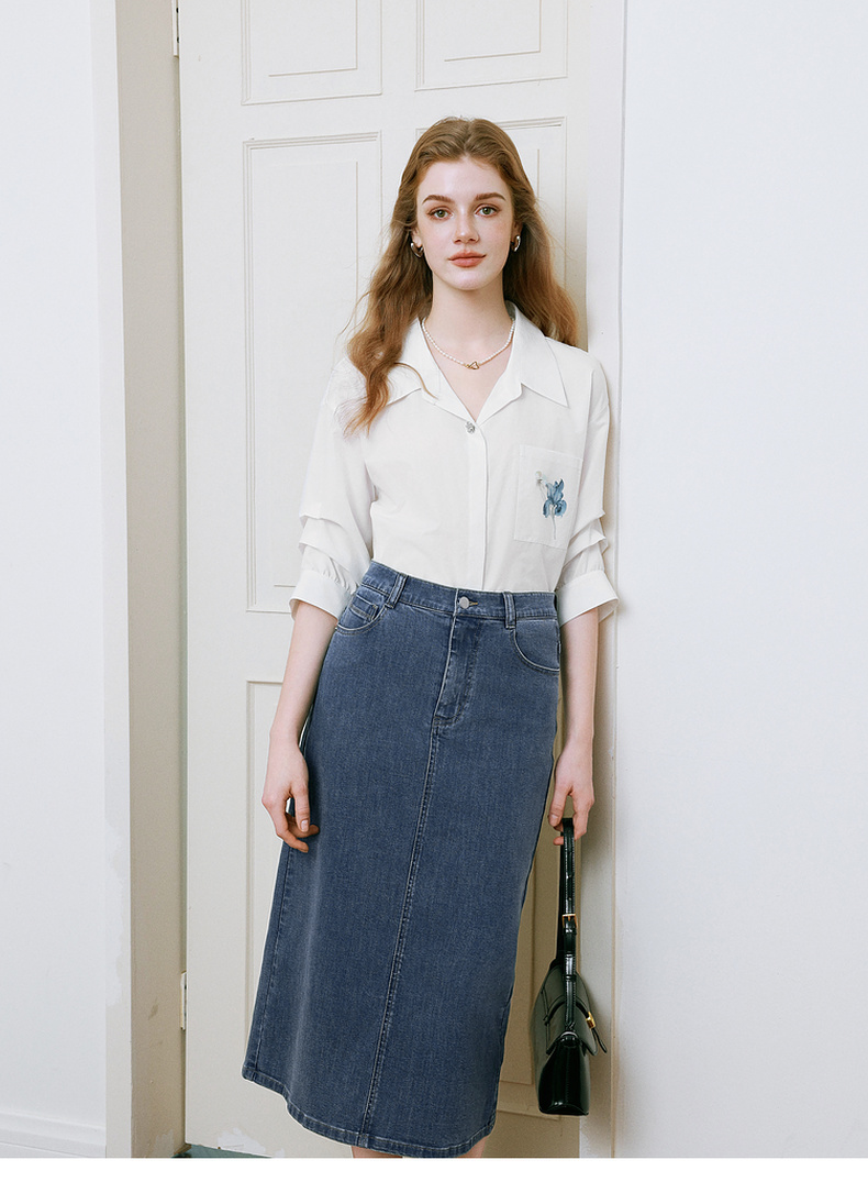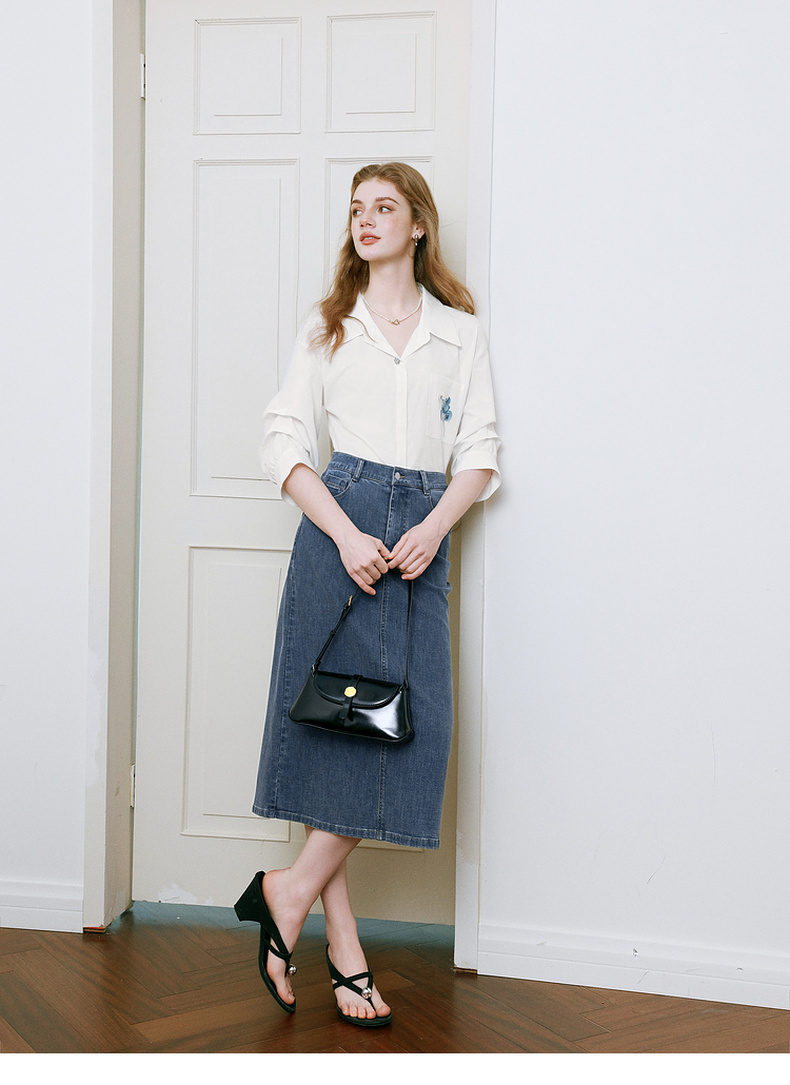 【商场同款】诗凡黎醋酸牛仔半身裙25夏新款高腰包臀裙3G4240571