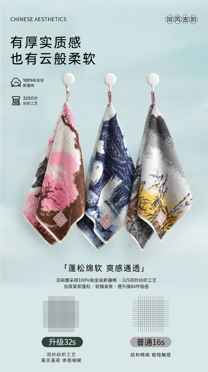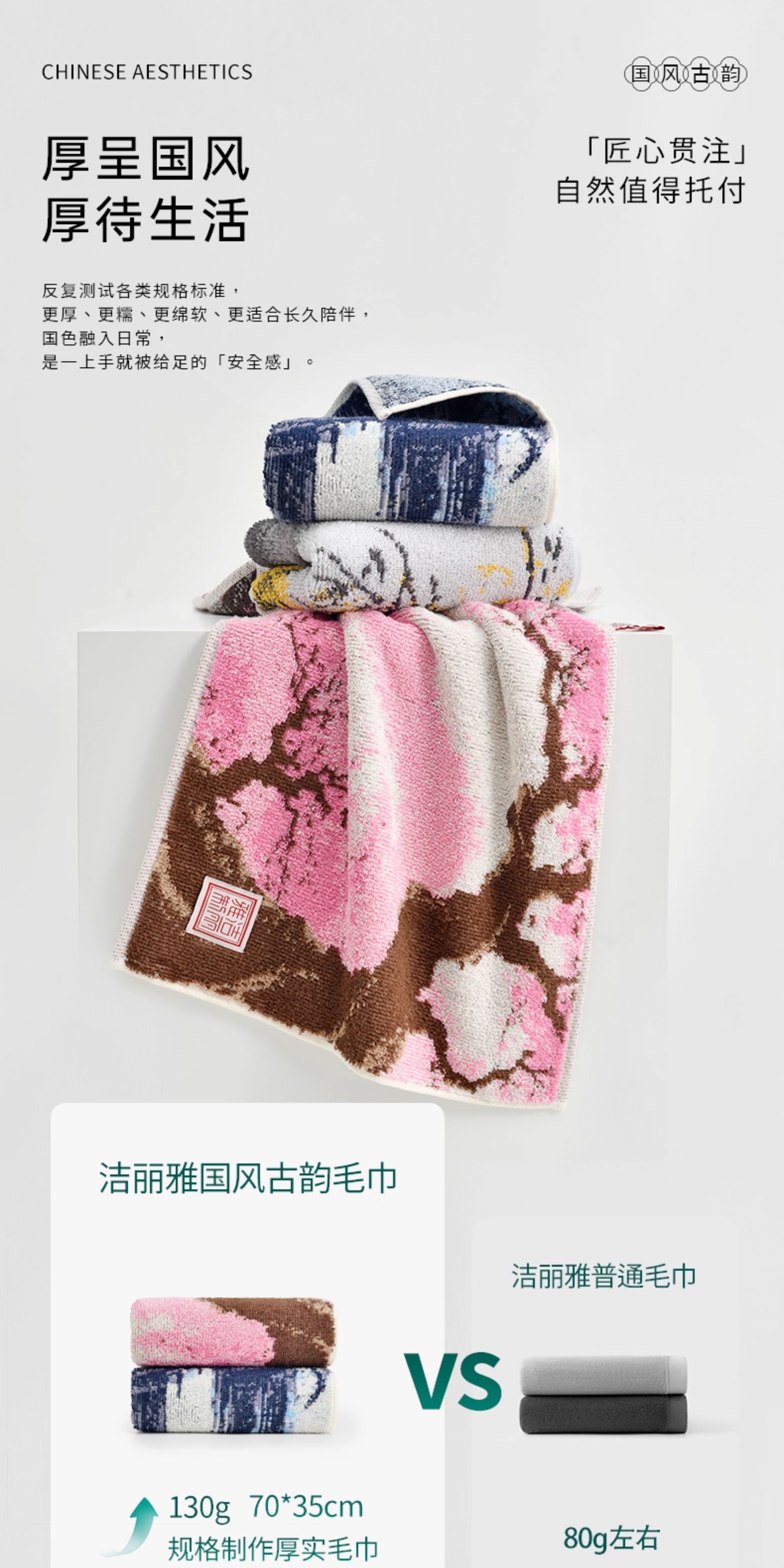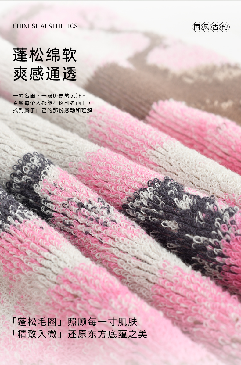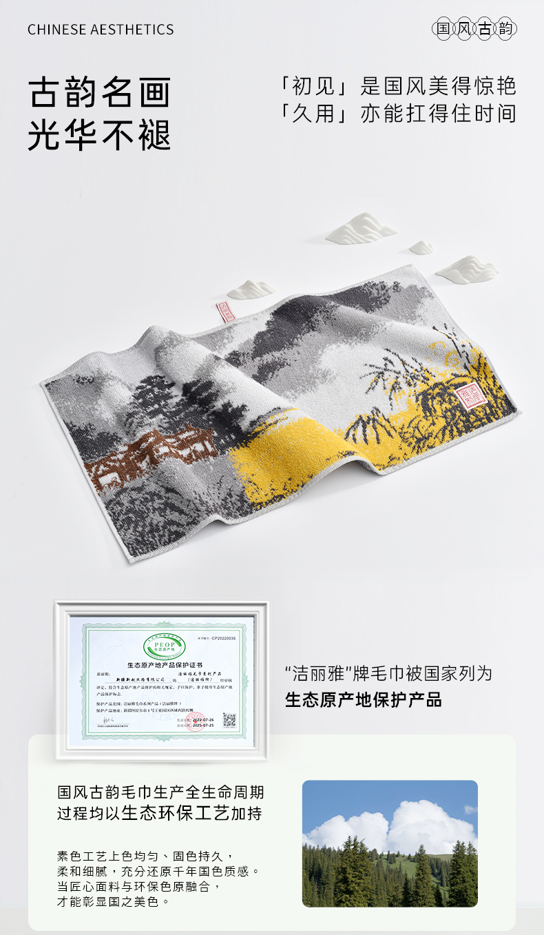 洁丽雅10A抑菌毛巾纯棉洗脸家用国画风加厚全棉吸水2025新款浴巾