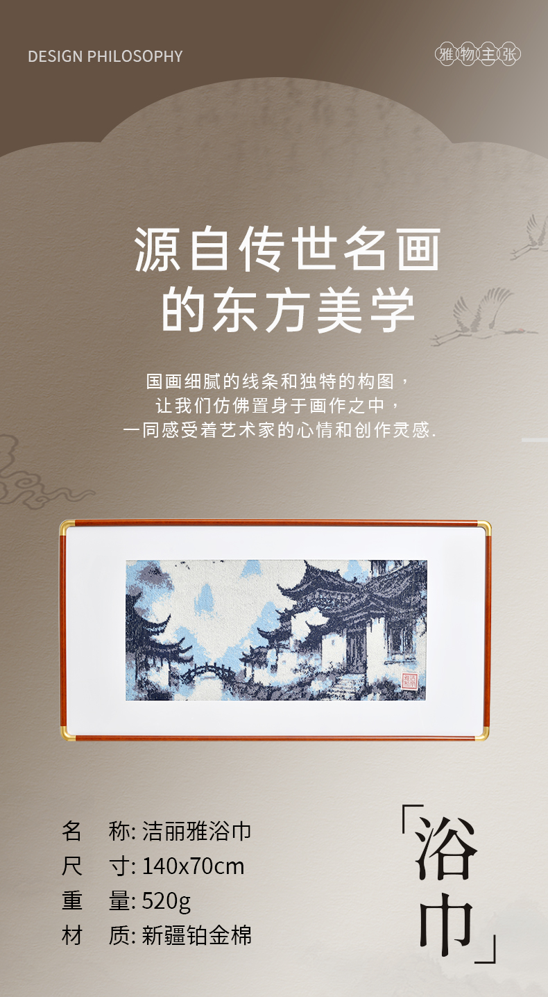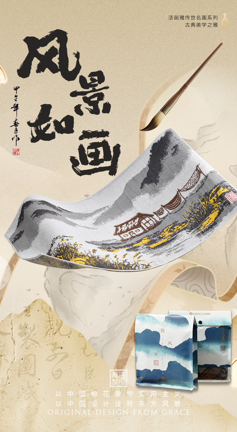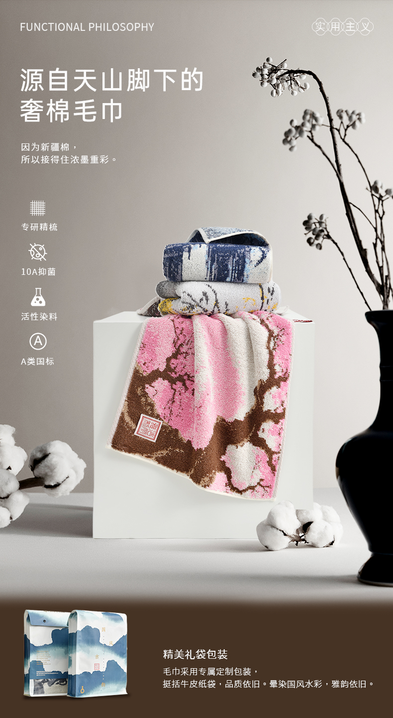 洁丽雅10A抑菌毛巾纯棉洗脸家用国画风加厚全棉吸水2025新款浴巾