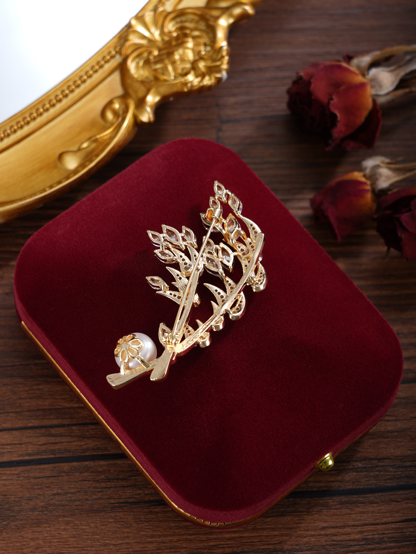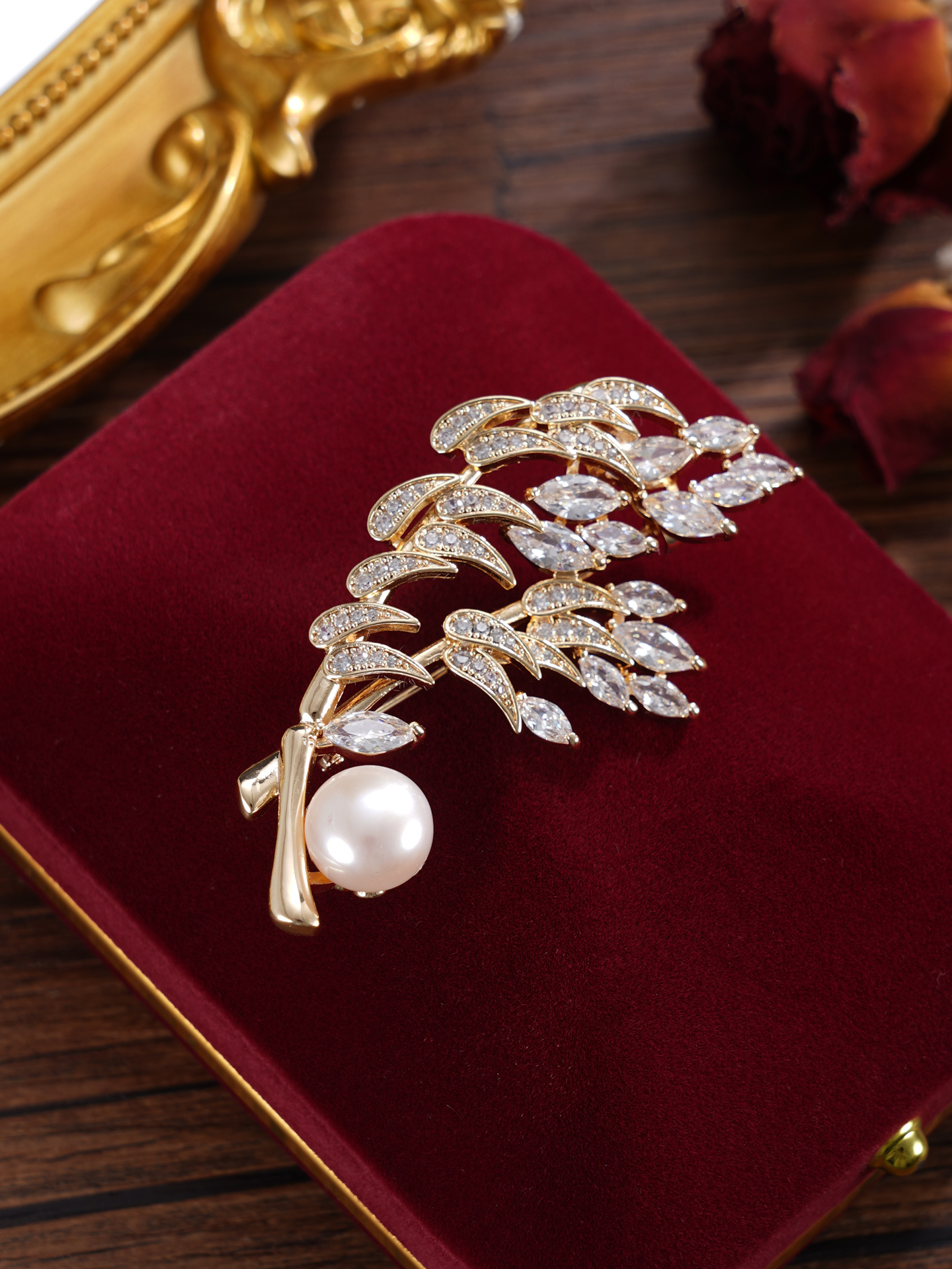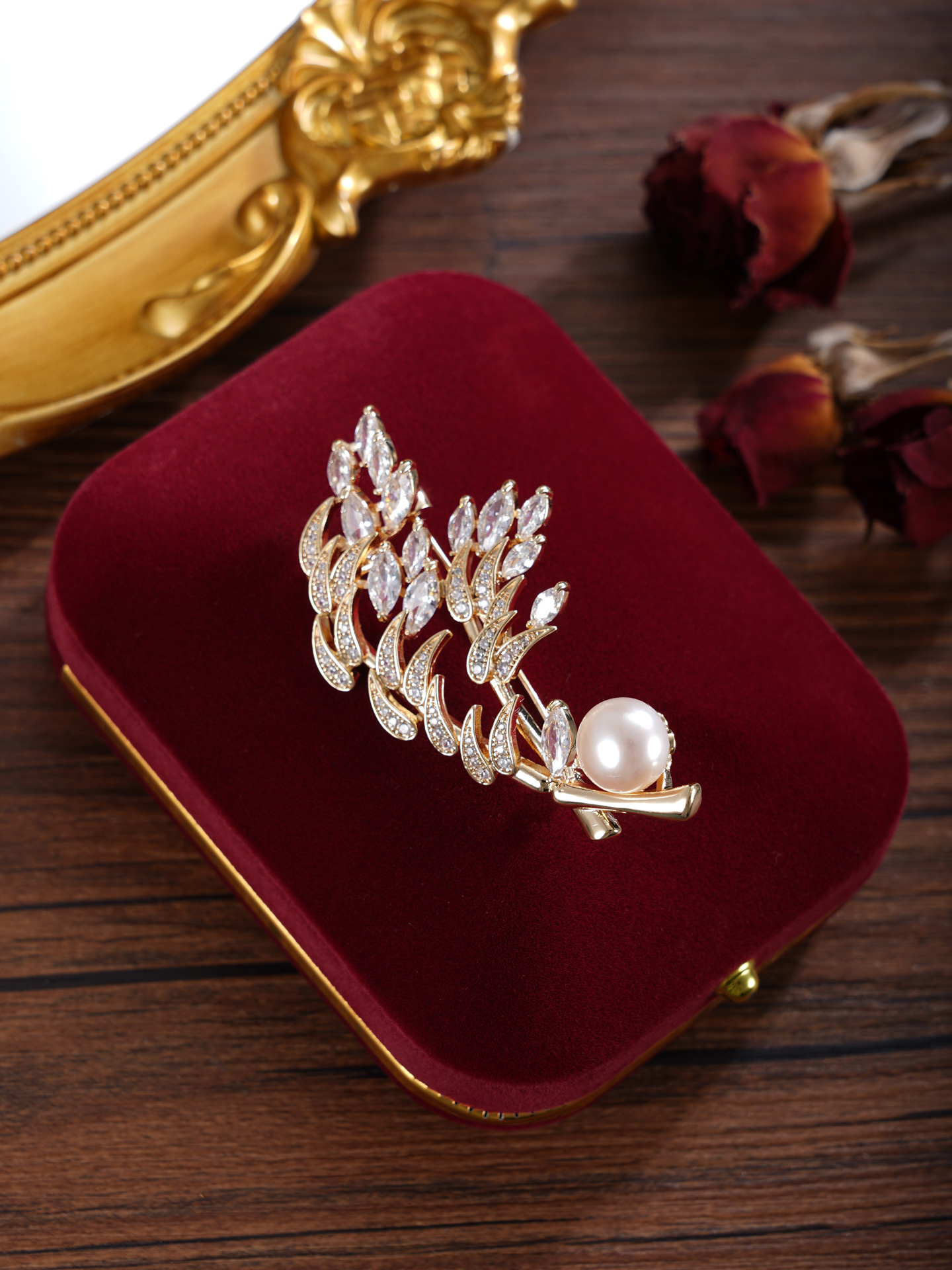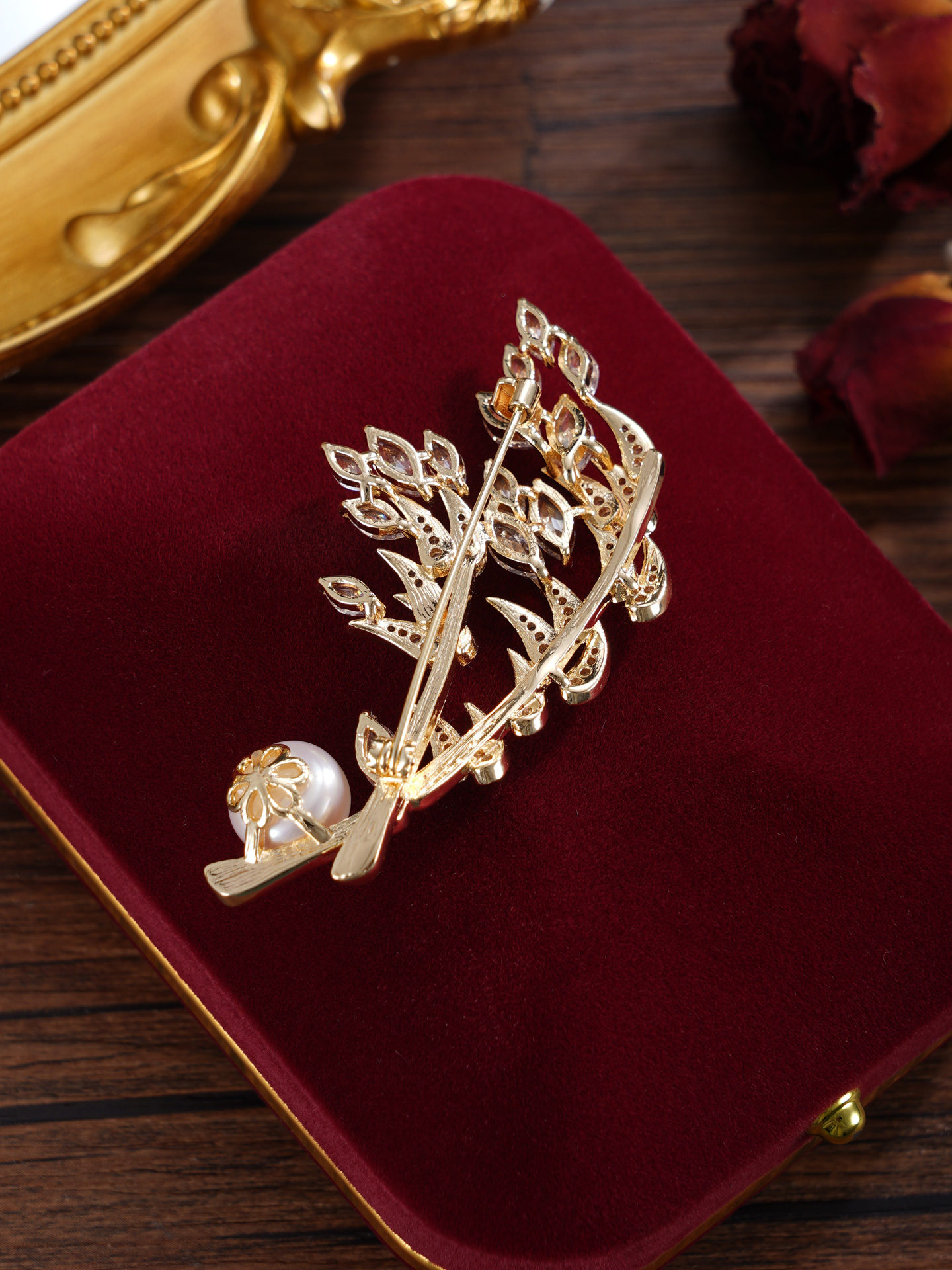 子佩集【嘉木摇瑞】珍珠惜王妃胸针【ZXXZ008】10.5mm珠镀金风树2601
