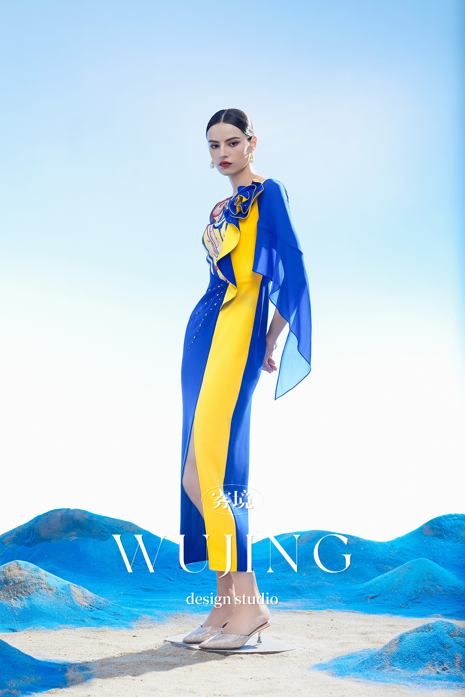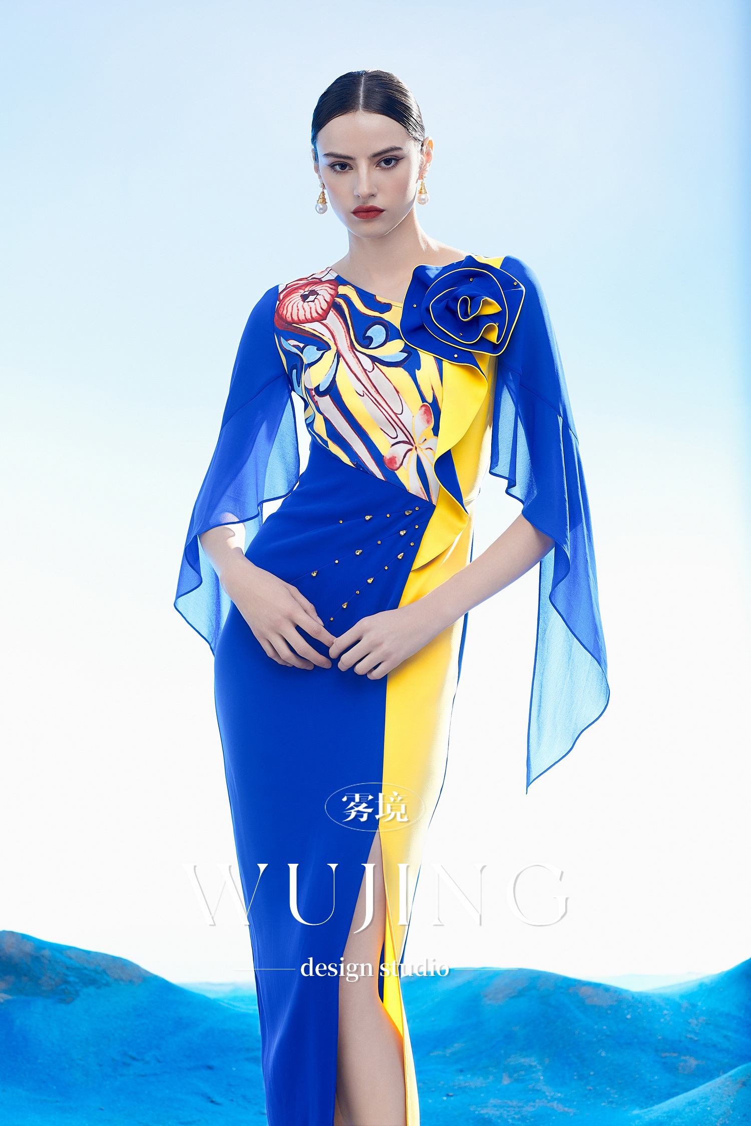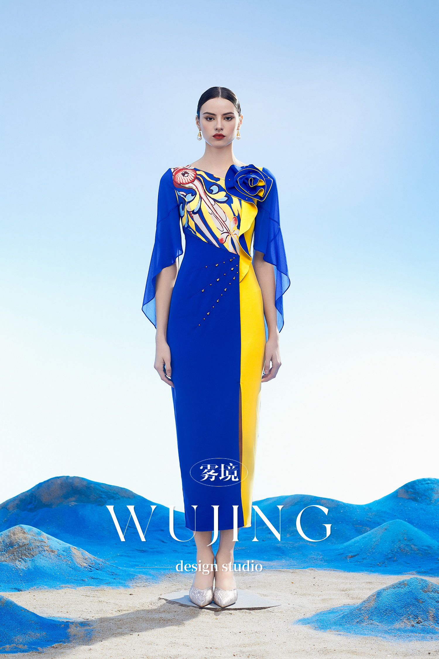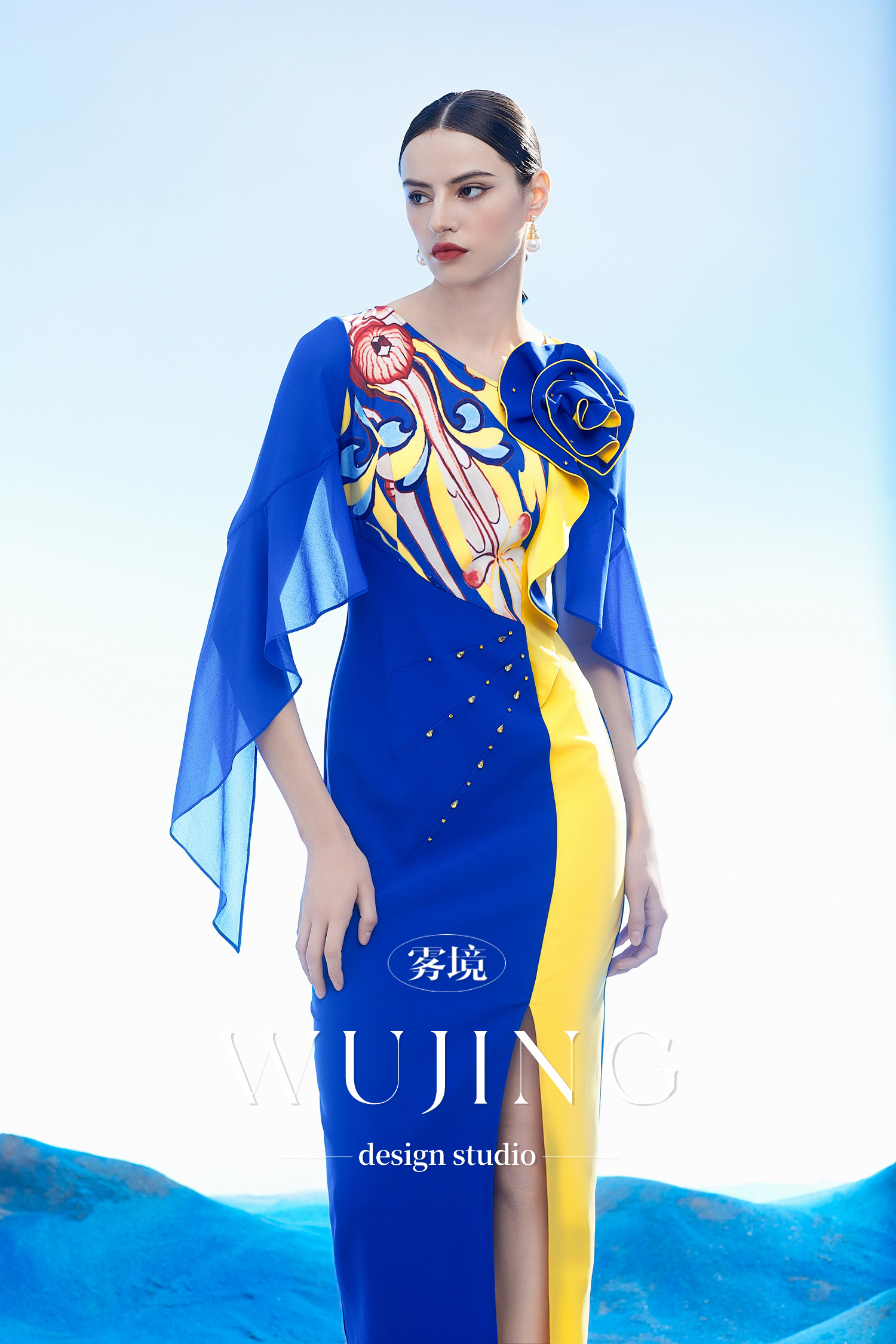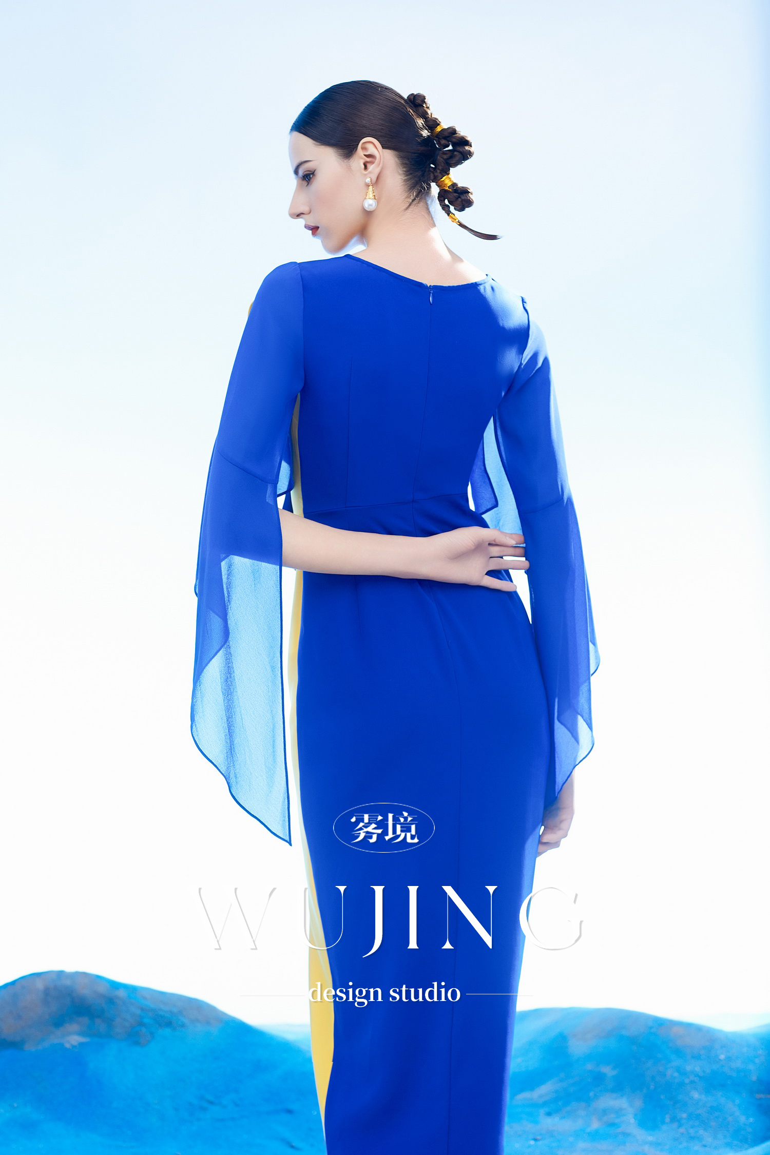 3204016 扶光莲雾 韩国进口水晶乔其纱进口纹理蜂窝缎连衣裙 雾境