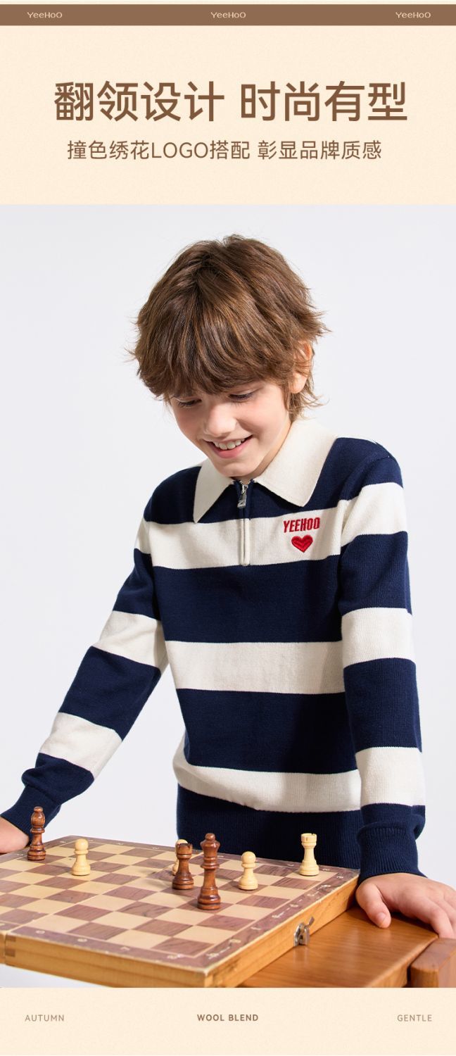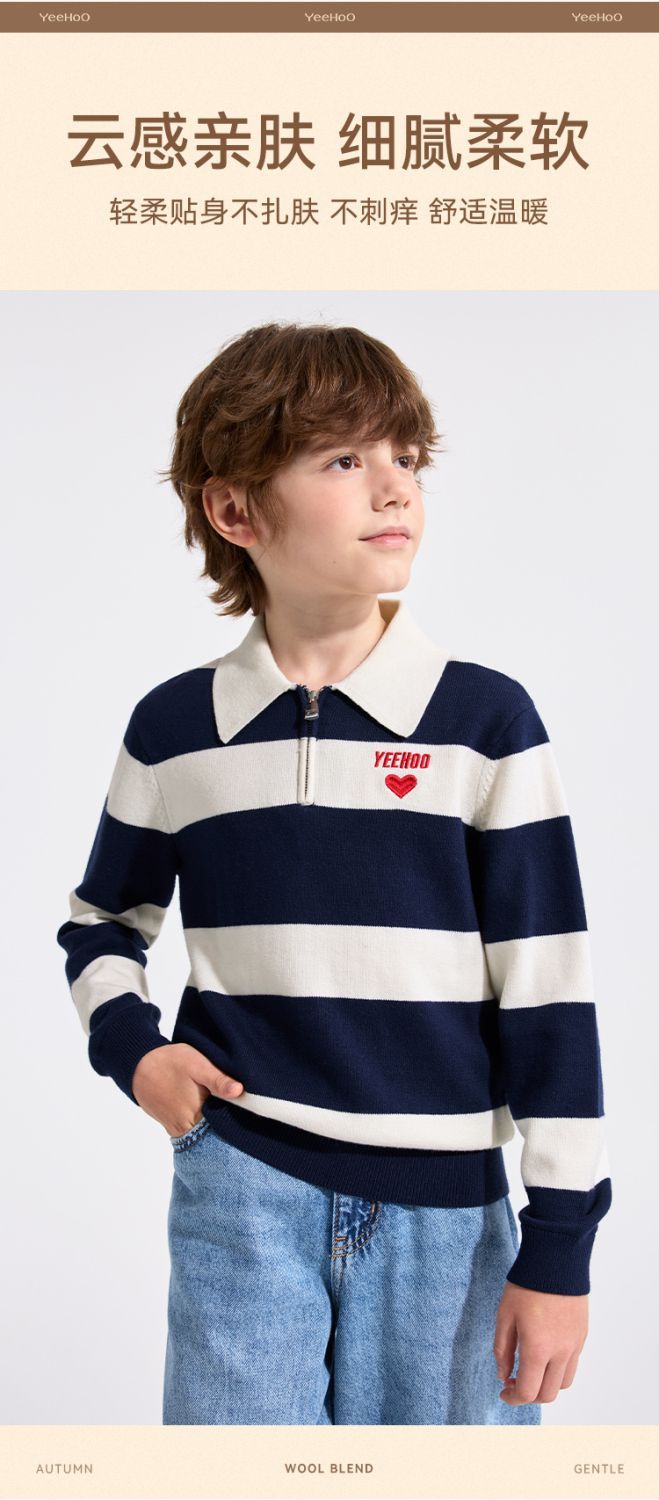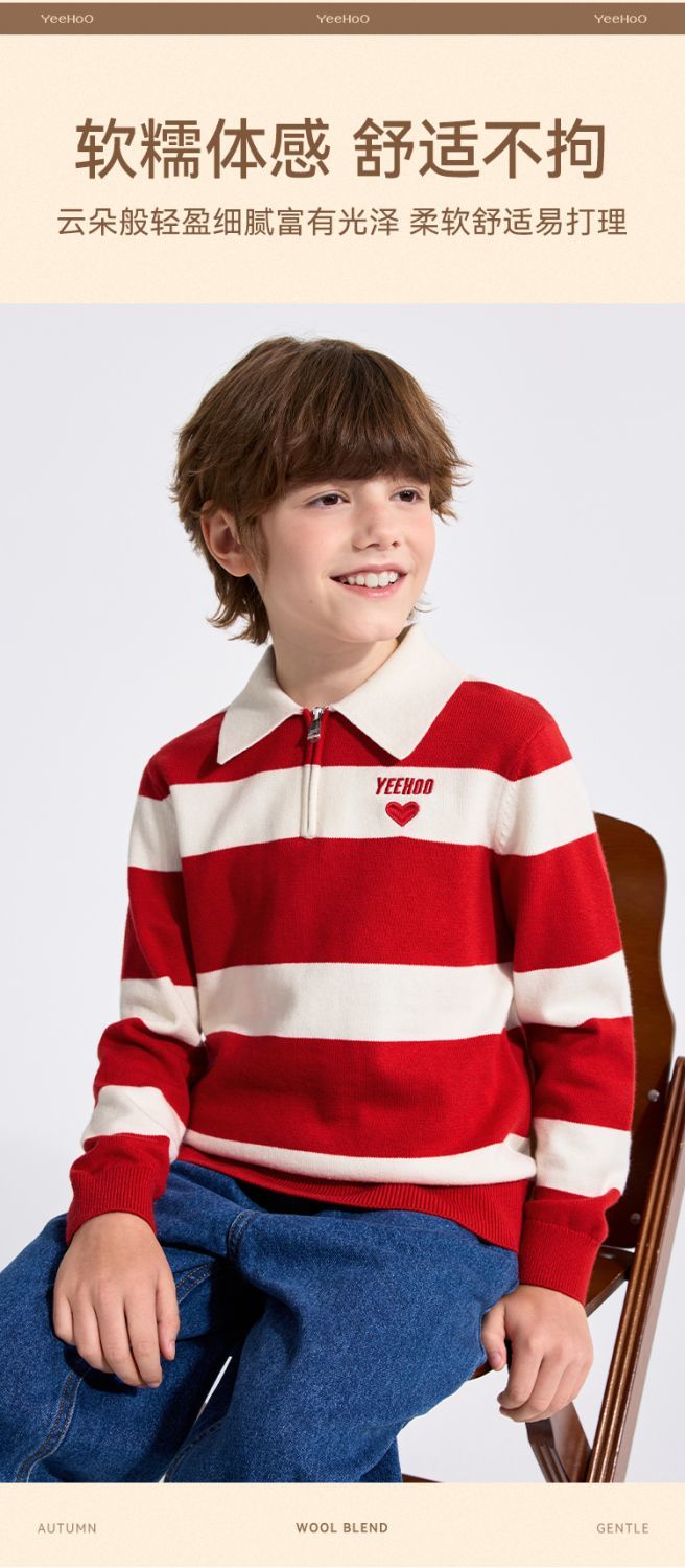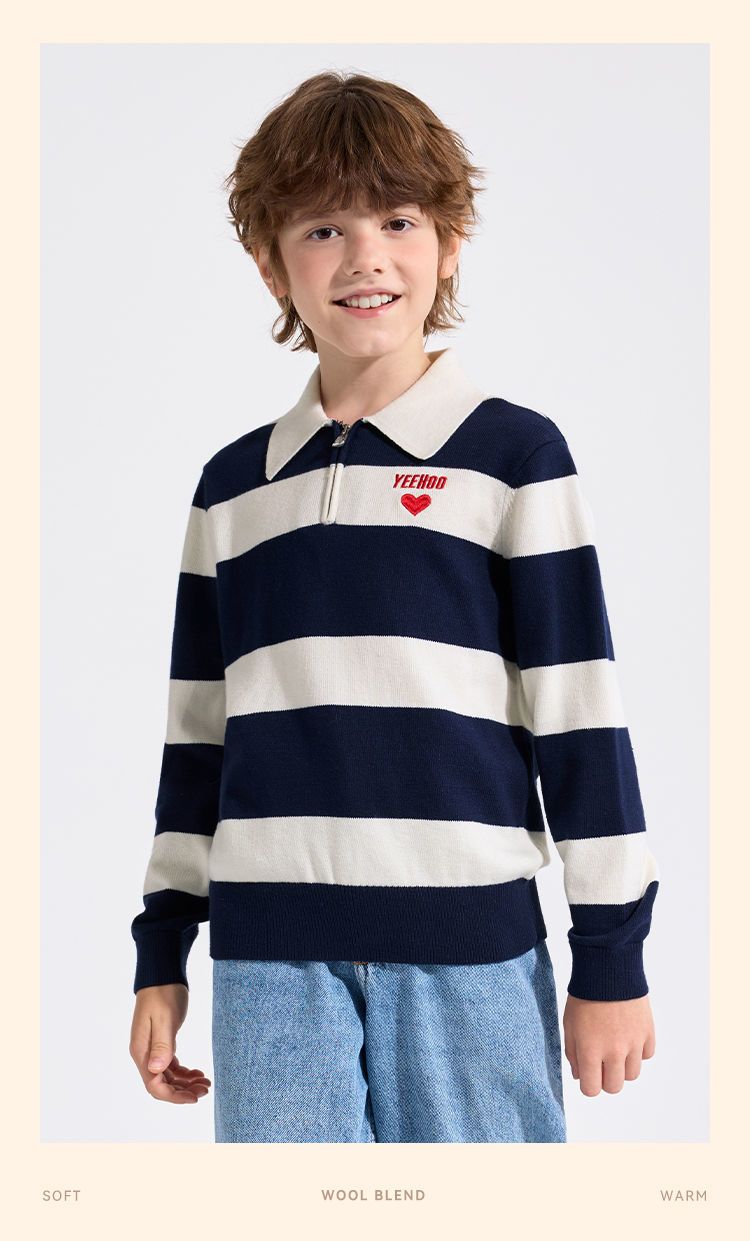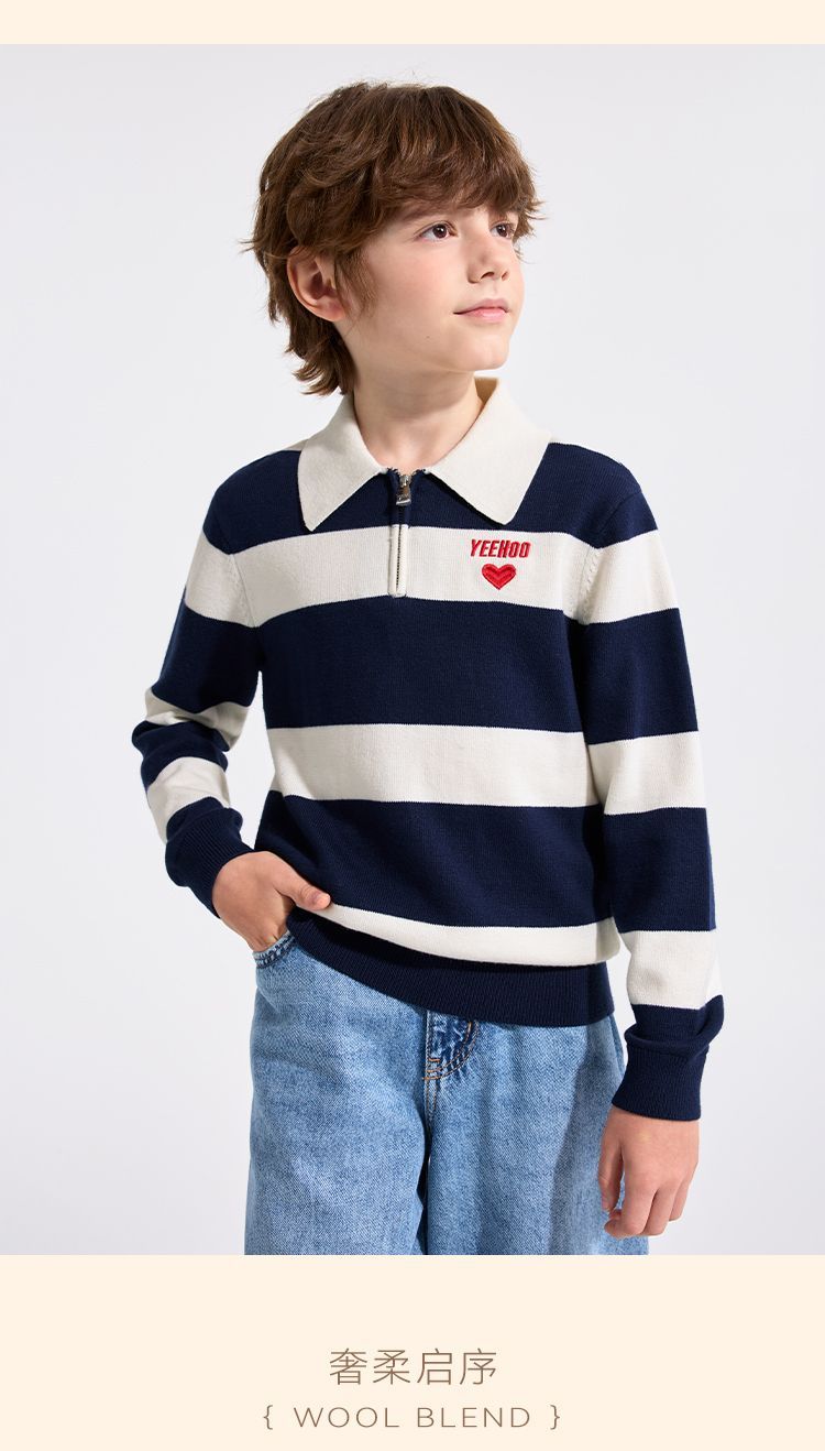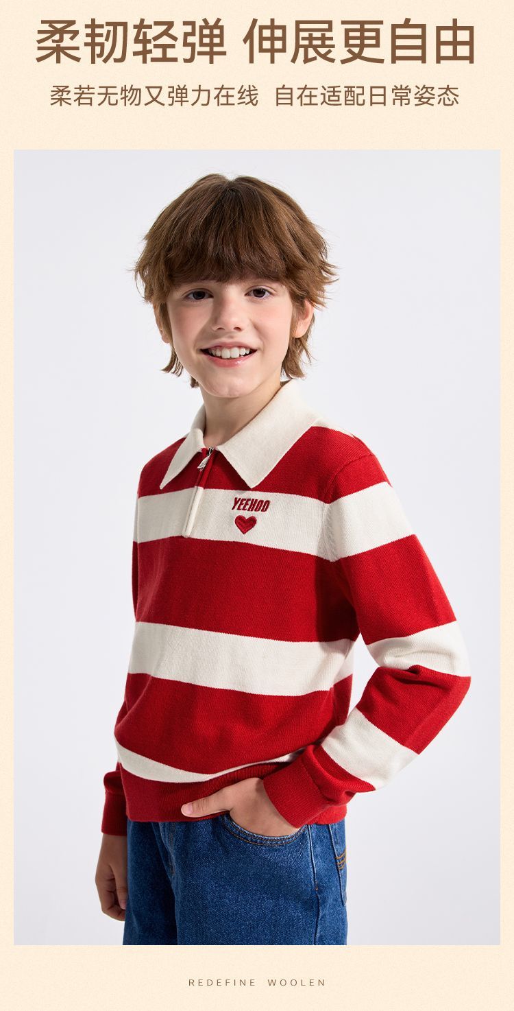 【英氏】【含绵羊毛】【140-175】男童条纹针织衫保暖毛衣