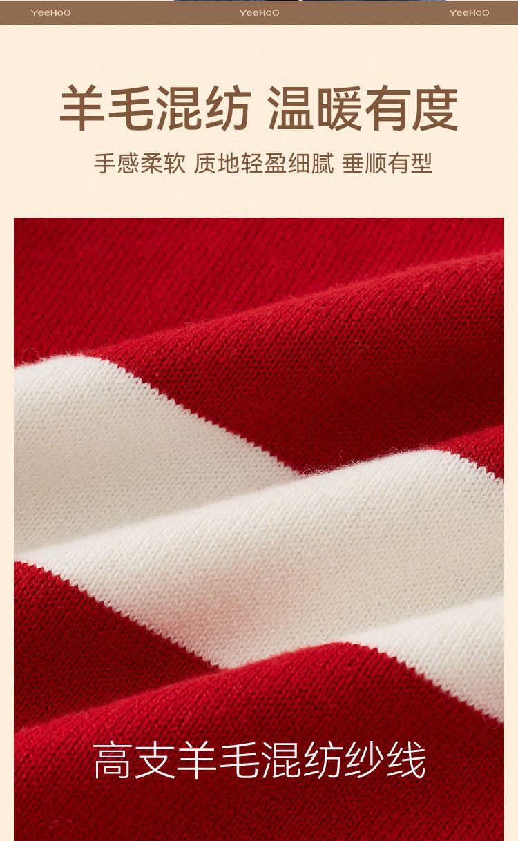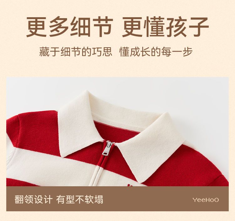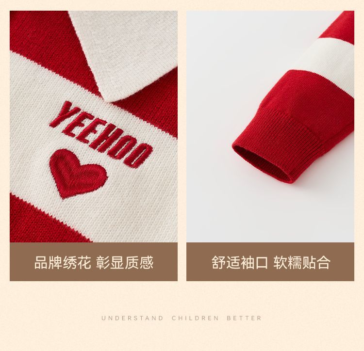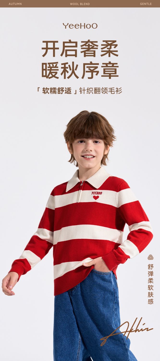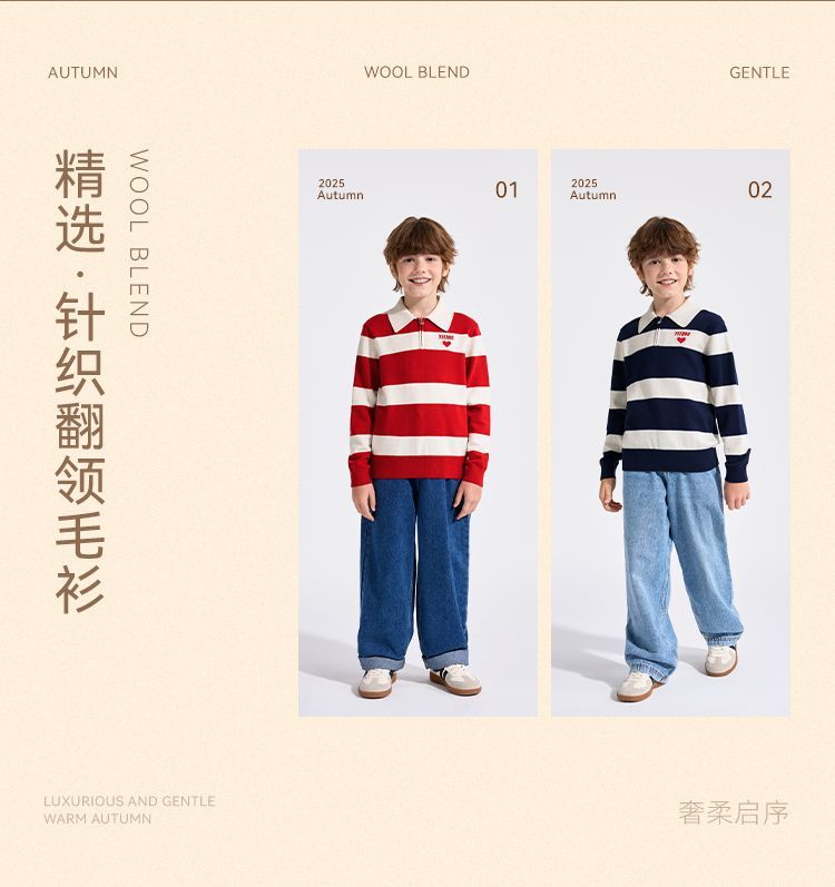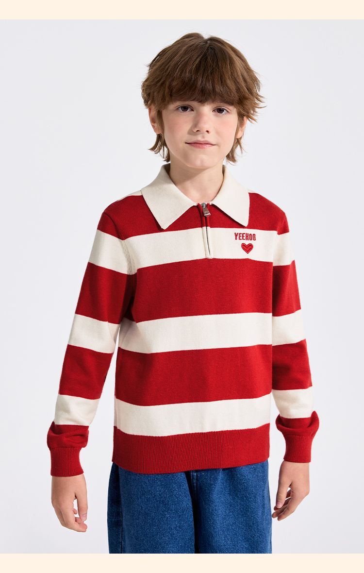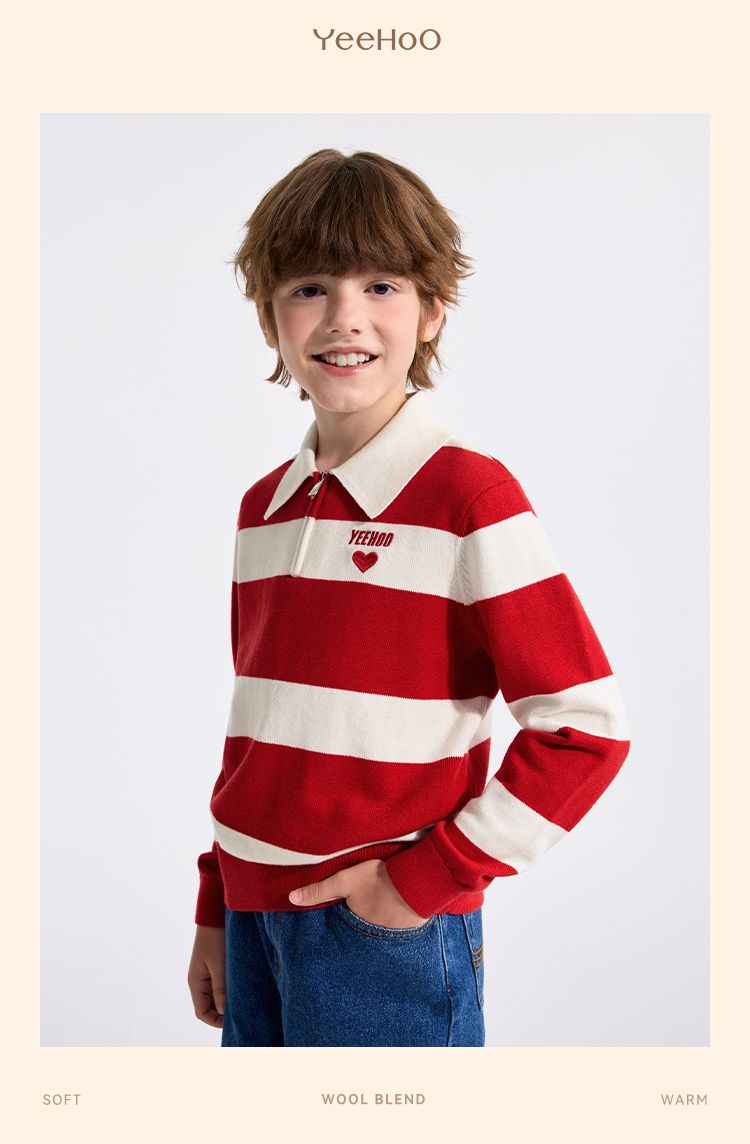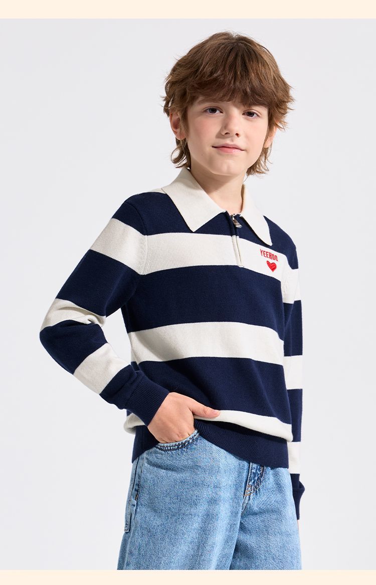 【英氏】【含绵羊毛】【140-175】男童条纹针织衫保暖毛衣