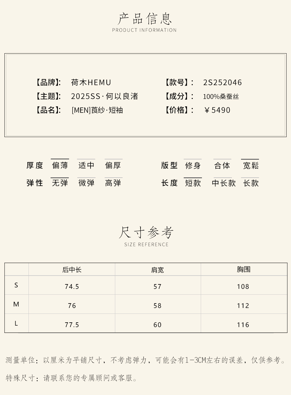 荷木HEMU丨2025SS[MEN]莨纱·短袖