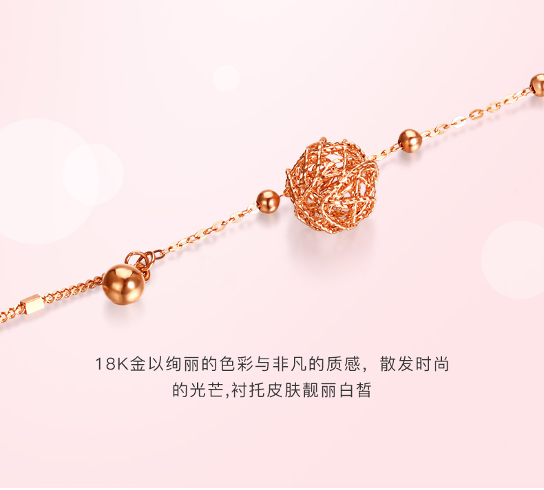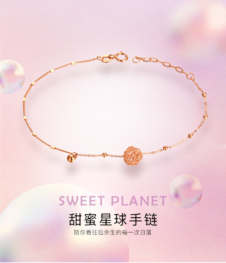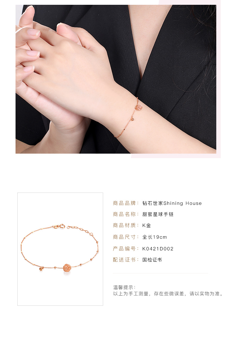 【时尚K金】钻石世家 18K金手链 甜蜜星球立体镂空球形手链(约1.11克)