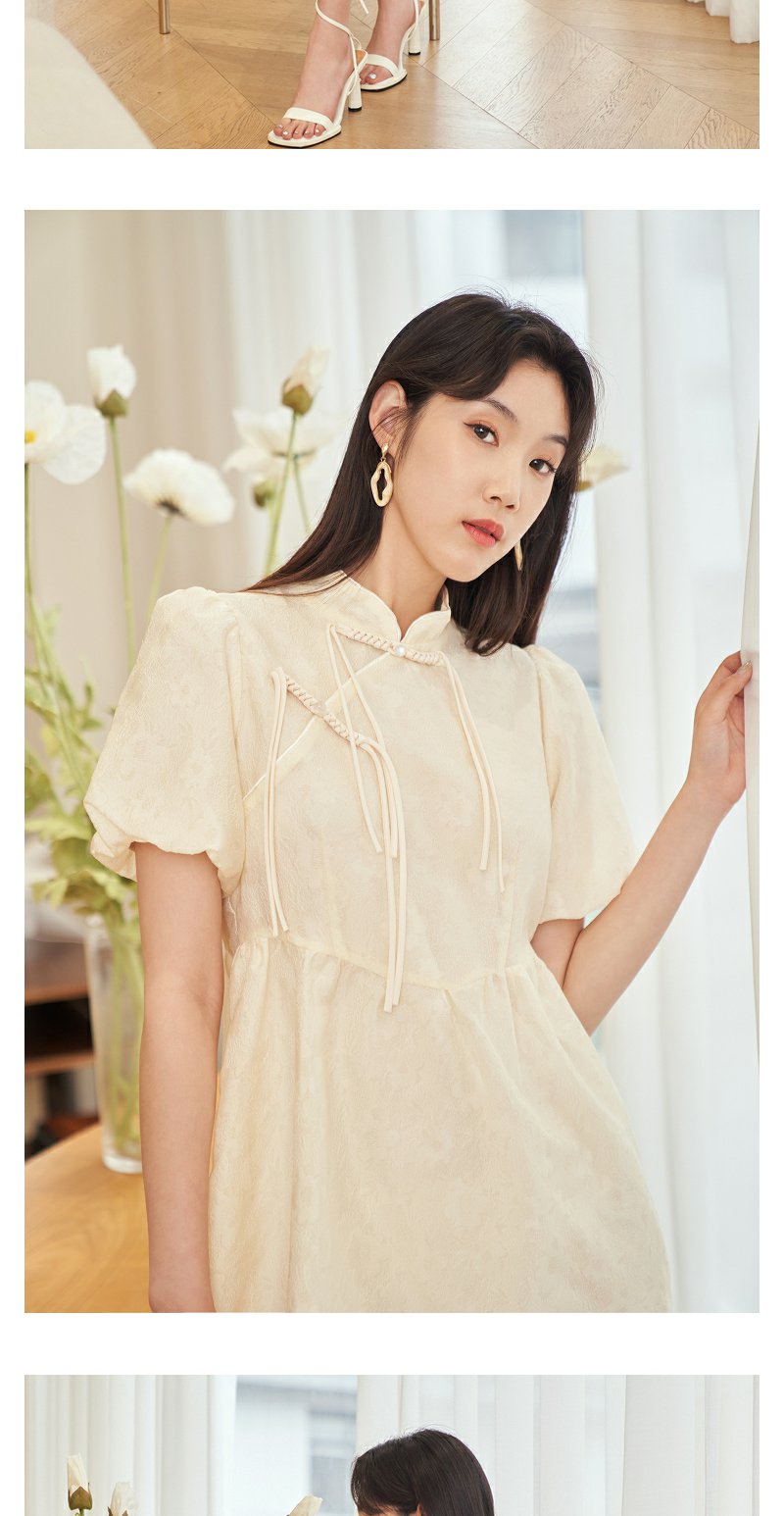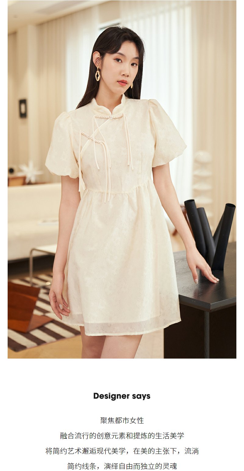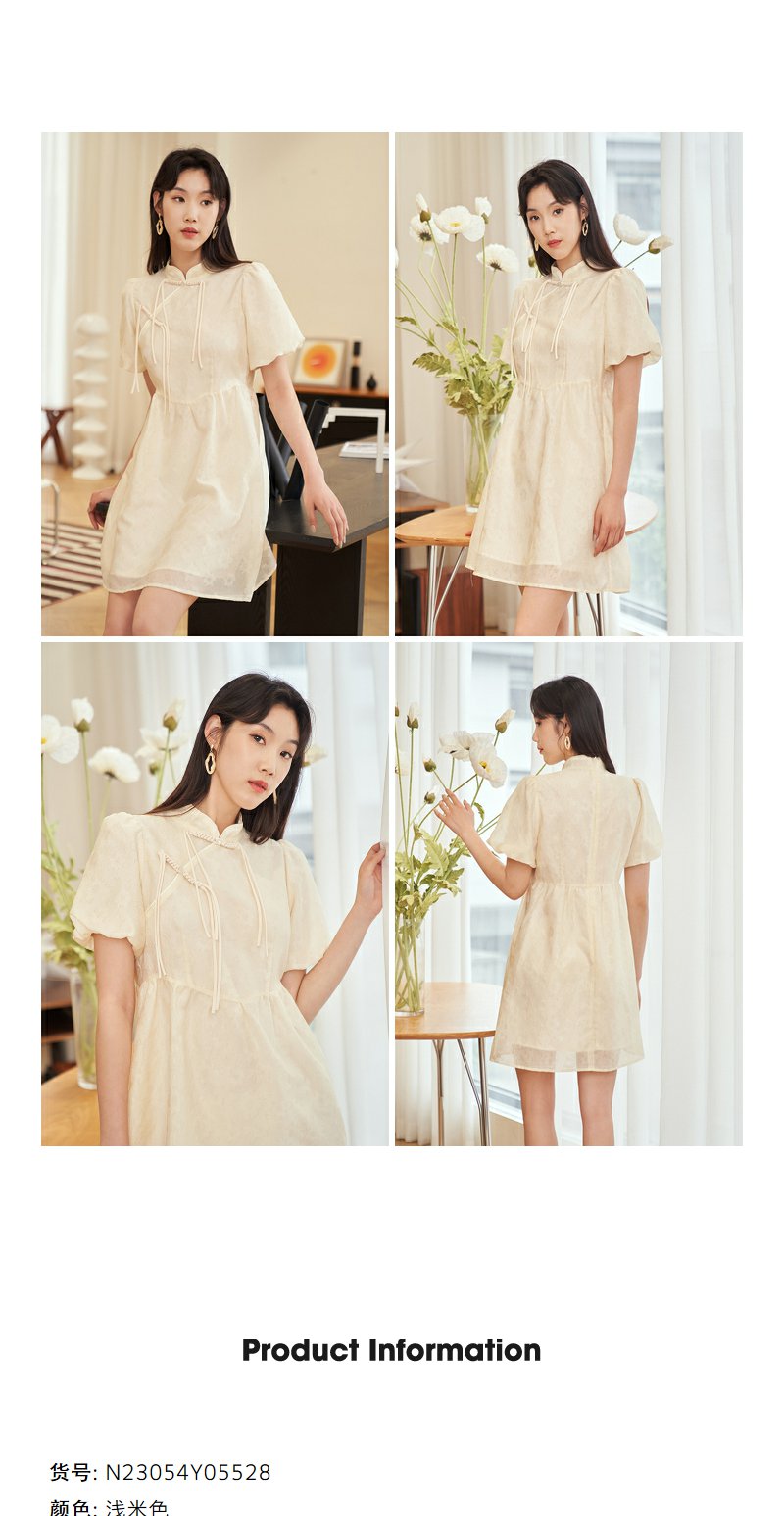 NEELLY纳俪新中式国风连衣裙女收腰泡泡袖精致重工收腰旗袍裙夏季N23054Y05528