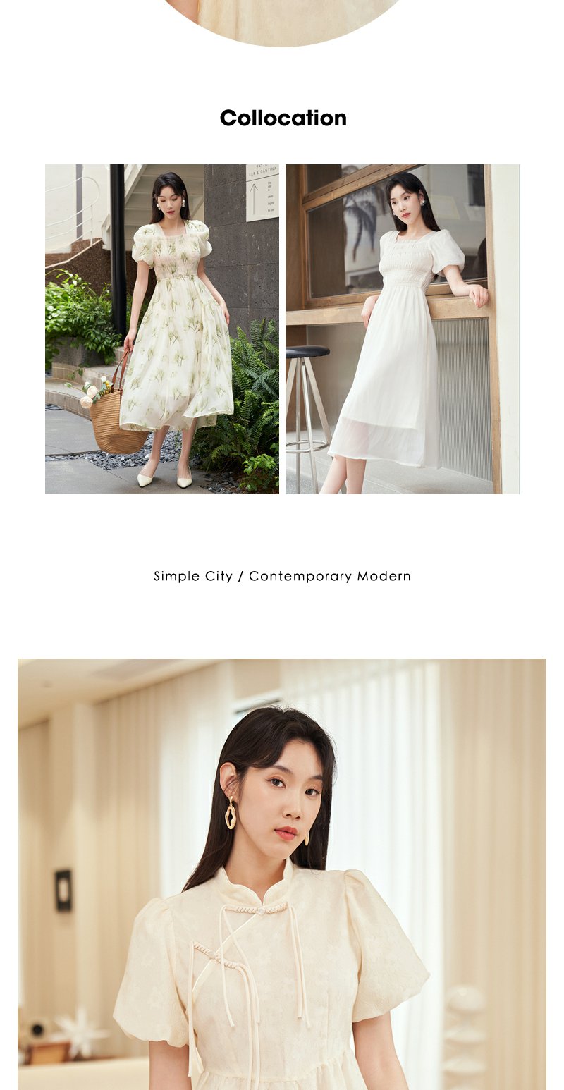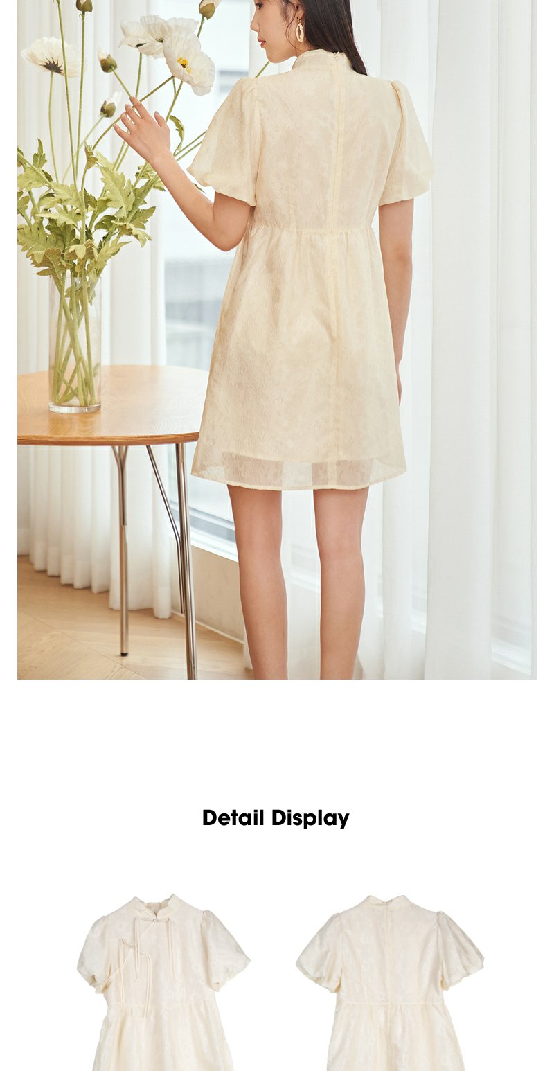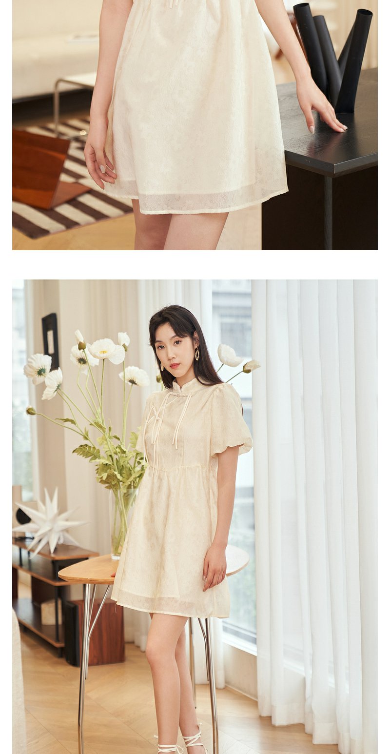 NEELLY纳俪新中式国风连衣裙女收腰泡泡袖精致重工收腰旗袍裙夏季N23054Y05528